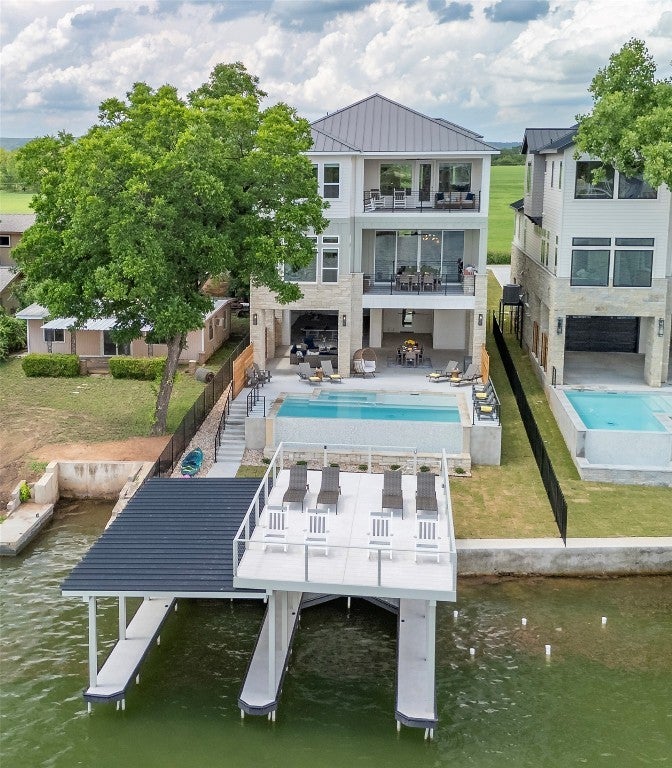 **Hot Deal on Lake LBJ** New Construction Luxury Lakefront Retreat on Constant-Level Lake LBJ. Welcome to your dream lakefront getaway! Nestled on 50 feet of open water on the highly coveted constant-level Lake LBJ, this brand-new 2025 construction luxury home offers an unparalleled blend of modern elegance, comfort, and income potential — all just an hour from both Austin and San Antonio. This turn-key short-term rental opportunity comfortably sleeps up to 22 guests and is fully furnished, with projected rental income between $200K and $250K annually. Whether you’re seeking a serene family retreat, a high-end investment property, or both — this is it. Property Highlights: 5 spacious bedrooms, each with a private en-suite bathroom, 4,440 heated SqFt | 7,982 total SqFt including porches & garage. Vanishing edge pool & hot tub overlooking the lake. 2-slip boat dock with party deck for lakeside fun. Elevator access to all floors. 12-ft ceilings on the main level and 10-ft ceilings upstairs. Designer finishes throughout including: Gemcore Teton Owen Luxury Vinyl Plank flooring, Milestone Onyx & Anatolia Mosaic tile in the primary bath, MSI Calacatta Leon Quartz counters, GE Cafe stainless appliances, Custom Cabinets Deluxe 1” Slim Shaker overlay cabinetry, Moen fixtures & Anderson 100 Series windows. Fully Outfitted for Fun: Pool table, ping pong, shuffleboard. Built-in outdoor grill & fire pit. 2 kayaks, 1 paddle board, corn hole and there is excellent fishing and boating year round on the Colorado River. This exceptional home combines luxury living with lake life and offers the rare opportunity to own a fully equipped short-term rental in a prime location on one of Texas’s most desirable lakes. Don’t miss out on this one-of-a-kind lakefront gem. Schedule your private showing today and experience the best of Lake LBJ living!