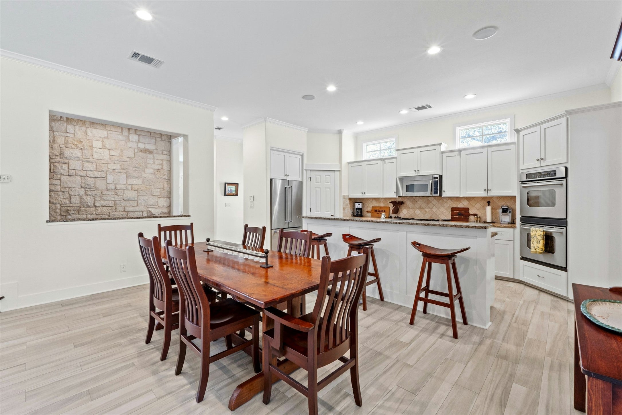 - Built-In Oven, Double Oven, Dishwasher, Gas Cooktop, Gas Water Heater, Ice Maker, Microwave, Stainless Steel Appliance(s)