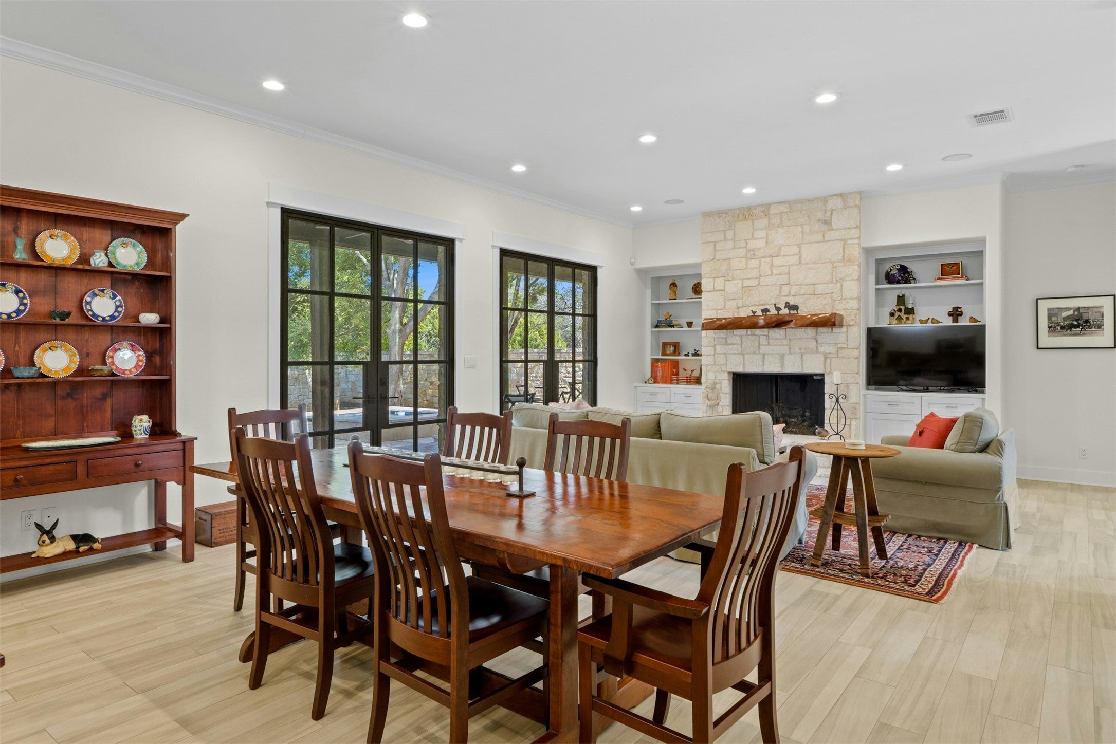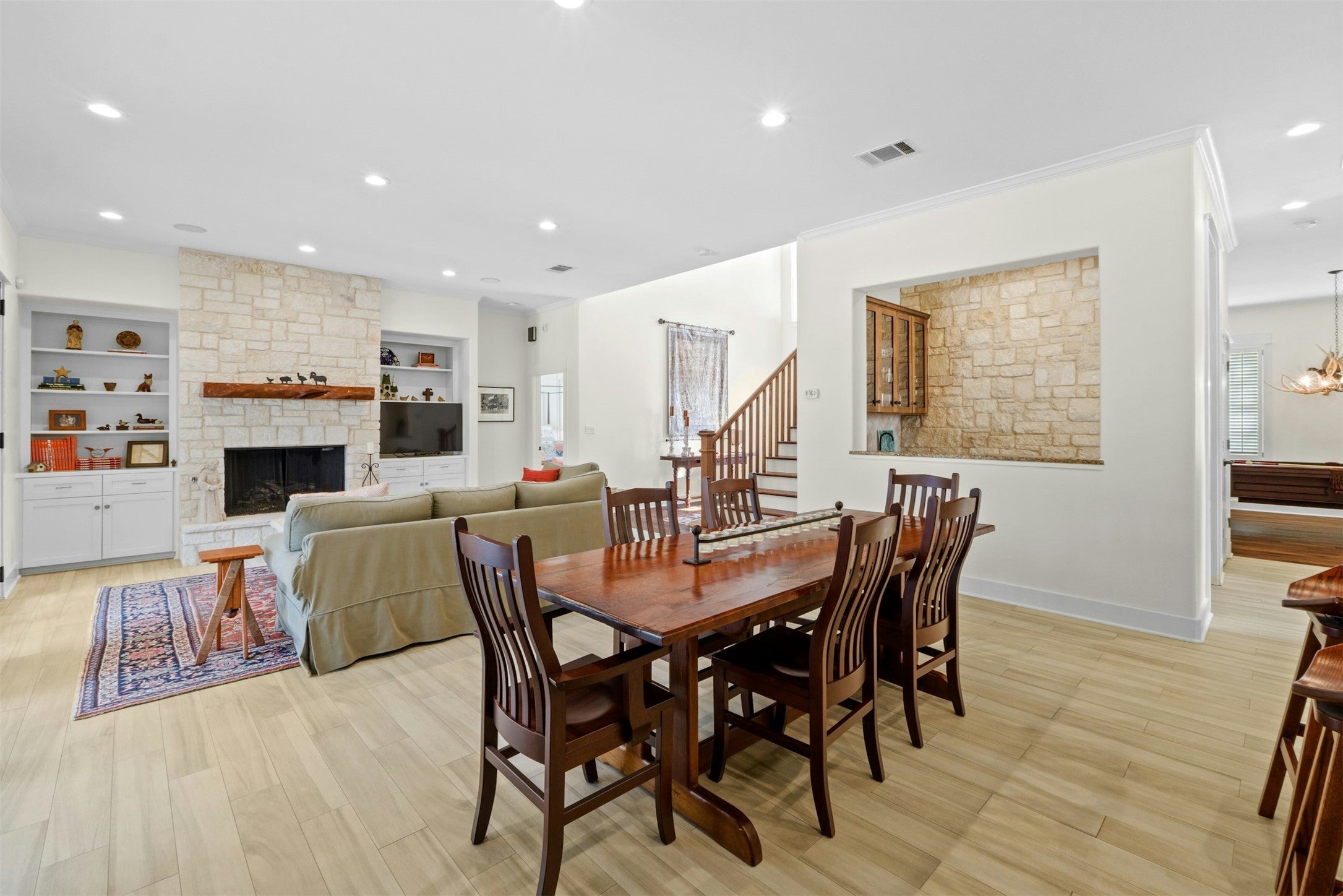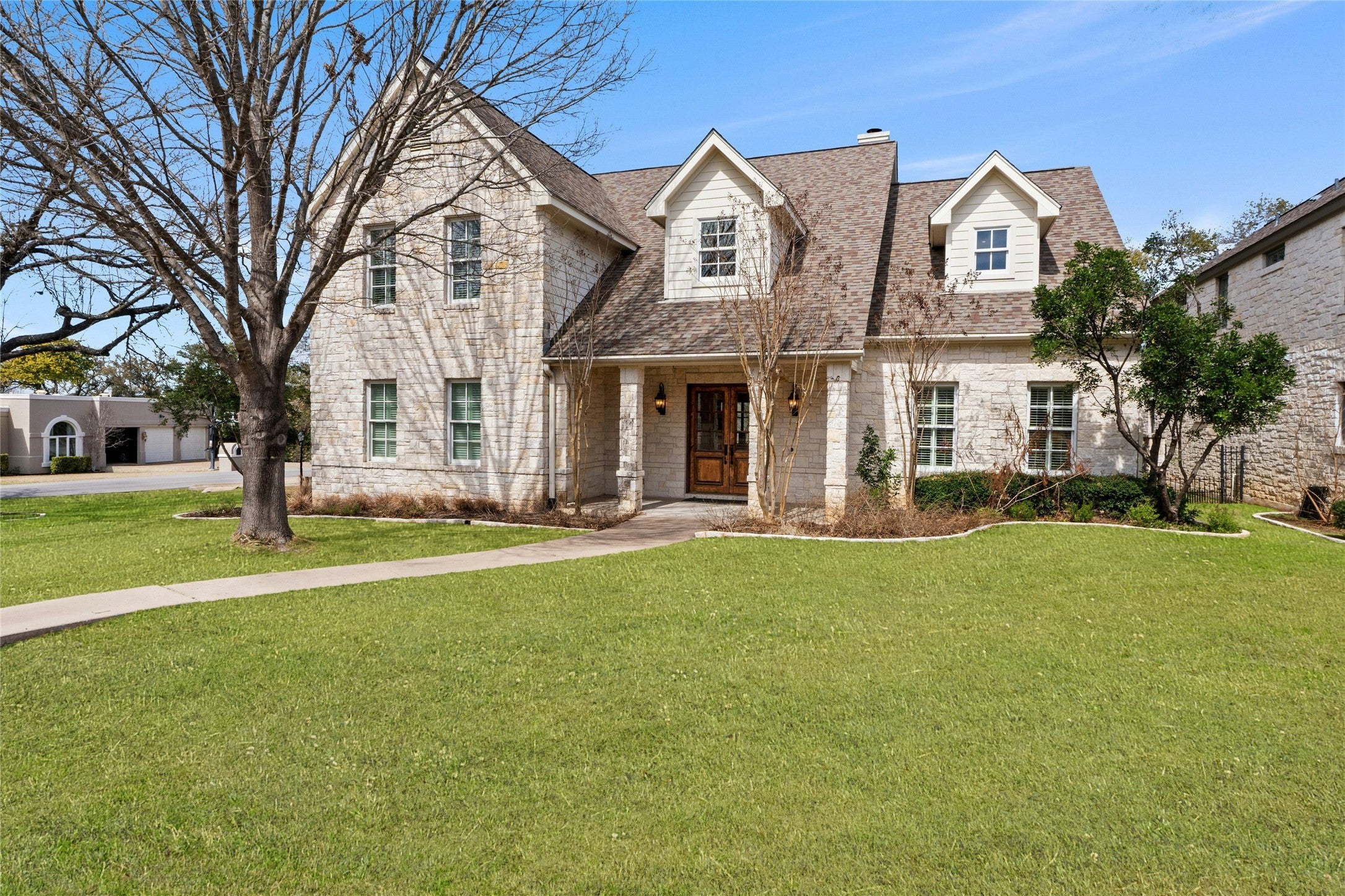 Lakeway two-story on a generous .30-acre corner lot, with private pool, 4 beds, and 4.5 baths! Living in Lakeway means trading the city noise for established, tree-lined streets where the pace naturally slows down. From the moment you pull up, the native limestone and wide porch invite you to slow down. Inside, the heart of the home is a sun-drenched open space where the kitchen and dining area flow right into a living room anchored by a huge stone fireplace. The main floor also keeps life easy with a secluded primary suite and a dedicated wet bar, complete with a built-in ice maker, so you’re always ready to pour a drink. As you move through the house, you’ll find spaces designed for however your day unfolds. An extra-wide staircase leads to a massive, carpeted bonus room upstairs that’s just waiting to become a cozy movie den, a playroom, or a creative studio. If you’re someone who needs a true "getaway" for work, there’s a second, almost hidden staircase in the mudroom. It leads to a bright, unfinished space above the garage that’s a blank canvas for a tucked-away home office or a private gym. The 3 additional bedrooms are also on this level, each featuring wood shutters and ceiling fans. The real magic happens when you push open the steel french doors and head into the backyard. You’ve got a deep covered patio with its own fireplace for those crisp Texas nights, overlooking a sparkling pool and spa that stay shaded under a thick canopy of mature trees. About 25 miles west of downtown Austin, Lakeway revolves around Lake Travis, the Lakeway Marina, and the miles of hiking trails that wind through the hills. It’s a place where neighbors actually know each other and the schools are some of the best in the state. With high-end Marvin windows to keep things quiet and two wood-burning fireplaces to keep things cozy, this home is a beautiful, sturdy sanctuary designed to be enjoyed for a lifetime in Lakeway.