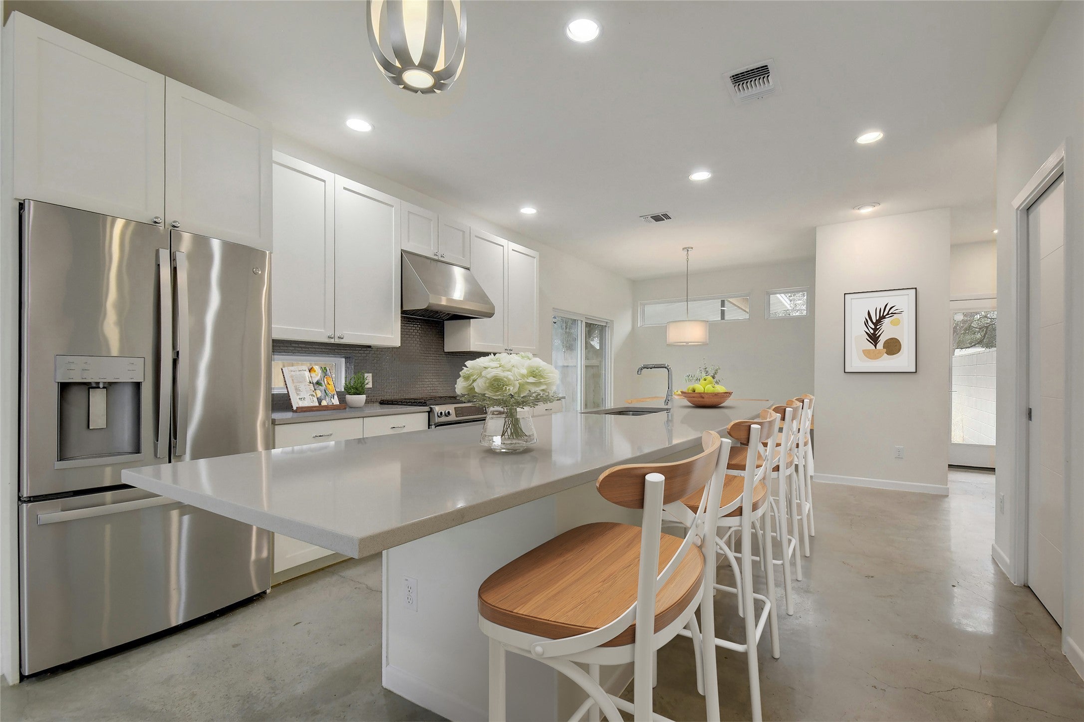 Located in the heart of 78704, this 5 Star green built contemporary condo offers a modern, easy living layout. The open floorplan flows seamlessly for both entertaining and everyday living, complemented by low maintenance concrete and hickory pecan flooring throughout. The kitchen features Silestone countertops, gas cooking, and a counter depth refrigerator, while bathrooms are finished with porcelain and Carrera marble. Spacious bedrooms provide comfort and flexibility, and a loft or study serves as an ideal home office or creative space. The private xeriscaped yard and covered parking add convenience with minimal upkeep. Enjoy being just minutes from South 1st and South Lamar, where local coffee shops, restaurants, and boutiques create a vibrant daily routine, along with close proximity to West Bouldin Creek, tennis courts, greenbelt trails, Butler Park, and Zilker Park. With Downtown Austin 2.5 miles away, it offers a well connected and walkable lifestyle in one of the city’s most established areas.