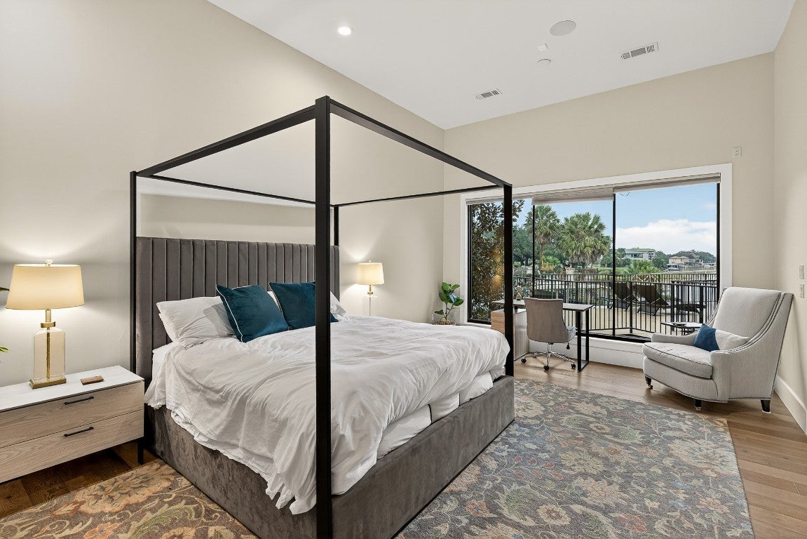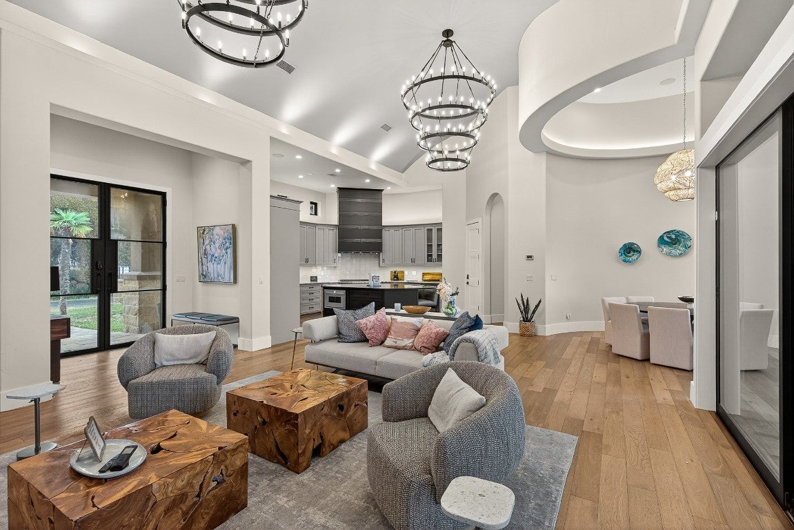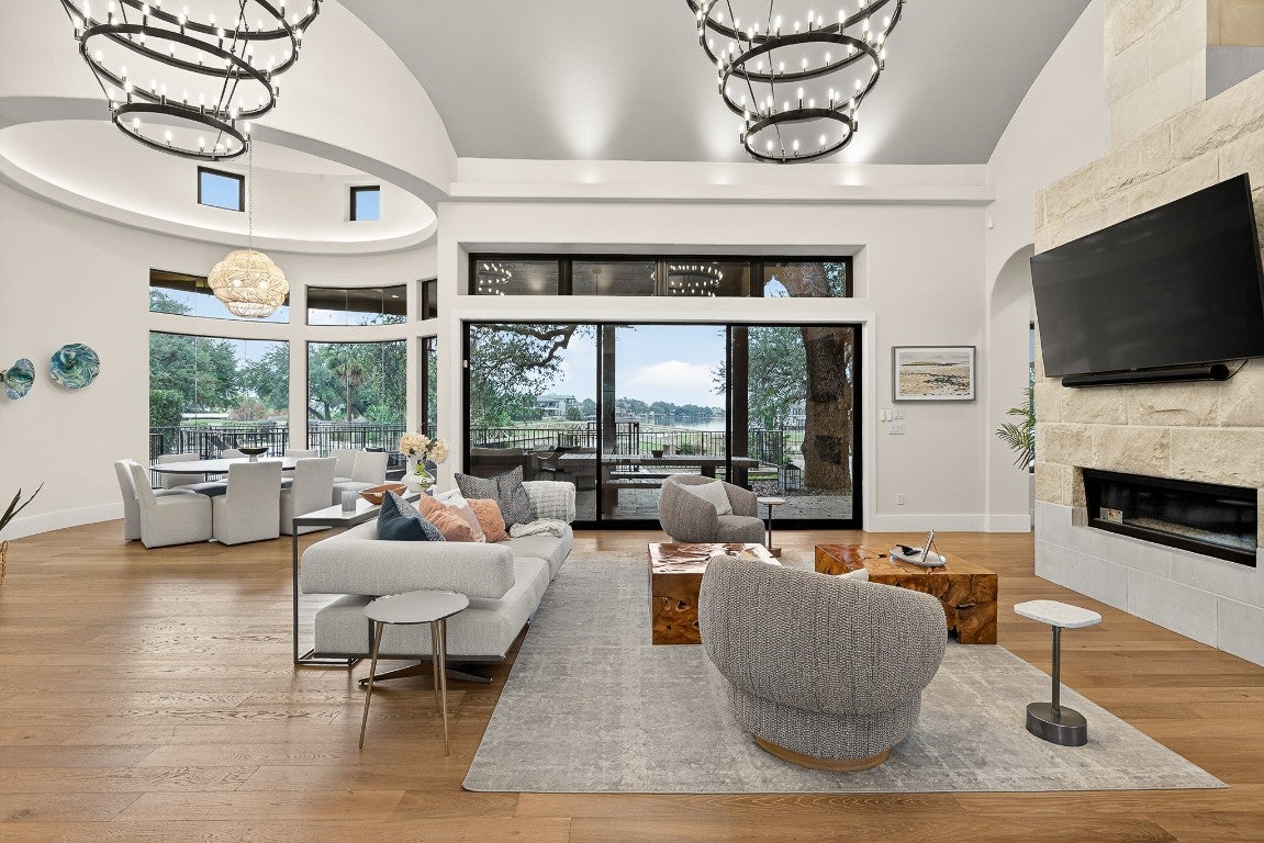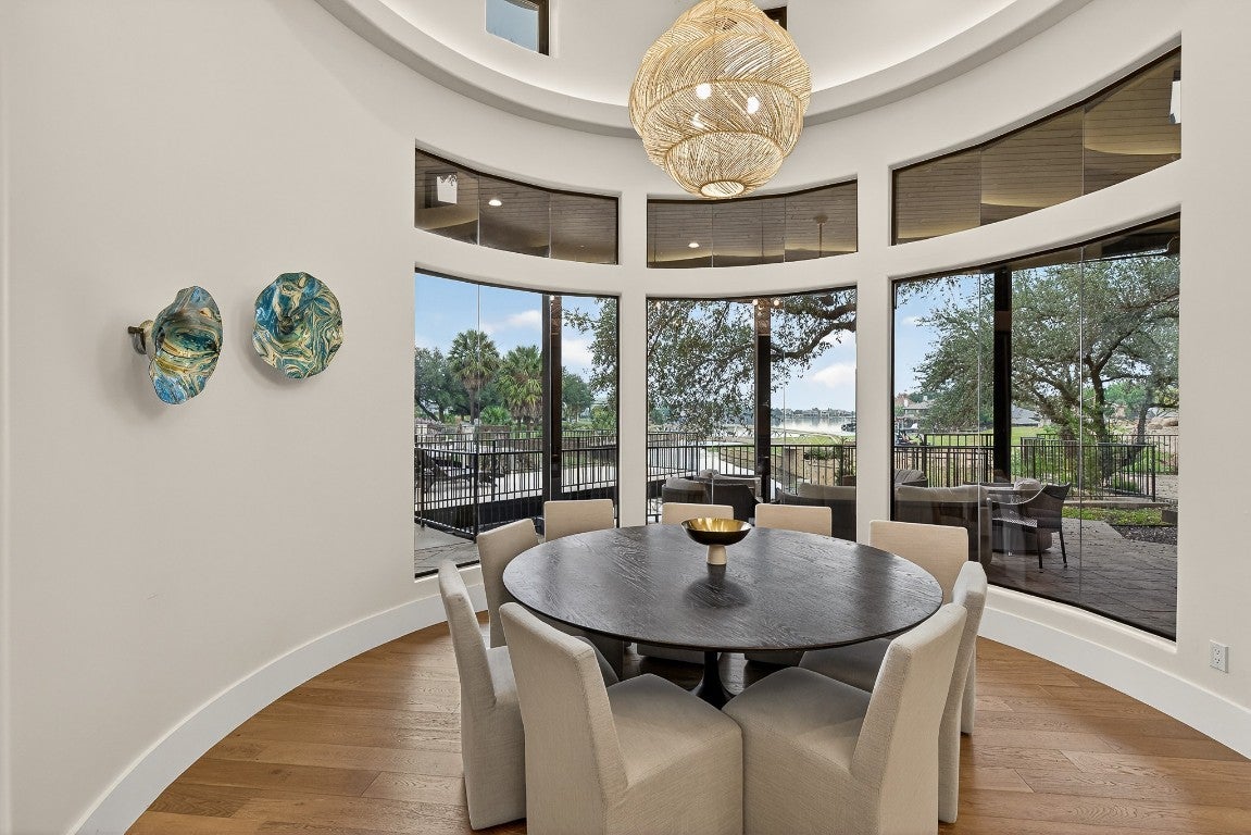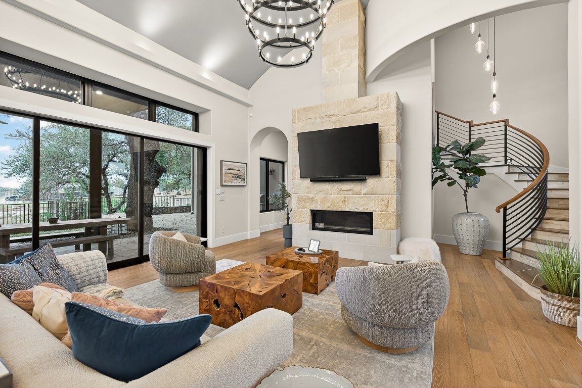 Why settle when you can have both Lake LBJ and golf-course access in the heart of Horseshoe Bay—all in a high-end luxury home with modern finishes? This cove-protected 2020 constructed HSB stunner boast a sliding glass wall that expands the great room and kitchen onto approximately 2,700 SF of covered porches and 704 SF of open sun deck, complete with an in-ground private pool, XL hot tub, and a full outdoor kitchen (grill, sink, and refrigerator). All five bedrooms are ensuite. The functional layout places the primary suite and a guest suite on the main level alongside a game/media room, while an elevator carries you to three additional suites upstairs. The primary bath features dual wet rooms (his and hers). Light and bright, the home is framed by live oaks and palms. Parking includes an oversized two-car garage plus a separate golf-cart bay. Located just minutes from Cap Rock Cabana & Bar + Grill and the Apple Rock and Ram Rock golf courses (membership required). Furnishings are negotiable, making this an ideal full-time residence, private weekend retreat, or short-term rental opportunity.
