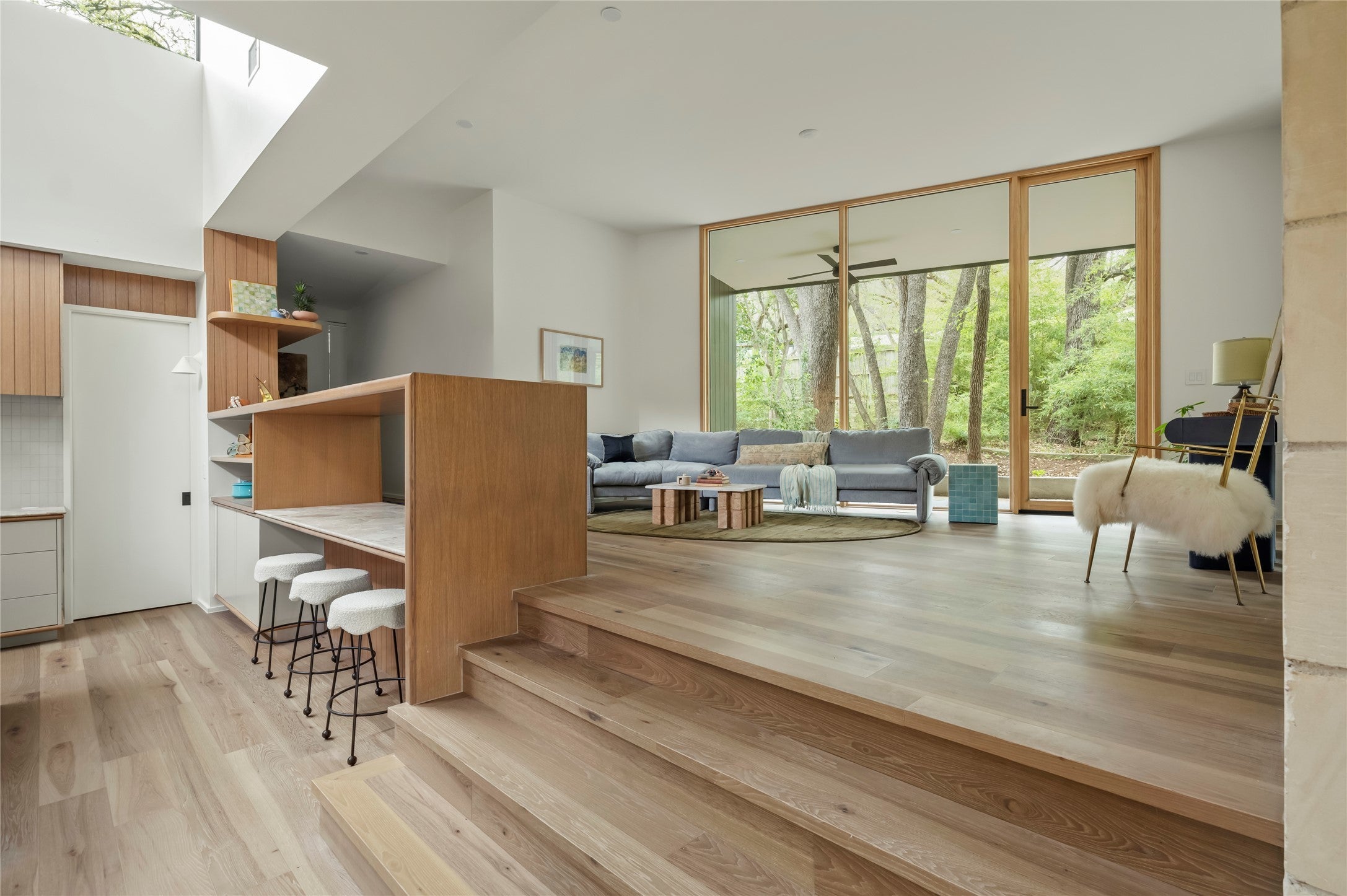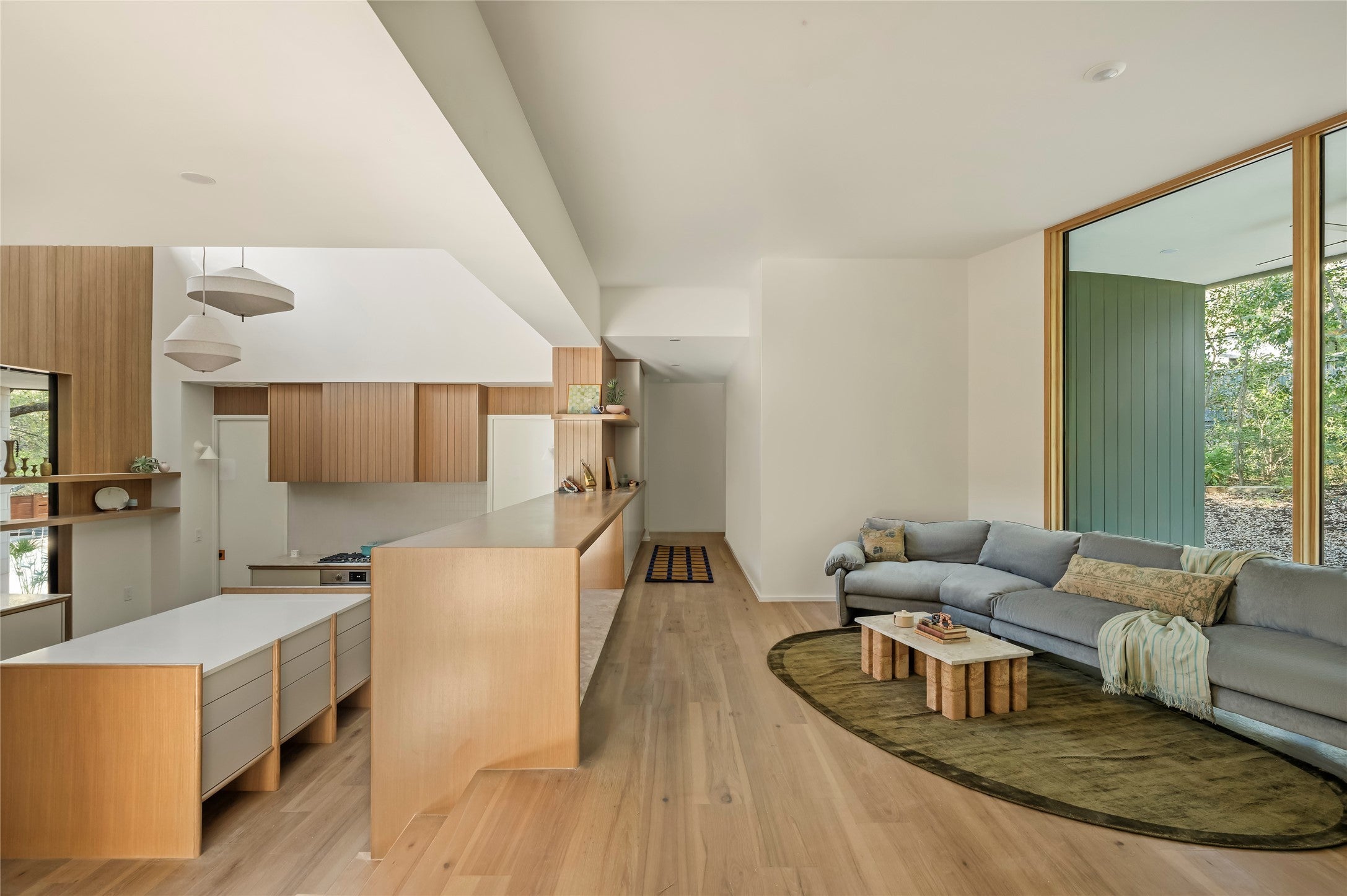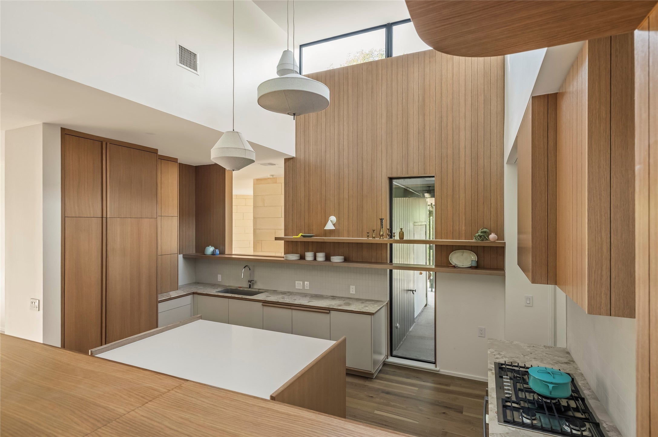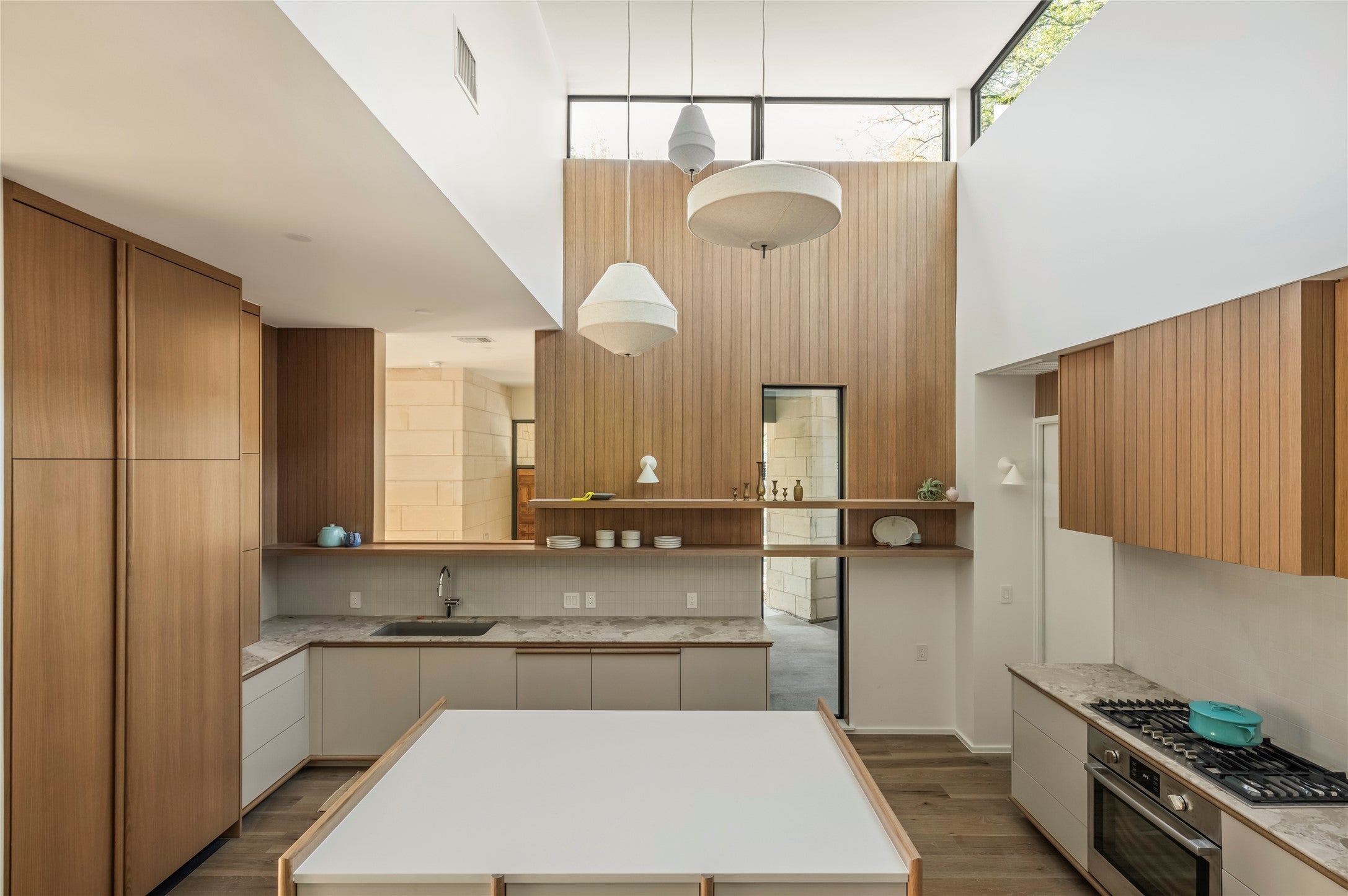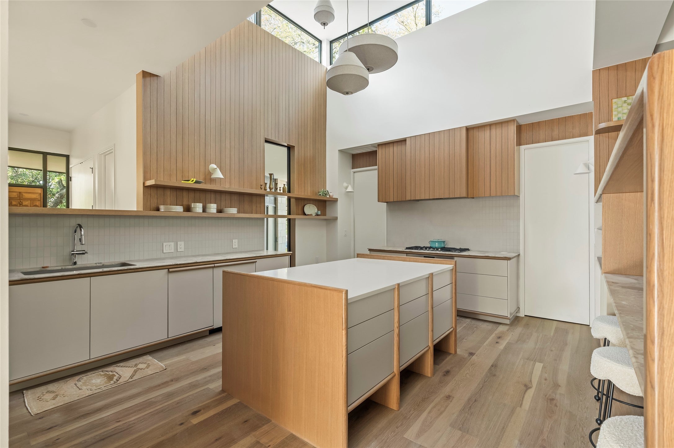 Located in one of the most coveted pockets of the highly desirable Barton Hills neighborhood, this one-of-a-kind mid-century residence is a rare architectural treasure. Originally designed by Robert S. Harris, Architect, and rumored to have been built by Stenger, the home was originally built in 1966 and underwent a meticulous renovation and thoughtful addition with architecture by Dob and Eel and build and interior finish out by Cary Paul Studios (awarded 2026 Best Builder by Austin Home) Set on an expansive .33-acre lot beautiful oak trees, this 3,144 SF home showcases a distinctive mid-century layout with bold angles, dramatic lines, and a dramatic central kitchen with celestory windows. The reimagined floor plan offers 4 bedrooms, 3.5 baths, 2 living rooms, and a dedicated study. Enterting thru the restored front door, a striking restored stand-alone fireplace anchors the main living area along with limestone block walls which were restored during the full-scale renovation. The home was fully gutted, with all major systems replaced, offering the rare combination of historic design integrity and the peace of mind of a near-new build. Perfectly positioned within walking distance to Barton Creek Greenbelt trails, Barton Springs Pool, Zilker Park, and Barton Hills Elementary, this location offers the quintessential Austin lifestyle. This is a rare opportunity to own an extraordinary piece of Austin’s architectural history - ready for the next era.
