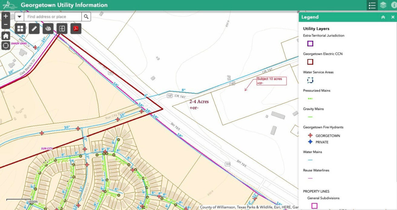 Exceptional commercial development opportunity located just behind the hard corner of Hwy 195 and County Road 147 in Georgetown’s rapidly expanding growth corridor. This 10.01-acre tract lies within the City of Georgetown's ETJ with no current zoning restrictions, making it highly flexible for a variety of uses including commercial, industrial, or investment purposes. The property features flat topography, excellent visibility, and convenient access to Hwy 195. Utilities include an 8” City of Georgetown water line running along the property and PEC electric on-site. Located just minutes from residential developments, retail centers, and I-35, this site is ideally positioned for future growth.