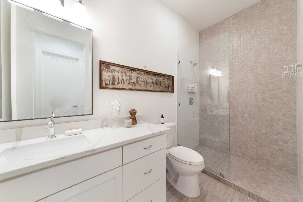 Vacant, GO. The seller has successfully transformed this duplex into two condominium units and is currently offering the front unit, 4704, for sale. The back unit is designated as 4706. There will be no monthly dues associated with this property. This impressive modern construction, finalized in 2020, provides the comfort of a single-family home and includes one enclosed carport. Furthermore, the driveway can accommodate one vehicle under the carport and two additional vehicles on the driveway. The residence features 10-foot ceilings, quartz countertops, and a spacious kitchen island equipped with upgraded stainless-steel appliances. The primary bedroom and a second guest bedroom are located on the upper level, each with en-suite bathrooms that feature frameless glass enclosures and tiled showers. An additional room on the lower level is perfect for an office or guest bedroom and includes a full bathroom. The property also boasts a fenced backyard with gravel for low maintenance and enhanced outdoor enjoyment. The covered front porch serves as an ideal location for enjoying morning coffee or tea. All bedrooms and the living room are equipped with ceiling fans. Lastly, an added advantage is that this unit is situated on Duval rather than one of the smaller interior streets where on-street parking is permitted. This property is ready for immediate occupancy.