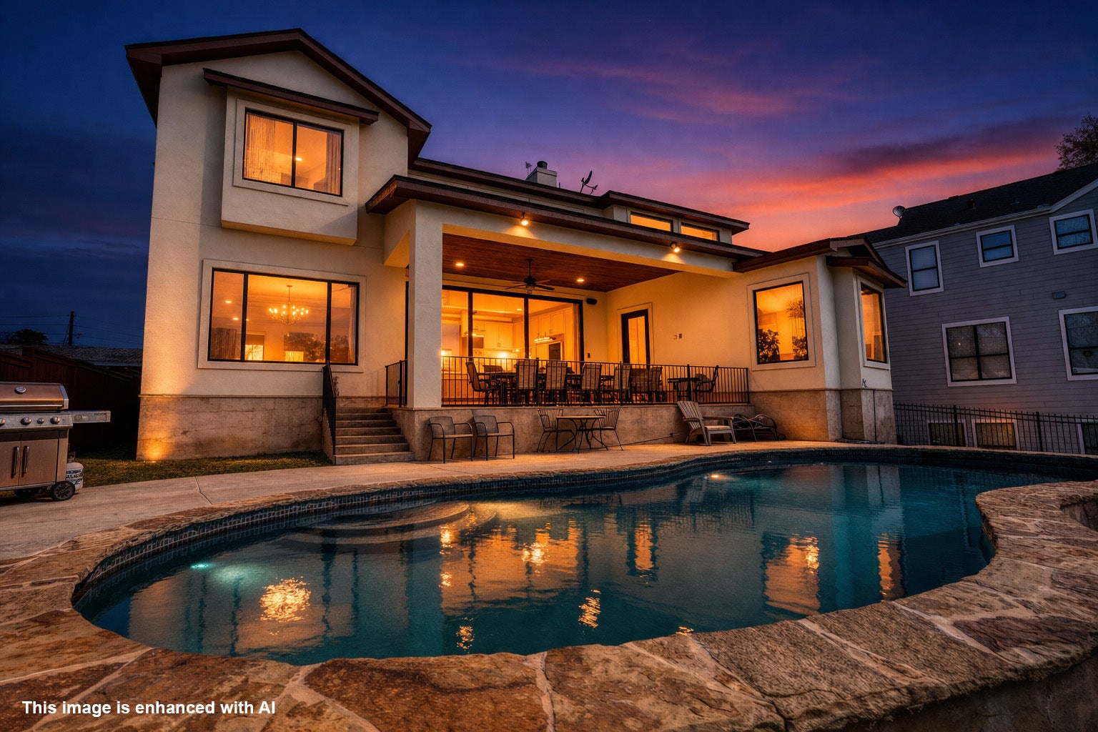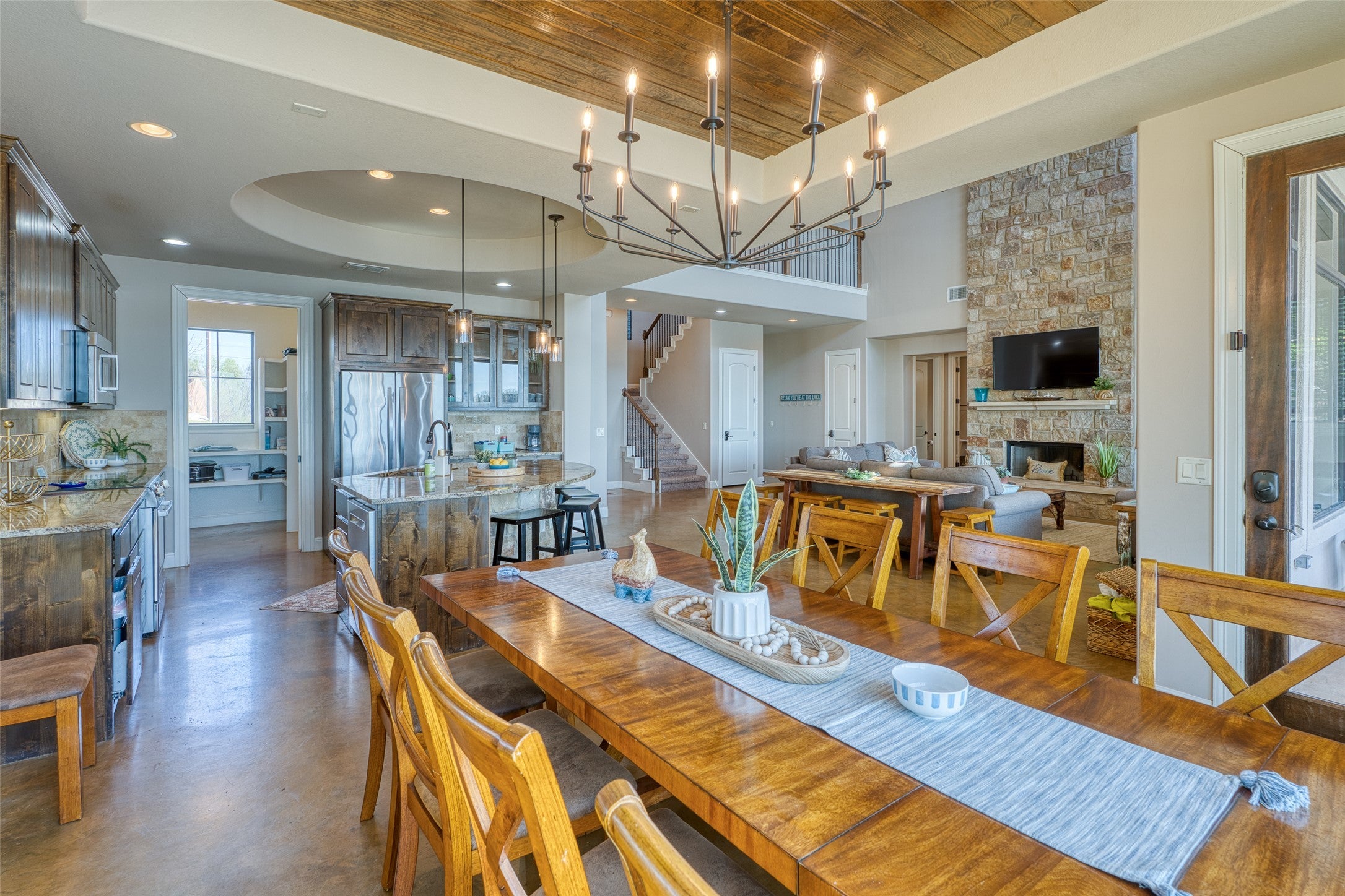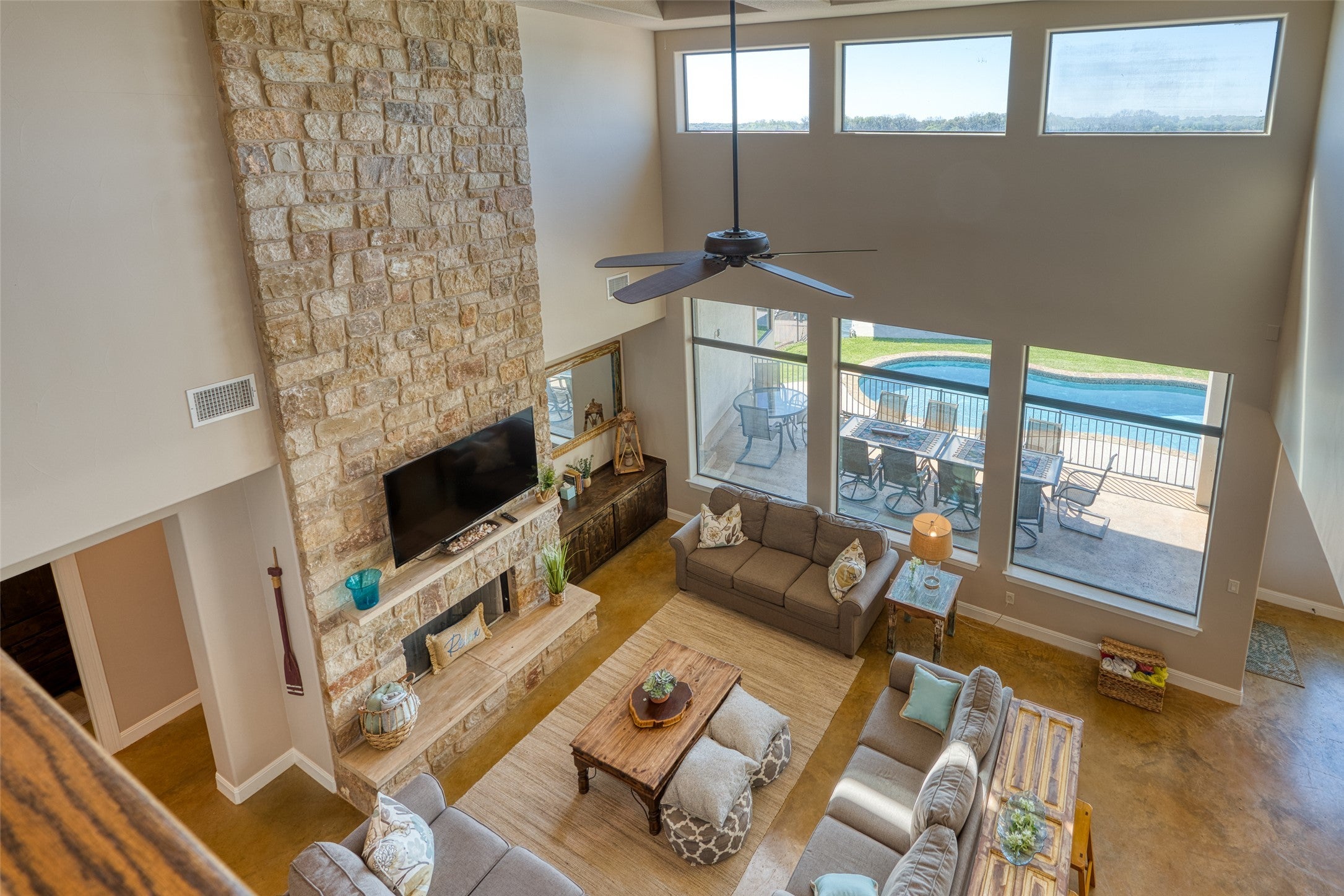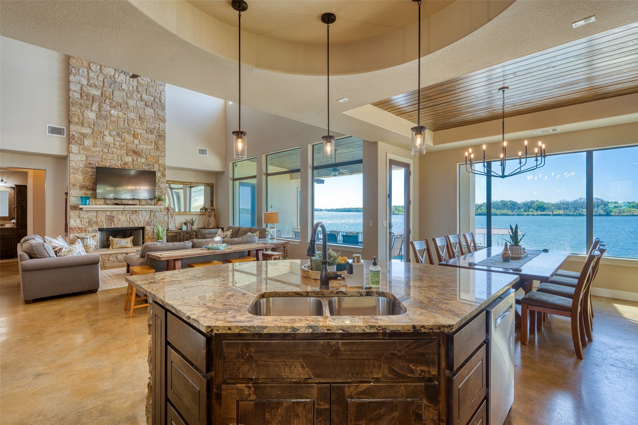 A turnkey waterfront property that balances luxury, privacy, and investment appeal, 517 Reynolds is built for the way people actually want to live on Lake LBJ. This 5-bedroom, 4-bath Lake LBJ retreat delivers nearly 4,000 sf designed for effortless lake living, with the rare ability to host extended family in comfort while also performing as a short-term rental. Built in 2016 and offered fully furnished, minus a few personal exclusions, the home is move-in ready and thoughtfully arranged for large gatherings, with generous living spaces, multiple sleeping areas, and seamless flow to the outdoors. Set on 70’ of southeast-facing open water frontage, the one-of-a-kind view is wide, unobstructed, and unusually peaceful, stretching across to ranch land and open sky, with the kind of lake backdrop where even seeing the cows across the water becomes part of the charm. Outside, the pool creates a true resort feel, while the private concrete and steel boat dock features 2 boat slips and 2 jet-ski lifts for easy days on the water. Positioned on .44 acres, the property enjoys quick access to boating, dining, and lake activity while staying removed from the noise, heavy traffic, and constant wake of the busier stretches nearby. 517 Reynolds is a rare combination of luxury, flexibility, and income potential located on one of Lake LBJ’s most desirable waterfront settings.