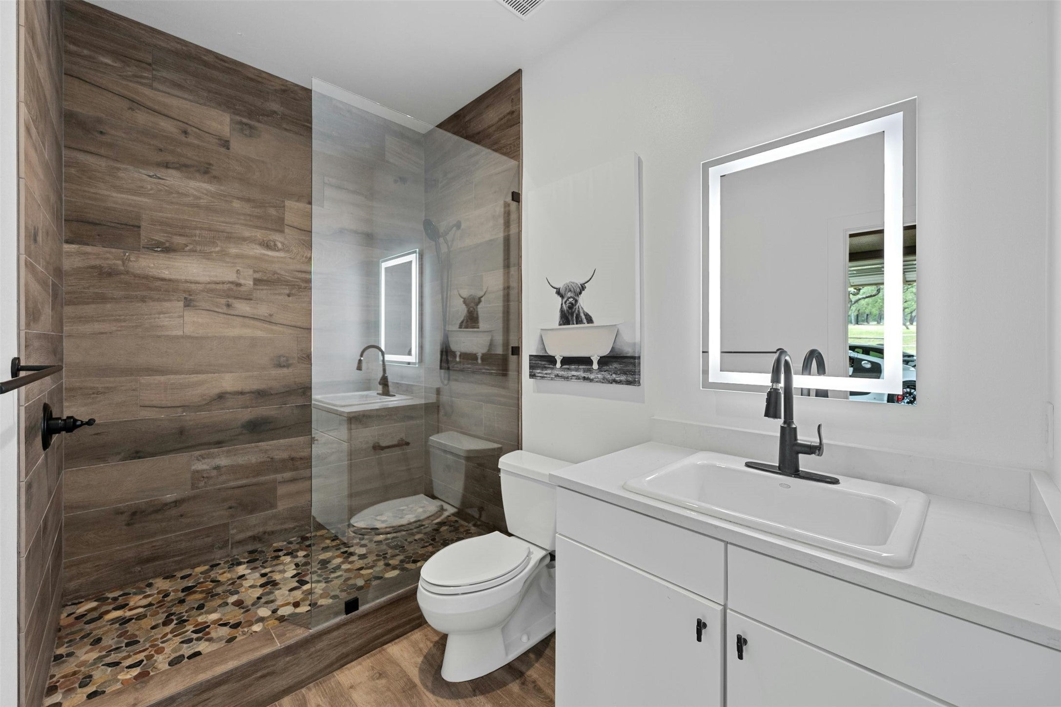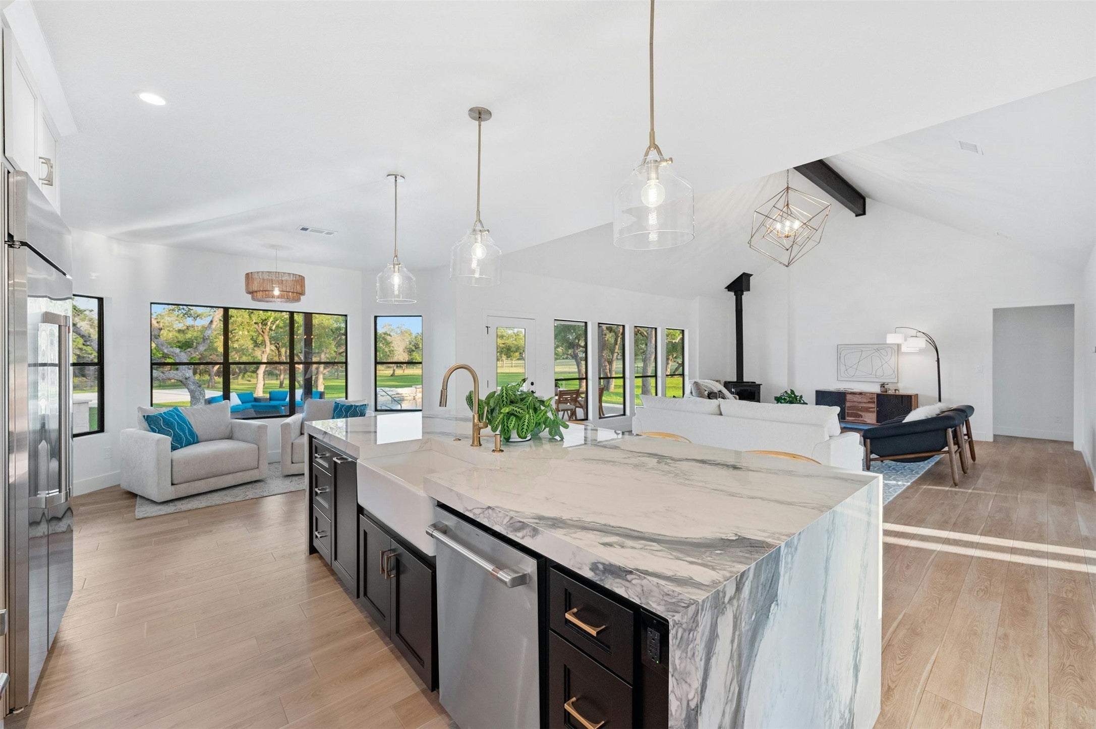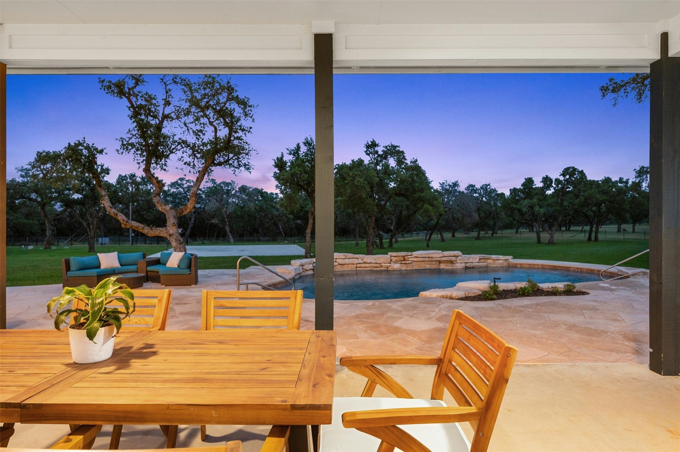 Turnkey Luxury Ranch & Homestead in the Texas Hill Country. Situated on 13 private acres in Dripping Springs, this meticulously renovated ranch offers the perfect blend of modern luxury and homestead living. Set in the double-gated Stallion Estates, it ensures both privacy and security, making it ideal for those looking to raise animals, cultivate a garden, or simply enjoy the serenity of the Hill Country. Perfect for horse lovers, the property features a 600 square foot barn with plumbing, electricity, and two large stalls that open to separate pastures. Bordered by protected land on two sides, enjoy forever greenbelt views and lasting seclusion. At the heart of the property is a fully remodeled 3,000 plus square foot main house featuring a new fourth bathroom addition in February 2025, fresh interior paint, upgraded trim, designer fixtures, and Shaw LVP flooring. The chef’s kitchen includes custom cabinetry, a walk-in pantry, porcelain countertops, an oversized waterfall island, and GE Cafe appliances. The primary bath features a soaking tub, tiled shower and feature wall, custom floating vanities, and seamless tile flooring into the walk-in closet. Additional highlights include updated secondary bathrooms and a laundry mudroom with built-ins. Designed for entertainment, the home offers a resort-style pool, built-in BBQ grill, and an expansive patio. Additional features include a 3,233 square foot insulated metal barn with a full bath, RV and heavy equipment storage, and home gym potential, an insulated chicken coop with a metal roof, fan, and heat lamps, and a sport court slab pre-wired and plumbed for a future casita. With wildlife exemption, low taxes, and subdivision potential, this property offers both investment value and multi-generational living. Just minutes from top-rated schools, dining, and outdoor recreation, this is more than a home—it is a Hill Country dream.
