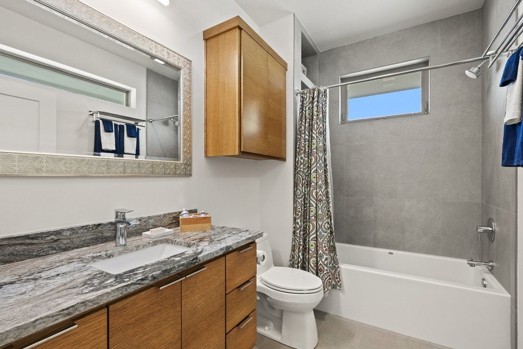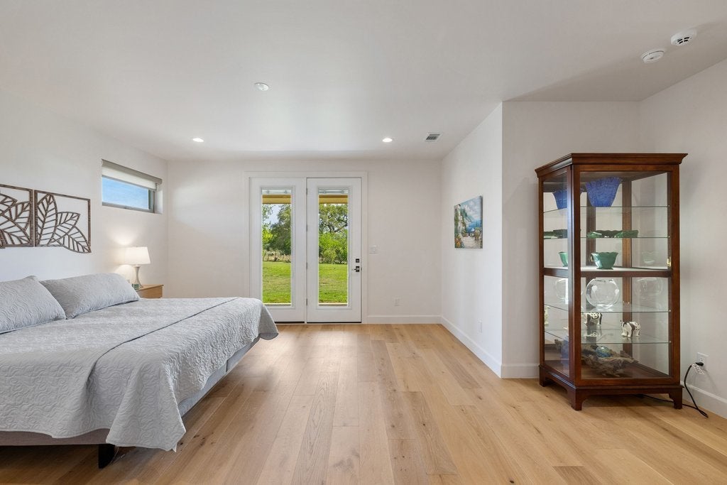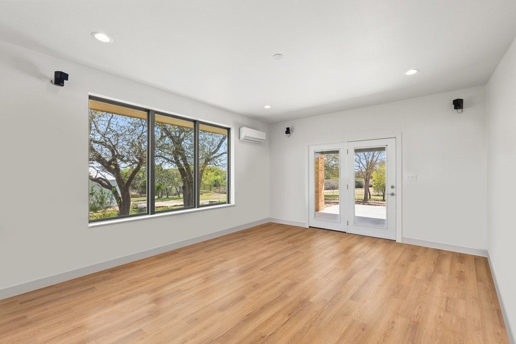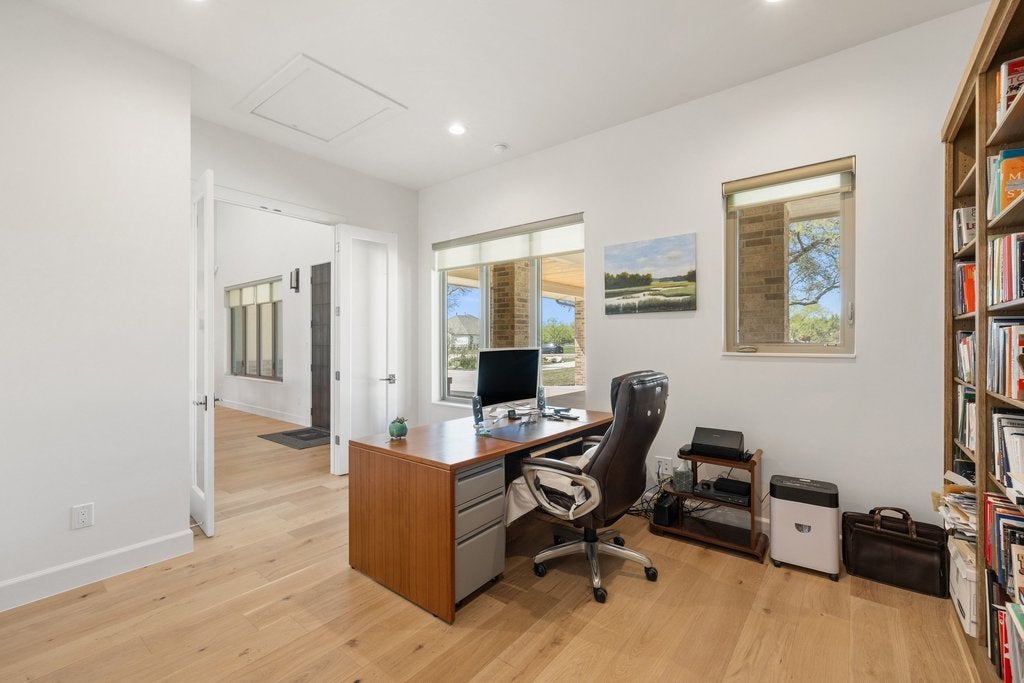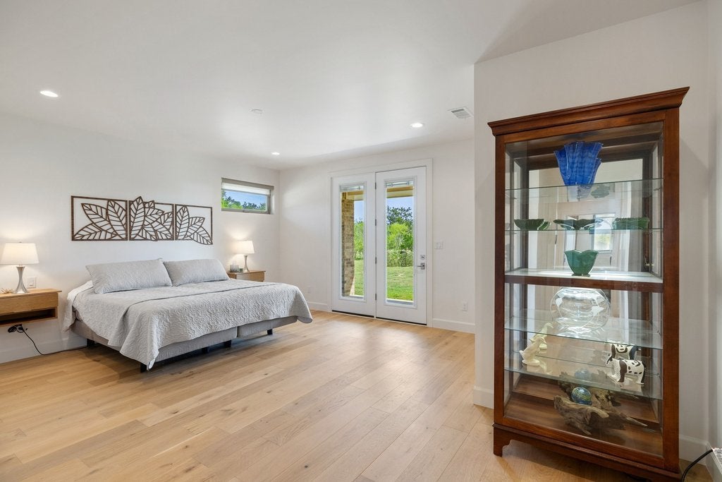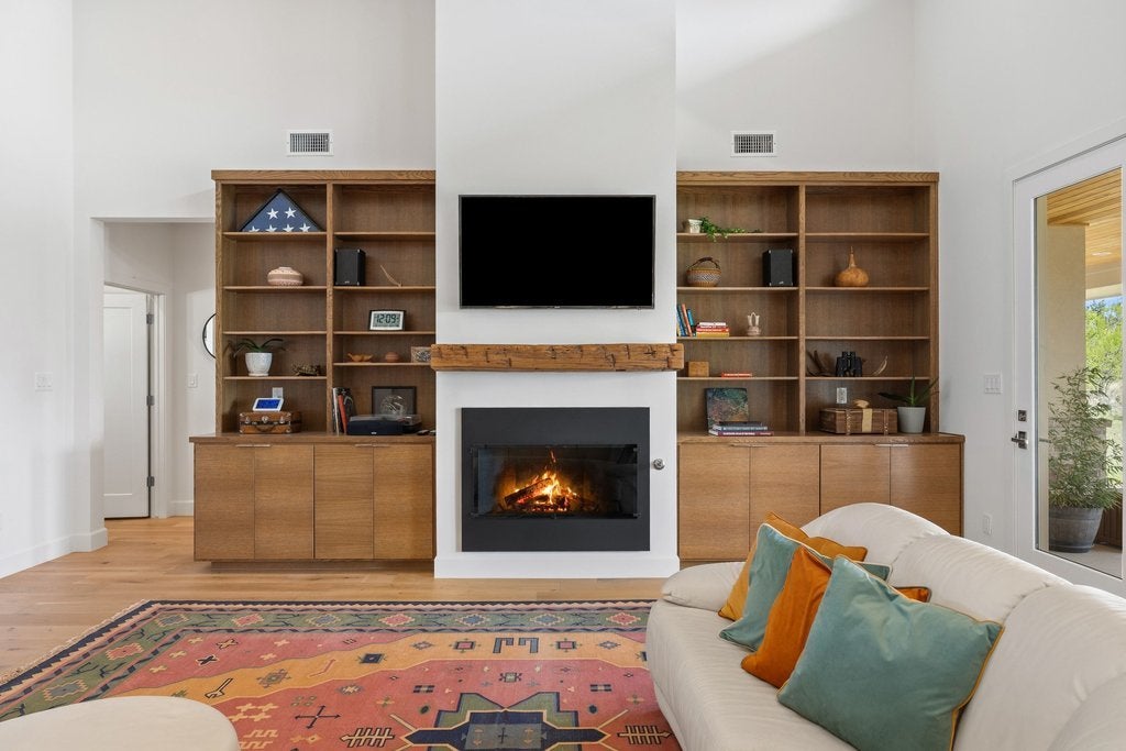 Tucked into the heart of the Texas Hill Country, 405 Spicewood Trails is a striking Frank Lloyd Wright–inspired masterpiece where timeless mid-century modern design meets refined, modern living. Set on a private, tree-filled acre backing to a private ranch, this property offers rare seclusion with no rear neighbors and a true connection to nature. Inside, soaring 16-foot ceilings anchor the great room, where expansive windows, warm hardwood floors, and clean architectural lines create an inviting yet dramatic living space. The chef’s kitchen is thoughtfully designed with premium Thermador appliances, custom rift white oak cabinetry, and sleek finishes that balance beauty and function. The home features three spacious bedrooms, three and a half baths, and a dedicated study, offering both comfort and flexibility. A separate studio with its own private entrance provides endless possibilities—ideal for a guest suite, creative workspace, fitness room, or private office. Every detail has been carefully considered, from level five wall finishes and integrated ceiling speakers to a propane fireplace, security system, and Generac generator for essential services. Energy efficiency is at the forefront with spray foam insulation, solar hot water heater panel, and an 80-gallon hot water collection tank. Step outside to enjoy the natural beauty of the property, where mature live oaks, cedar elms, and fruit trees create a peaceful, park-like setting. This property is a haven for bird watching and quiet mornings immersed in nature. A covered porte-cochere, circular driveway, and epoxy-finished garage floors complete the home’s thoughtful design and functionality. This is a rare opportunity to own a truly distinctive architectural home in one of Spicewood’s most desirable settings.