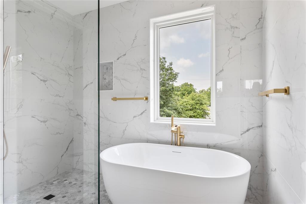 This brand new 3-story masterpiece offers modern living with unparalleled comfort. Featuring 4 spacious bedrooms and 3.5 luxurious bathrooms, there's room for everyone to spread out and unwind. The specialty glass front door opens to the heart of the home; the open-concept main floor and modern kitchen. The kitchen features a gas 5-burner range, built-in microwave, Samsung dishwasher, oven, built-in fridge, soft-close drawers throughout, & kitchen cabinets up to the ceiling. With waterfall edges on the kitchen island and custom oak cabinetry (with matching vents), it is perfect for entertaining. There's a convenient half-bath on the main floor. Upstairs, the master suite awaits, complete with a spa-like ensuite bathroom which includes calcutta marble thorughout and oak cabinets to match the kitchen. Also off the primary suite is the laundry room, and a custom 500 sq ft owner's balcony with marble tile and smart lights along the fence to illuminate the warm evenings. Two additional bedrooms and a full bath complete the second floor. But wait, there's more! The finished third floor boasts a versatile bedroom and full bathroom with a flex space. It is ideal for a guest space, home office, or media room. The garage also features epoxy sealing as well as a steel and glass door. This stunning new build is waiting to be your forever home!