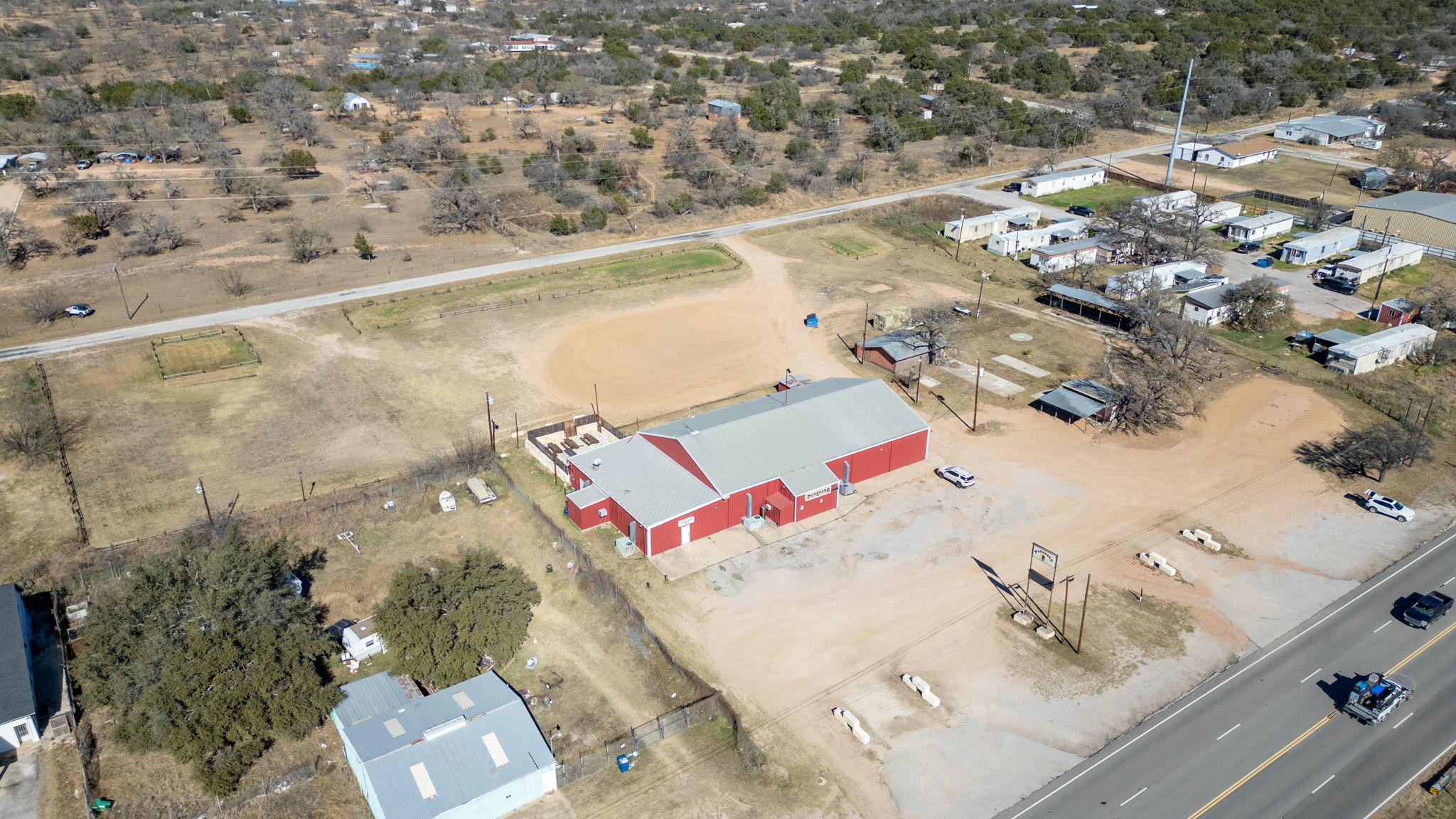 Unrestricted commercial property on TX-29 in the Highland Lakes growth corridor. Approx. 2.62 acres (subject to survey/plat) with an approx. 8,500+ SF building, approx. 200’ of highway frontage, and rare street-to-street access—ideal for easy traffic flow, deliveries, and flexible parking. Large open interior layout with additional rooms/areas supports a wide range of uses including storage, warehouse, retail, restaurant, church, contractor yard, mixed-use redevelopment, or event/venue concept. High-visibility location serving Buchanan Dam, Burnet, Marble Falls, Llano and the Lake Buchanan region. Rare combination of highway exposure, usable acreage, and substantial improvements—excellent opportunity for owner-user or investor. Shown by appointment only.