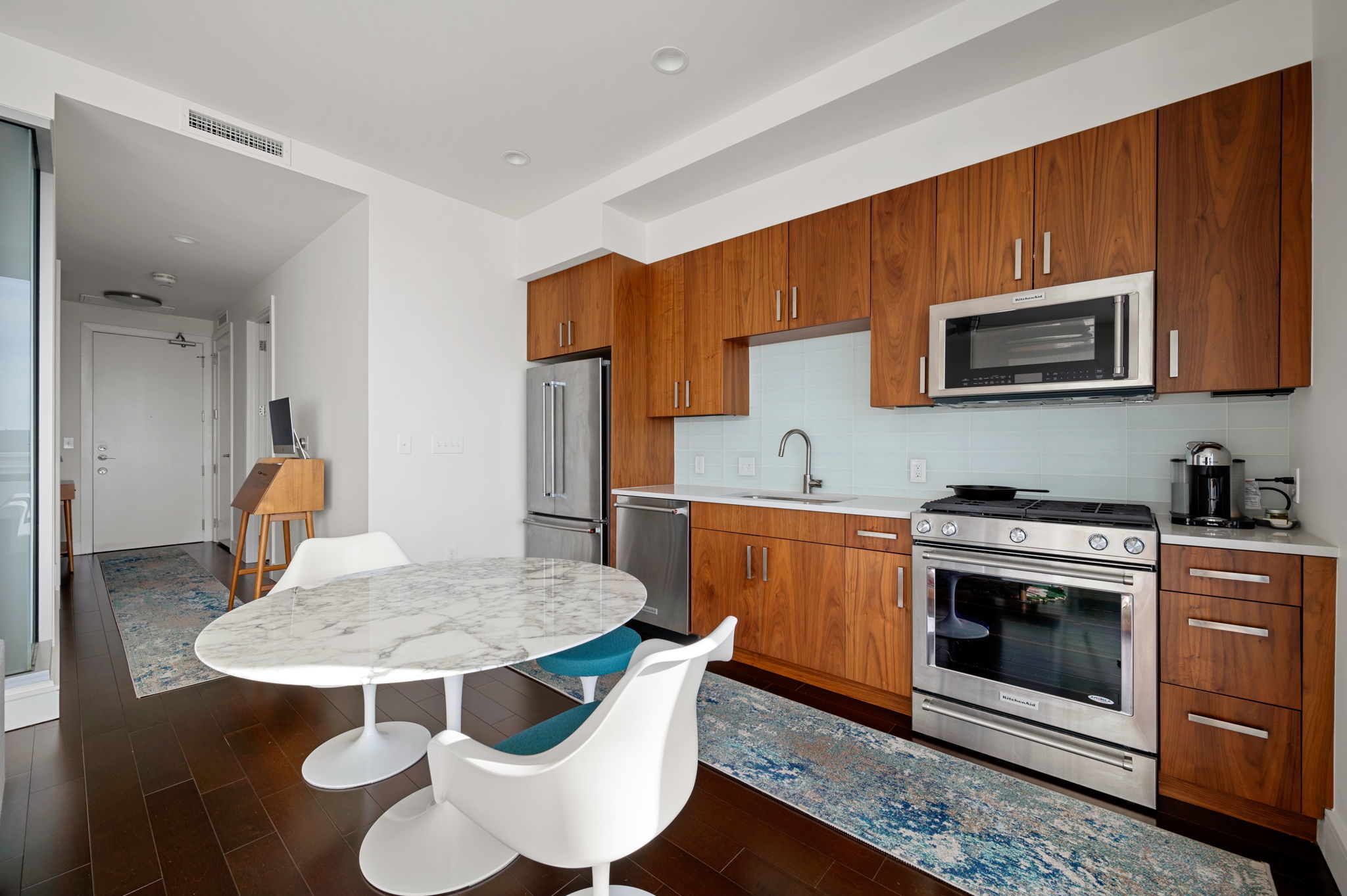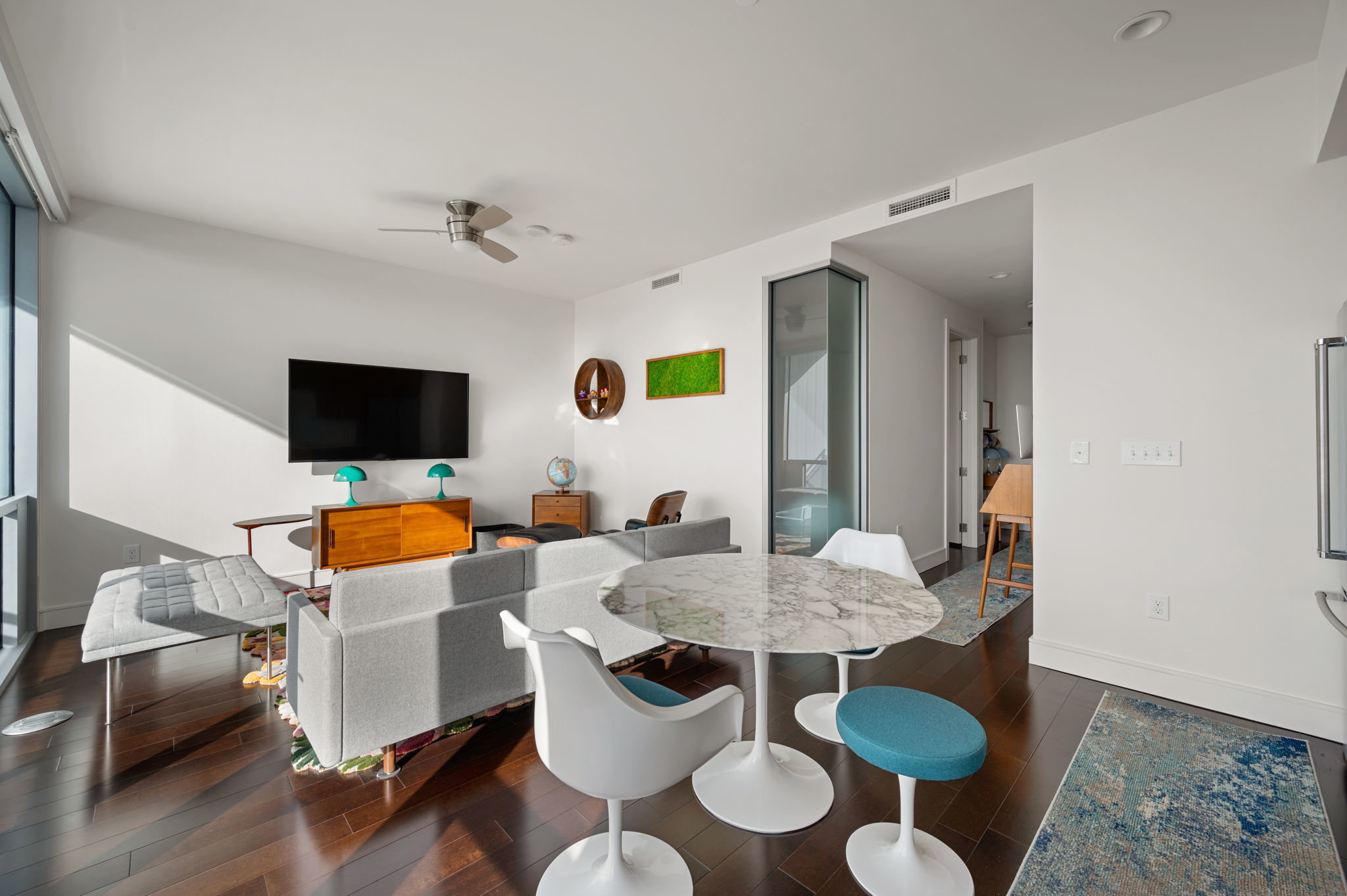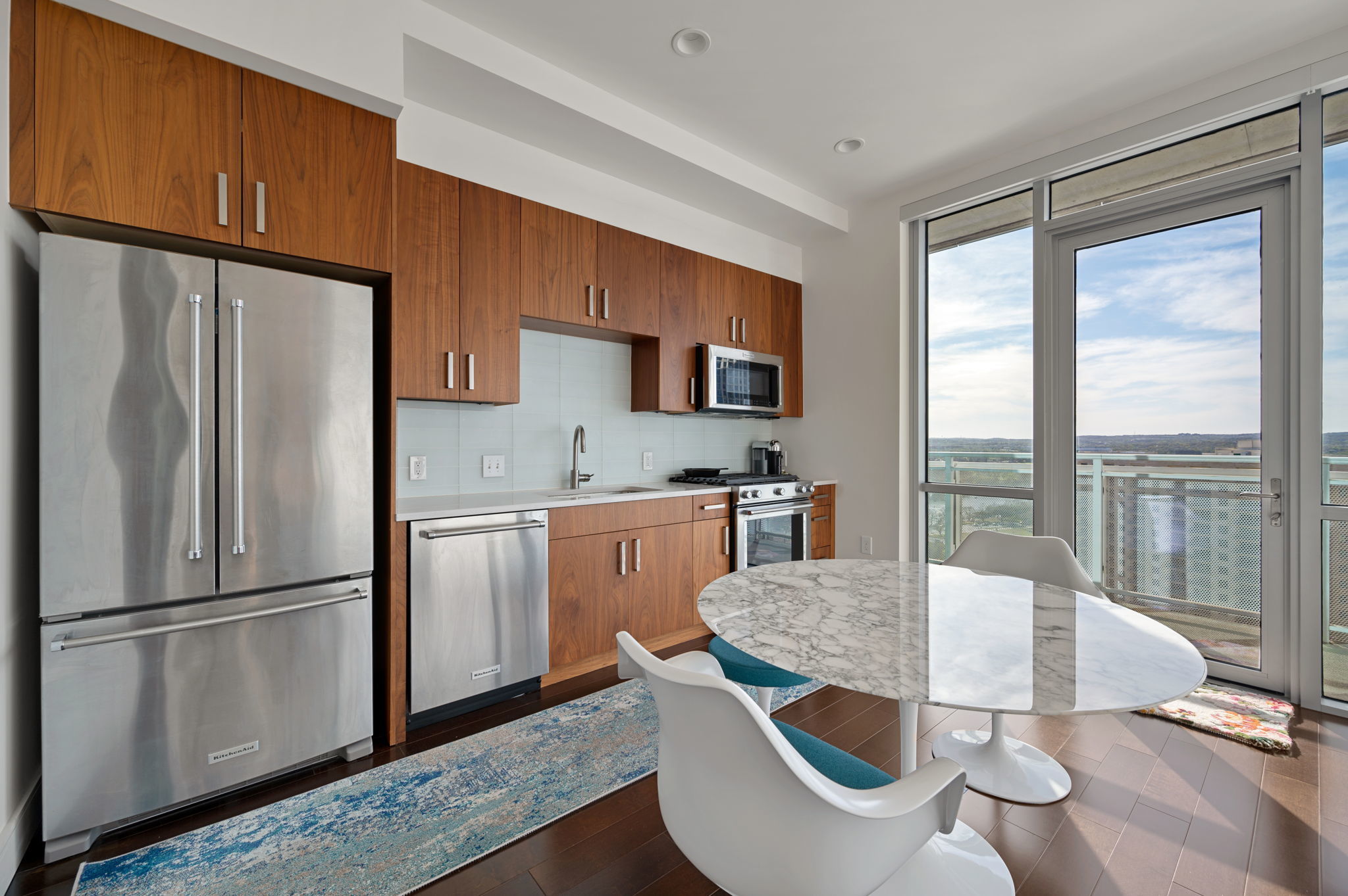 Rising high above the downtown neighborhood that has it all is Seaholm Residence 1908, offering an unbeatable location with sweeping city and water views. Efficient floor plan lives large, offering privacy for the owner’s suite and panoramic views from the kitchen and living area. Modern finishes throughout include wide plank white oak flooring, warm walnut cabinetry, a matte glass backsplash and sleek KitchenAid appliances. The oversized terrace is the perfect place to relax, unwind and take in the stunning hill country sunsets. Residents enjoy a resort-style 10th-floor sky deck with a heated lap pool, fitness center, owner’s lounge, concierge services, and pet-friendly amenities—all just steps from Lady Bird Lake, Trader Joe’s, and the Seaholm District’s dining and entertainment. Modern design, unbeatable walkability, and iconic Austin views make Seaholm one of downtown’s most sought-after condo communities.