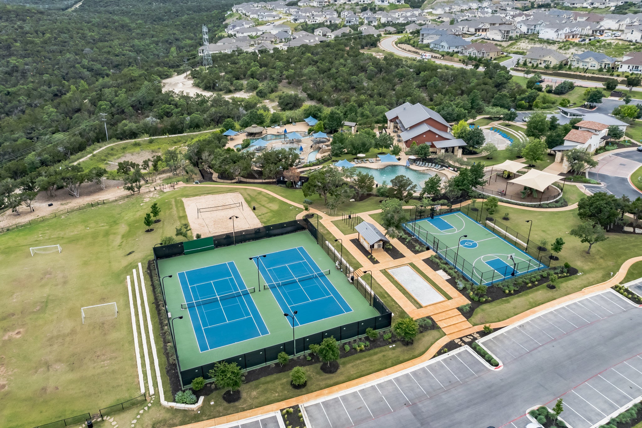 - Barbecue, Concierge, Common Grounds/Area, Clubhouse, Dog Park, Fitness Center, Lake, Playground, Park, Pool, Planned Social Activities, Restaurant, Sport Court(s), Suburban, Sidewalks, Tennis Court(s), Trails/Paths, Curbs