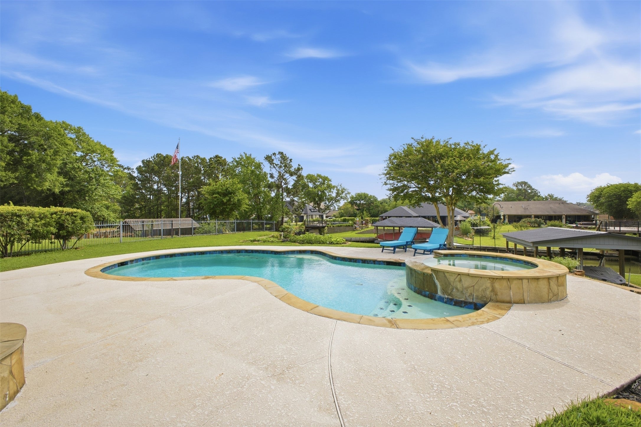 Exceptional updated waterfront home on an oversized lot in the gated community of The Estates of Point Aquarius. The gourmet kitchen features a gas cooktop, double ovens, and a walk-in pantry. The main floor also offers a wine room, formal dining area, and private study. The luxurious primary suite includes a spa-like bath with an oversized shower, stand-alone tub, and a custom closet with chandeliers. Upstairs, a spacious game room opens to a private balcony with stunning views of the backyard. This level includes four bedrooms, three baths, and access to a third-floor walk-in storage area. The outdoor oasis features a saltwater pool and spa, a gas fire pit, and an expansive deck. A private boathouse comes complete with boat lift, and jet ski lifts (2). Noteworthy, both hot water heaters and AC units have been replaced in the past 5 years. Community amenities include two pools, tennis and pickleball courts, a marina, a disc golf course, and a clubhouse. Immaculate home tended by immaculate owners! HOME PRIDE and Lake Conroe living!