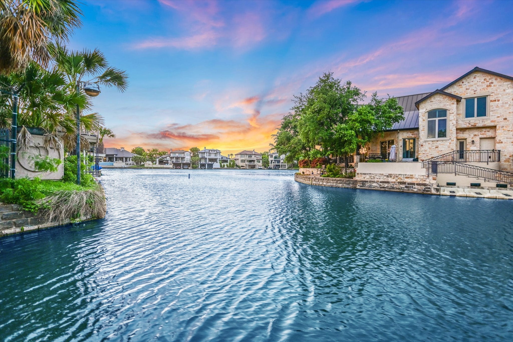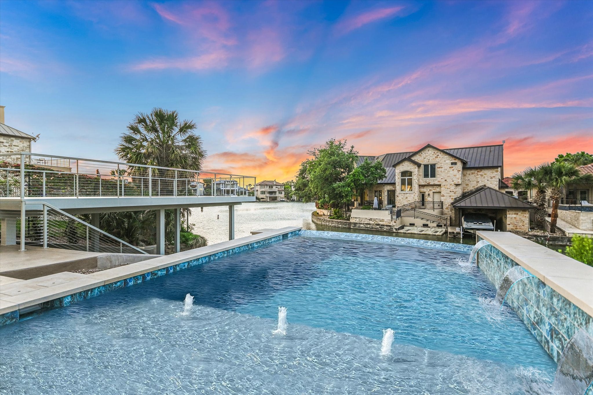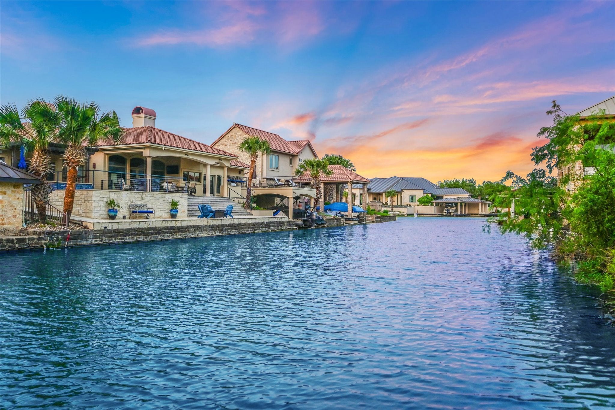 Now offered at an EXTRAORDINARY VALUE: $790 PER SQUARE FOOT for luxury new construction lakefront living, with high-end finishes and architectural detail typically reserved for homes at far higher price points. This modern, contemporary waterfront residence sits at the mouth of Applehead Island’s scenic lagoon, where the channel allows constant water exchange and quick access to open water. Inside, a soaring marble fireplace anchors the open great room while a floating second story adds sculptural drama. Natural light fills expansive windows framing tranquil lake views and emphasizing meticulous craftsmanship. The chef’s kitchen offers two-tone cabinetry, quartz counters, muted gold accents, and a full Thermador suite including range, integrated refrigerator, freezer, and wine cooler. A concealed butler’s pantry connects to a well-planned mudroom. Glass walls open to a covered patio with outdoor kitchen, fireplace, and pool that lead to the private boathouse and sun deck. The main level features a guest suite and a lakeview primary with spa bath, wet room, slipper tub, and water closet. Upstairs, a second living area with wet bar connects to a bunk room, two additional bedrooms, and two baths. A rare three-car garage and low-maintenance xeriscape landscaping complete a home ideal for full-time or lock-and-leave lakefront living—elegant, purposeful, and connected to the water at every turn. Real estate agents Jan & Roy Busse are partners in Moon Isle LLC, owner & seller of 98 Wennmohs, Horseshoe Bay, TX