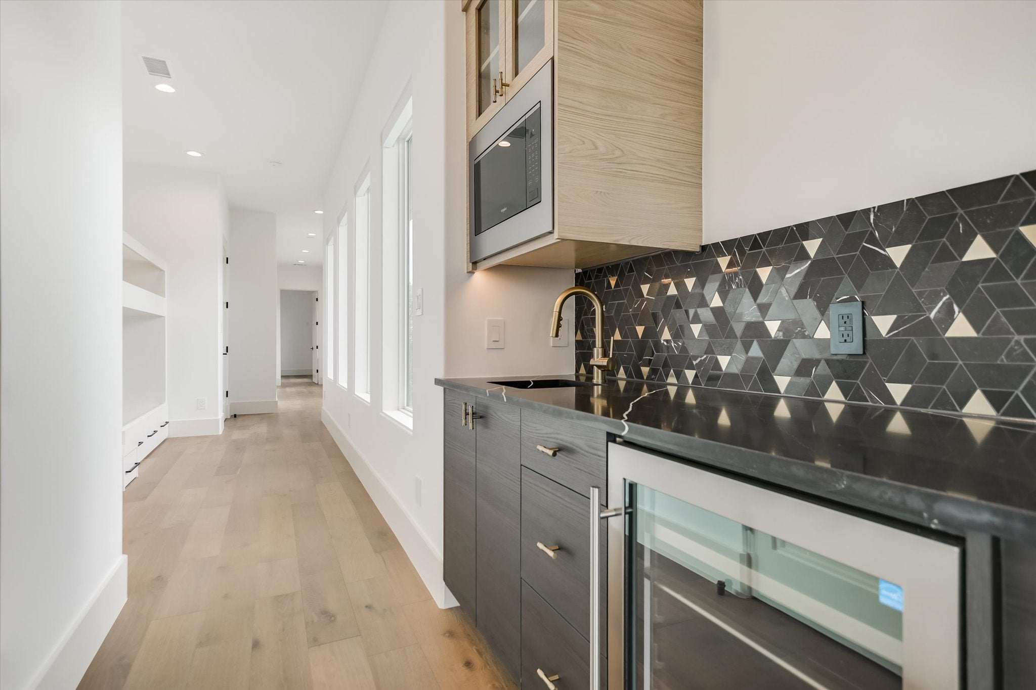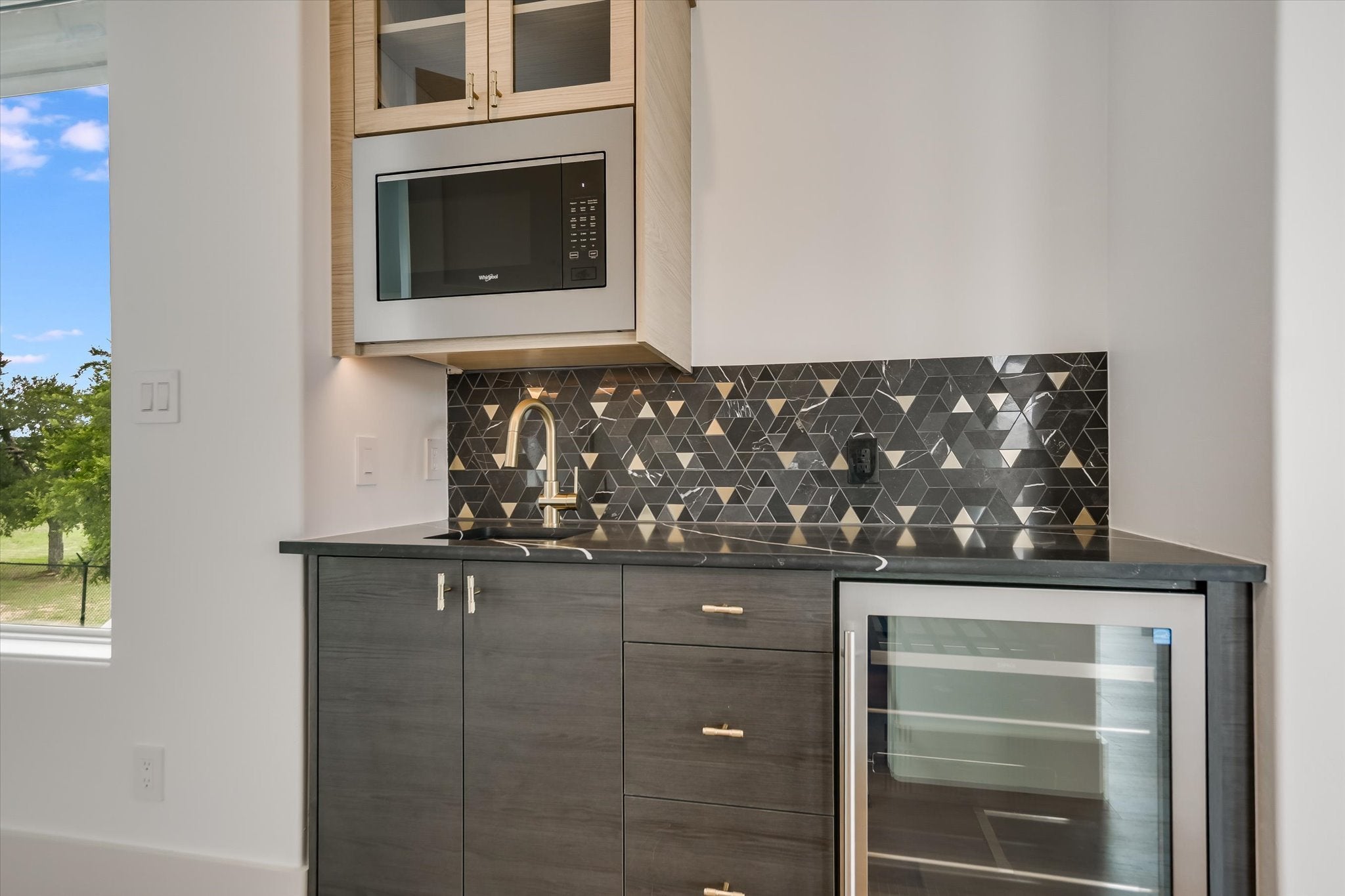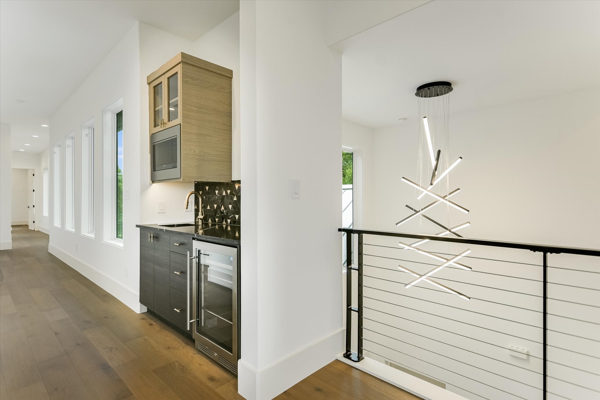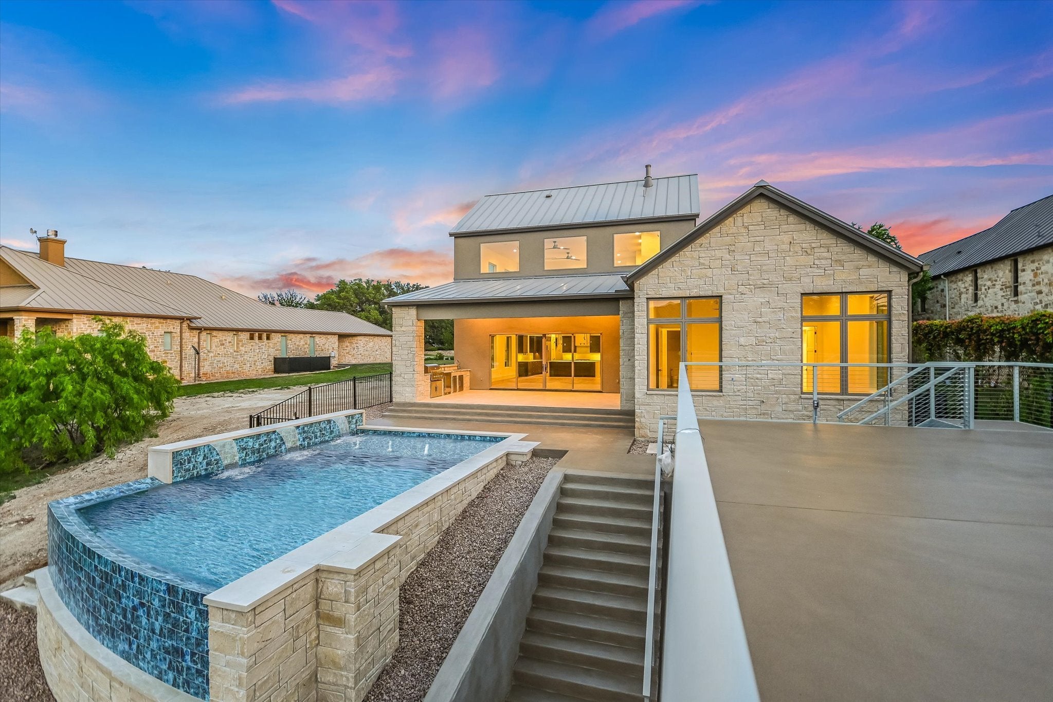 Now offered at an EXTRAORDINARY VALUE: $790 PER SQUARE FOOT for luxury new construction lakefront living, with high-end finishes and architectural detail typically reserved for homes at far higher price points. This modern, contemporary waterfront residence sits at the mouth of Applehead Island’s scenic lagoon, where the channel allows constant water exchange and quick access to open water. Inside, a soaring marble fireplace anchors the open great room while a floating second story adds sculptural drama. Natural light fills expansive windows framing tranquil lake views and emphasizing meticulous craftsmanship. The chef’s kitchen offers two-tone cabinetry, quartz counters, muted gold accents, and a full Thermador suite including range, integrated refrigerator, freezer, and wine cooler. A concealed butler’s pantry connects to a well-planned mudroom. Glass walls open to a covered patio with outdoor kitchen, fireplace, and pool that lead to the private boathouse and sun deck. The main level features a guest suite and a lakeview primary with spa bath, wet room, slipper tub, and water closet. Upstairs, a second living area with wet bar connects to a bunk room, two additional bedrooms, and two baths. A rare three-car garage and low-maintenance xeriscape landscaping complete a home ideal for full-time or lock-and-leave lakefront living—elegant, purposeful, and connected to the water at every turn. Real estate agents Jan & Roy Busse are partners in Moon Isle LLC, owner & seller of 98 Wennmohs, Horseshoe Bay, TX