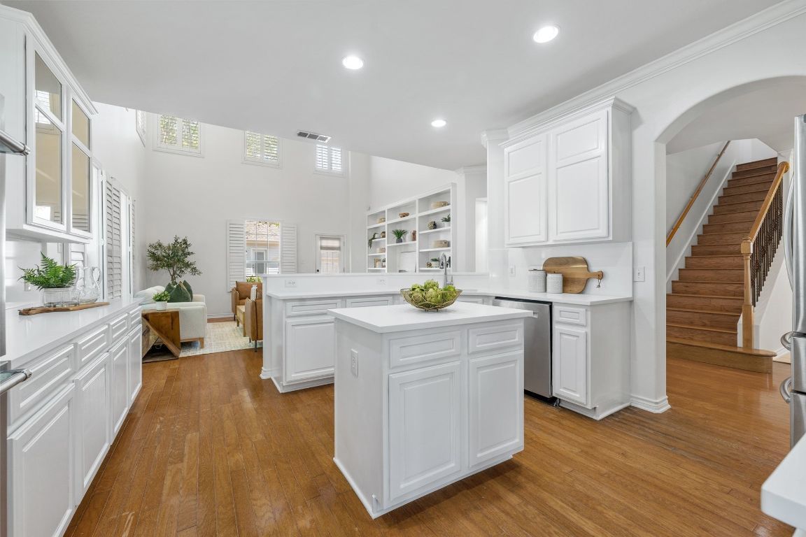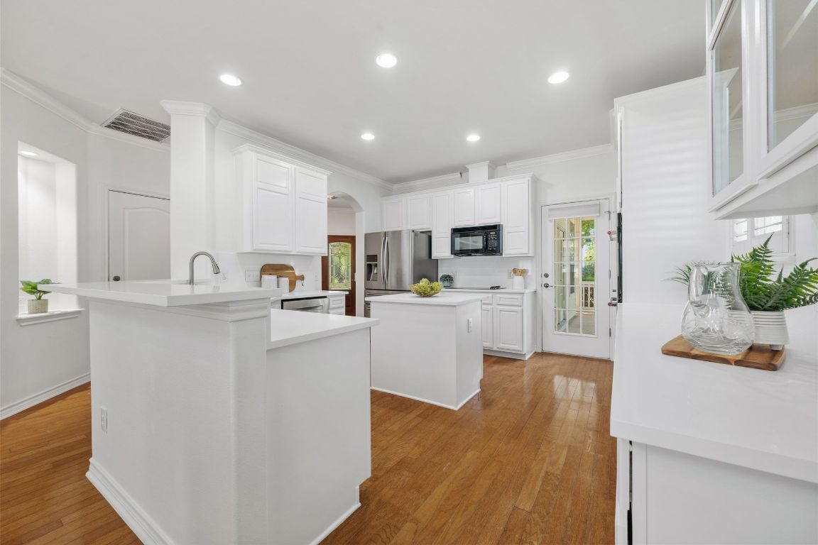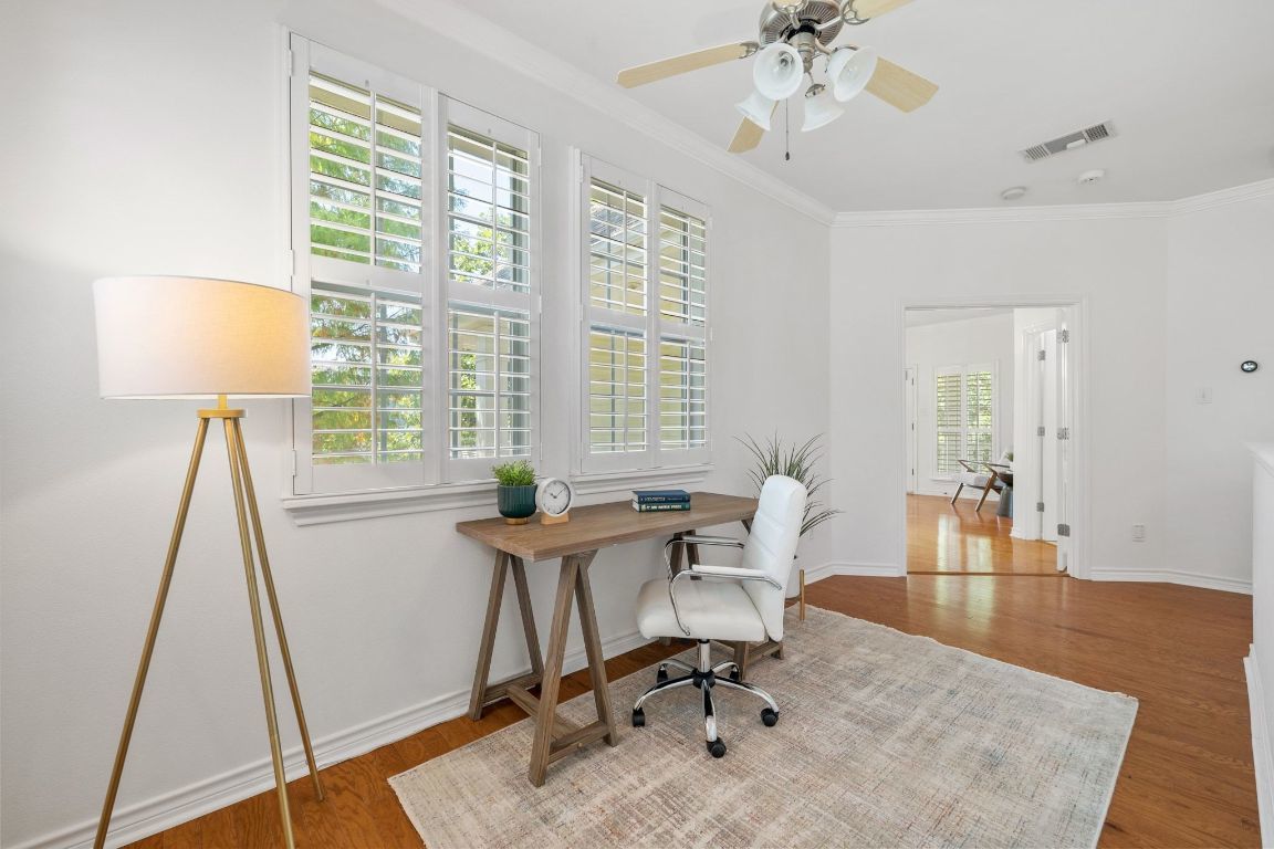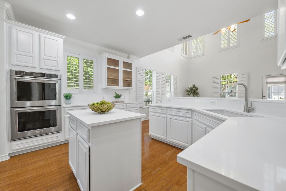 Welcome to 1704 Kinney Oaks Ct, where iconic Austin living meets everyday convenience! Nestled in a hidden-gem pocket neighborhood in the heart of South Lamar, this home offers unbeatable access to everything that makes 78704 legendary. Just minutes from downtown, you’re blocks away from Austin’s most beloved spots — from the Saxon Pub and C-Boys Lounge to Zilker Park, Barton Springs Pool, and a lineup of acclaimed restaurants, coffee shops, and trailheads. Perfect for those seeking a low-maintenance, lock-and-leave lifestyle, this home combines urban convenience with a rare sense of privacy. Set beside the Kinney Oaks private community park, you can enjoy green space and shade without the upkeep of a large yard — an ideal balance for busy professionals or frequent travelers. Inside, soaring vaulted ceilings and walls of windows fill the open-concept layout with natural light. Fresh paint throughout and new quartz countertops in the kitchen and bath create a fresh, inviting feel. Thoughtful design touches include both first- and second-level wraparound porches — perfect for relaxing or entertaining while enjoying the peaceful Kinney Oaks setting.