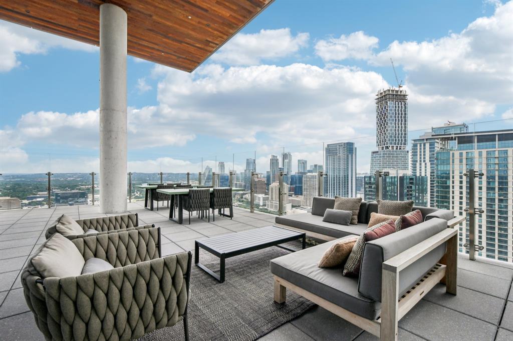 Experience elevated urban living in this sophisticated downtown Austin condo, where breathtaking views of Lady Bird Lake and the iconic Austin skyline create a striking backdrop for everyday life. Nestled at the edge of the vibrant Rainey Street district, this residence offers unrivaled access to the Hike & Bike Trail, premier dining, and entertainment—all just steps from your front door. Inside, sleek wide-plank hardwood floors and designer tile span the open-concept layout, complemented by high-end Italian cabinetry and elegant quartz countertops with a dramatic full-height quartz backsplash. The kitchen is outfitted with Bosch appliance package, including a built-in paneled refrigerator, seamlessly blending style and function. Floor-to-ceiling windows flood the space with natural light and frame postcard-worthy panoramic views in every room, while customized solar shades provide comfort and privacy. Step onto your expansive, covered balcony—perfect for morning coffee, evening cocktails, or simply unwinding while taking in the sweeping vistas of the lake and skyline. This residence includes a premium parking space with a new EV charger and grants access to over 13,000 square feet of world-class amenities spanning the 11th and 37th floors. Highlights include a dramatic cenote-style pool, outdoor lounge with gas grills, rooftop dog park and pet spa, state-of-the-art fitness center, dedicated yoga studio, multiple conference rooms, and an entertainment lounge complete with TVs and a caterer’s kitchen. For added convenience, a premium parking space on 3rd floor near the elevators and two fully furnished guest suites are available to host friends and family, while a 24-hour concierge ensures exceptional service and security. Discover refined living in one of Austin’s most exclusive high-rises—where comfort, convenience, and captivating views come together in perfect harmony. Ask about our access to creative financing options&programs, including “Buy First, Sell Later".