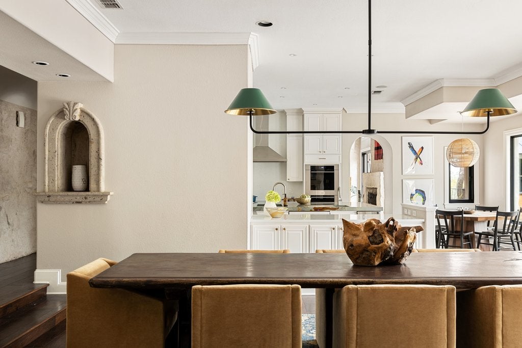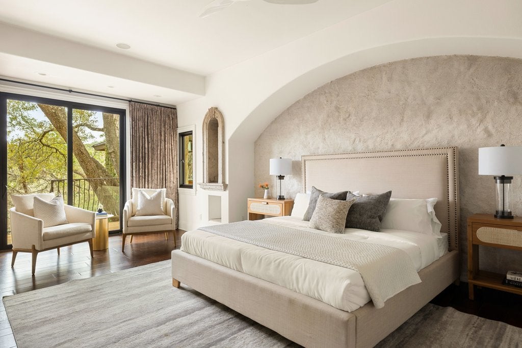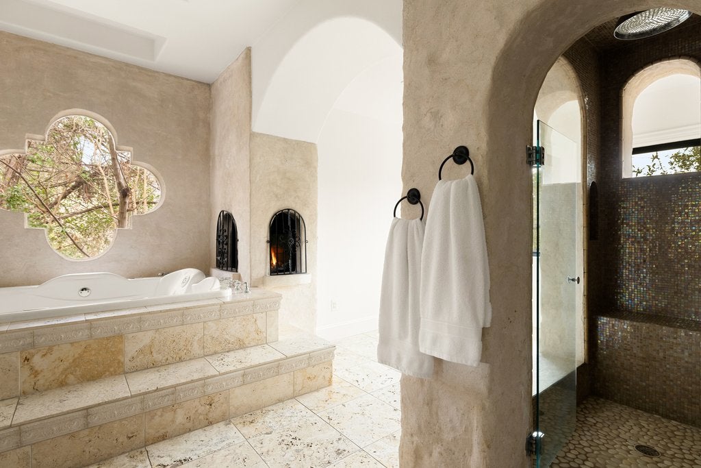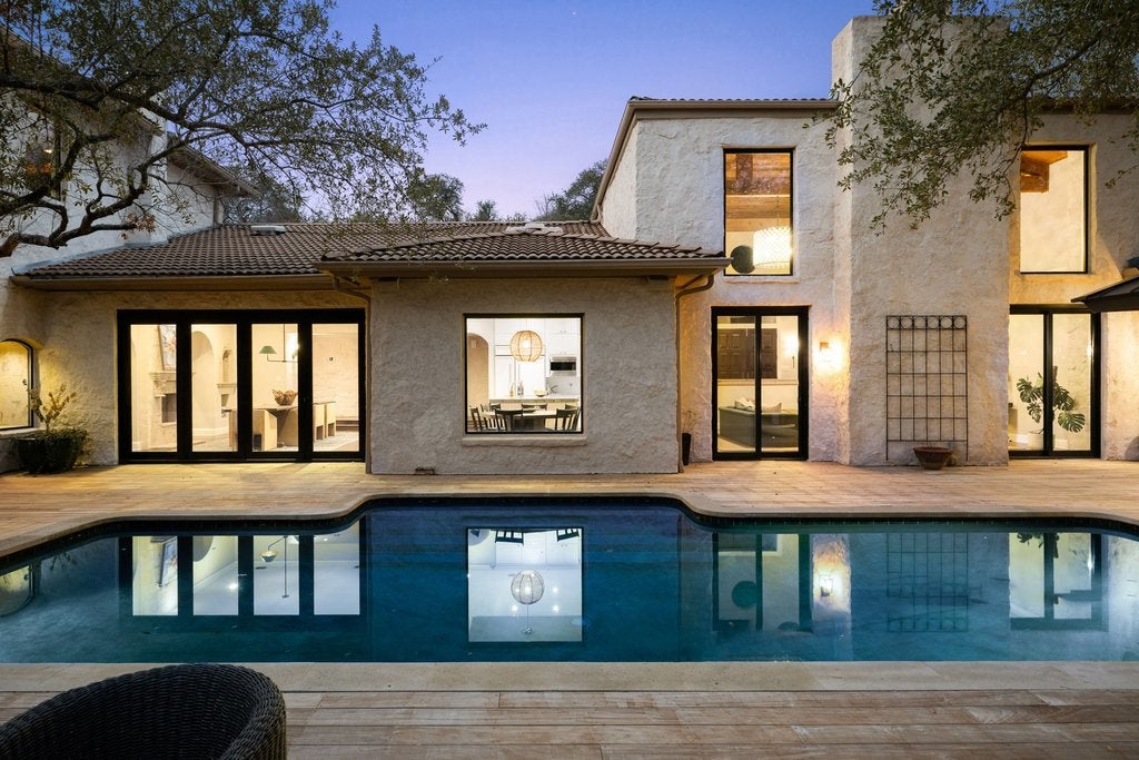 Set within the coveted Rob Roy neighborhood, 11 Ehrlich offers a thoughtfully designed Hill Country residence that blends timeless architectural character with effortless modern living. The home lives primarily on one level, creating an intuitive and comfortable flow ideal for both everyday life and entertaining. Warmth and craftsmanship define the interiors, where barrel ceilings, Cantera stone niches, and four fireplaces create a sense of depth and authenticity throughout. At the heart of the home, the main living room is anchored by exposed wood beams and opens seamlessly to views of the pool and expansive outdoor deck, inviting a true indoor outdoor lifestyle. The well appointed kitchen features Viking appliances, refrigerator drawers, custom cabinetry, granite countertops, and wine refrigeration, flowing naturally into the surrounding living and breakfast room. The primary suite offers a peaceful retreat, complete with an unexpected luxury…an indoor sauna. Outdoor living takes center stage with an expansive ipe deck surrounding a striking lagoon-style pool, and a fully equipped cabana with an outdoor kitchen and grill, perfect for hosting long evenings under the Texas sky. The grounds provide privacy and room to roam on the over 1.43 acres, and plenty of space for future enhancements like a pickleball court or sport court. A three-car garage offers ample storage, while two temperature-controlled flex spaces create versatility for a home gym, studio, workshop or nanny’s quarters. A private upstairs bedroom is thoughtfully positioned to provide ideal separation for guests, a quiet office, or a secluded retreat. Located within highly regarded Eanes ISD and just minutes from downtown Austin, this Rob Roy home delivers a rare combination of acreage, architectural character, and proximity to the city, an offering that feels both grounded and refined in one of Austin’s most established neighborhoods.