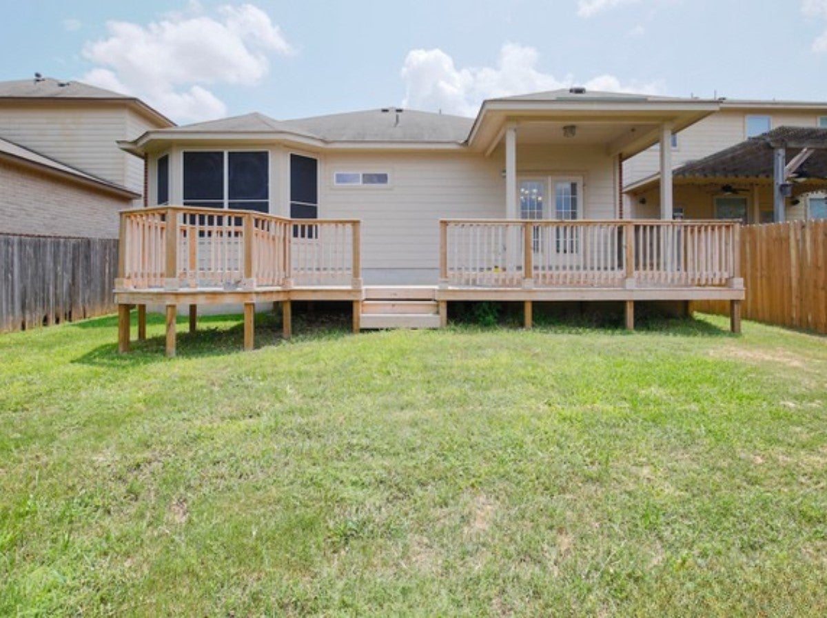 Welcome to 12127 Medina Mill, a beautifully renovated one story home in the highly desirable Alamo Ranch community. This thoughtfully updated residence offers an inviting open concept layout designed for both comfort and functionality. Featuring 3 spacious bedrooms and 2 full bathrooms, the home flows effortlessly from the living area into the dining space and kitchen, creating an ideal setting for everyday living and entertaining. Recent renovations elevate the home with refreshed finishes and modern touches, giving it a clean, updated feel while maintaining warmth and character. Large windows allow natural light to fill the space, enhancing the bright and airy atmosphere throughout. Step outside to a generously sized back deck overlooking a flat, usable yard shaded by mature trees, perfect for gatherings, relaxing evenings, or weekend barbecues. The addition of solar panels provides meaningful energy savings and long term efficiency while helping reduce monthly electric costs. Located just minutes from the community pool, clubhouse, sports courts, and elementary school, this home also offers convenient access to shopping, dining, and Loop 1604, making daily commutes and errands effortless. A thoughtfully updated home in a prime location with energy efficiency and lifestyle amenities, this is the kind of opportunity that does not come around often.