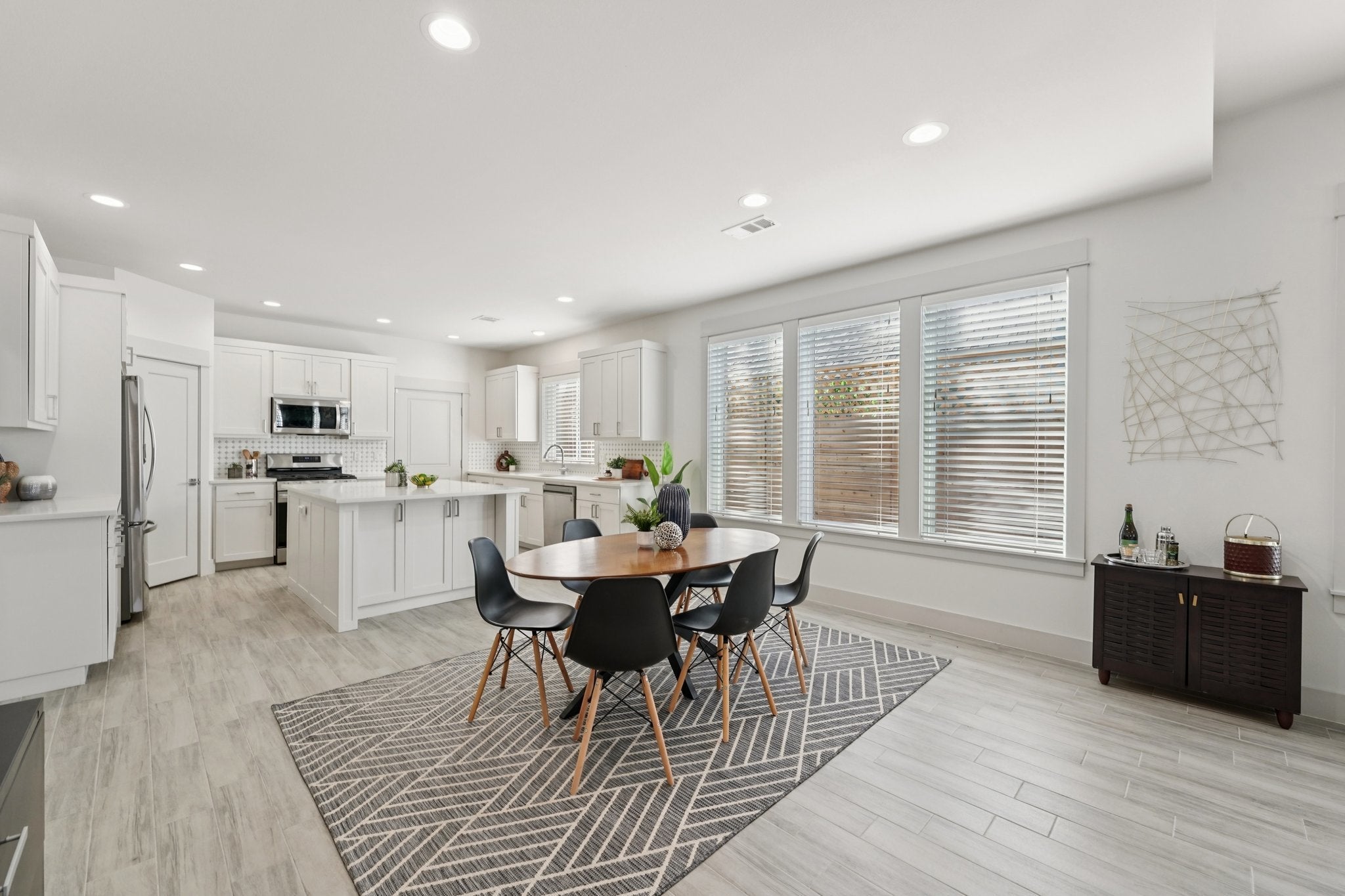 Modern design meets flexible living in this thoughtfully laid-out two-story home. The main level features an open living, kitchen, and dining area filled with bright natural light from well-placed windows. The kitchen is anchored by an extra-large island, complemented by stainless steel appliances, a tile backsplash, and a layout designed for both everyday living and entertaining. A main-floor primary bedroom offers convenient separation from the rest of the home and includes an en-suite bath with a walk-in shower and dual shower heads. A dedicated downstairs office adds versatility for remote work or focused use, next door to a full bathroom downstairs. Upstairs, three additional bedrooms are joined by a spacious loft ideal for a second living area, media room, or flex space. Upstairs bedrooms feature en-suite jack and jill bathroom, and an additional full bathroom, creating added privacy and functionality for guests, household members, or generational living. Outdoor spaces include a welcoming covered front porch and a covered back patio, along with a fully fenced yard that provides comfortable outdoor living space. A rear-facing attached garage is seamlessly integrated into the home’s layout. Ideally located near Downtown, UT Campus, Central Market North, and shopping and dining options along Lamar, Burnet and Guadalupe. Nearby is Seton, St. David's and the Heart Hospital. With easy access to neighborhood parks, Hancock Golf Course, local restaurants, coffee shops, everyday conveniences with connections to I-35, US-290, and Loop 1 (Mopac).