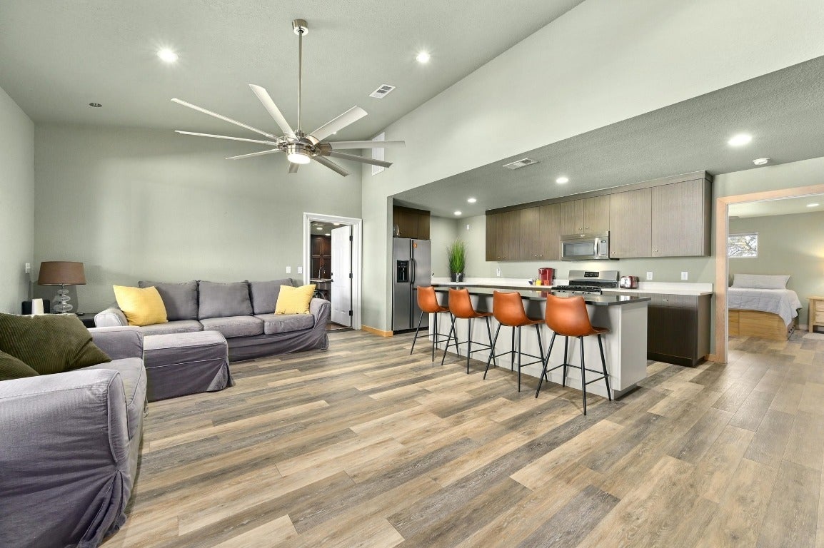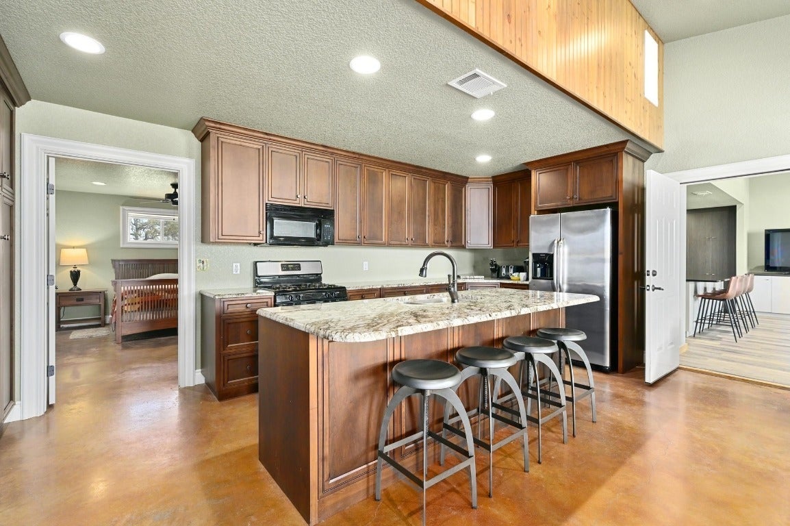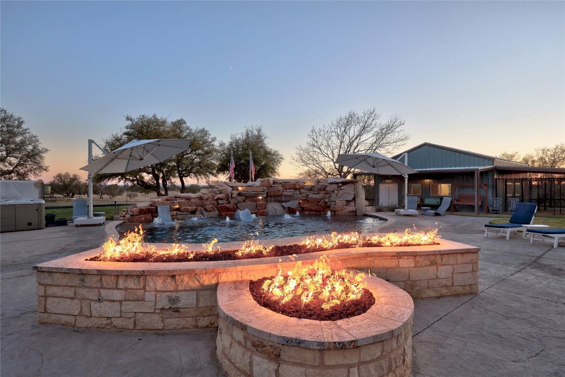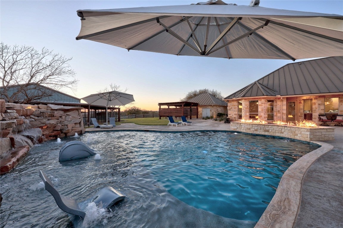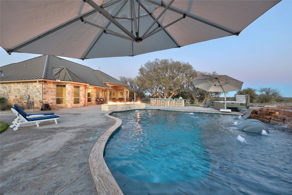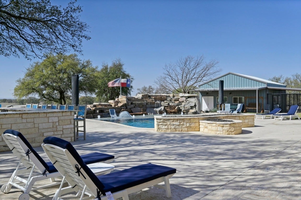 Welcome to the O&K Ranch, a luxury masterpiece beautifully positioned on 190 rolling acres in the heart of the Texas Hill Country. Perfect for those seeking a serene escape, this stunning property seamlessly blends sophisticated living with the rustic charm of the countryside. Click on the virtual tour link under the photos for a full exposé of this luxury estate. The main house boasts a kitchen that is the stuff of chef’s dreams! The freshly remodeled swimming pool is complete with a sun shelf and a breathtaking granite waterfall crafted from on-site stone. A Pentair Wi-Fi enabled system heats or cools the water, while the pool floor cleaning system keeps it beautiful. Don’t forget the dedicated 1,000-gallon propane tank for the pool heater, so you can enjoy year round swimming. The +/- 1600 sq ft guest lodge accommodations include 3 separate apartments that house 4 bedrooms and 4 baths – 2 apartments have complete kitchens. Perfect for plenty of visits from family and friends – or rent them as VRBO’s! The enclosed garage/entertainment area includes a commercial kitchen, guest bath, and walk in cooler. Let’s not forget the hunting and sports enthusiasts! This ranch is home to Indian Blackbuck Antelope and trophy Whitetail bucks brought in from South Texas as breeding stock, these beautiful animals enjoy water from four tanks and graze freely throughout the property. On-site, dual 200 gallon gas/diesel tanks fuel your ranch equipment needs and motorized fun! Rich in history, one section of the ranch features remnants of a granite quarry and a train depot once on the property. Whether you're dreaming of quiet country living, hosting friends and family in style, or cultivating a ranching lifestyle, O&K Ranch is a truly exceptional property that offers both luxury and functionality. Every detail has been thoughtfully upgraded for modern comfort. Schedule a private tour of this Hill Country retreat today—your perfect escape awaits at the O&K Ranch in Llano, Texas.
