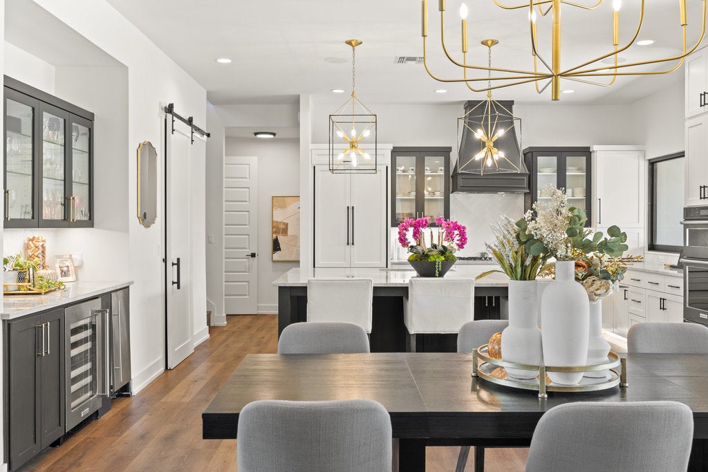 Nestled within the prestigious, guard-gated community of Flintrock Falls, 223 Golden Bear Drive captures the essence of refined Hill Country living. Flintrock Falls is one of Lakeway’s premier luxury enclaves—an exclusive neighborhood centered around a signature 18-hole golf course designed by Jack Nicklaus and Jack Nicklaus II. As part of The Hills Country Club complex, residents enjoy optional access to golf, tennis, fitness, and social amenities—all in a serene, master-planned setting minutes from Lake Travis, Bee Cave, and Austin. The neighborhood’s mandatory social membership, which provides access to club social events, dining facilities, and pool amenities, is $143 per month. This modern residence spans two levels with four bedrooms and four bathrooms. The open, light-filled interior supports both everyday living and entertaining. The spacious family room, anchored by a sleek fireplace, flows into a chef’s kitchen with custom cabinetry, stainless-steel appliances, and an oversized island ideal for gathering. A nearby media room with a built-in bar, wine fridge, and beer taps sets the stage for movie nights and game-day gatherings. The main-level primary suite serves as a private retreat with a spa-inspired bath and generous walk-in closet, while a second bedroom on the main floor offers flexibility for guests or multigenerational living. Upstairs, two additional bedrooms provide comfort and privacy. The upper balcony showcases sweeping Hill Country views and tranquil natural scenery. Designed for outdoor living, the covered patio—with built-in grill—overlooks a sparkling pool and spa, putting green, and fire pit, creating a vibrant backdrop for relaxation or entertaining. Ideally located a short walk from the Flintrock Clubhouse and zoned to acclaimed Lake Travis ISD schools, 223 Golden Bear Drive embodies effortless luxury and timeless Hill Country appeal.