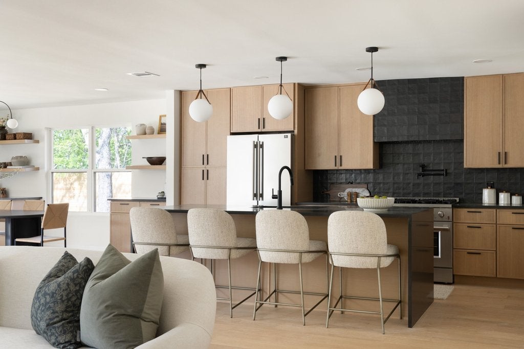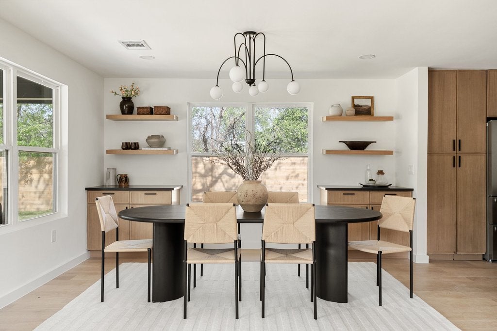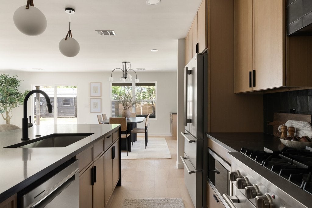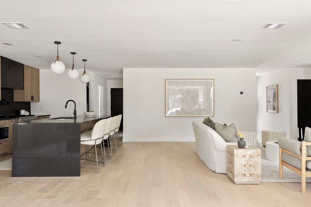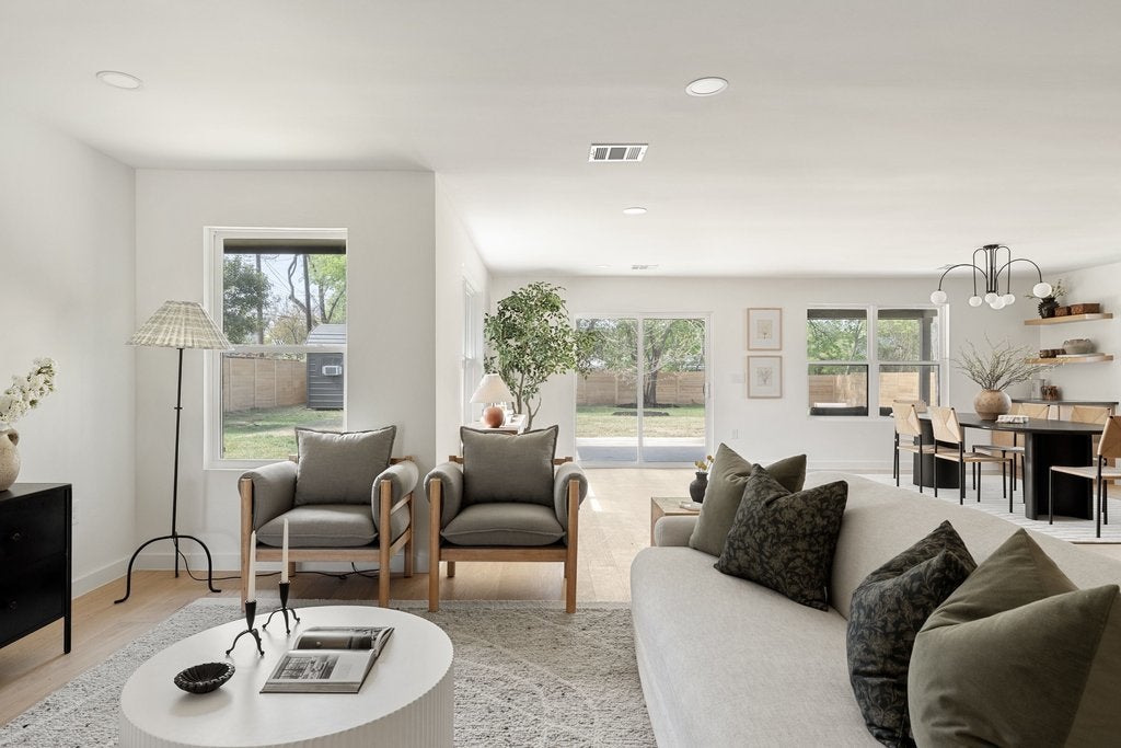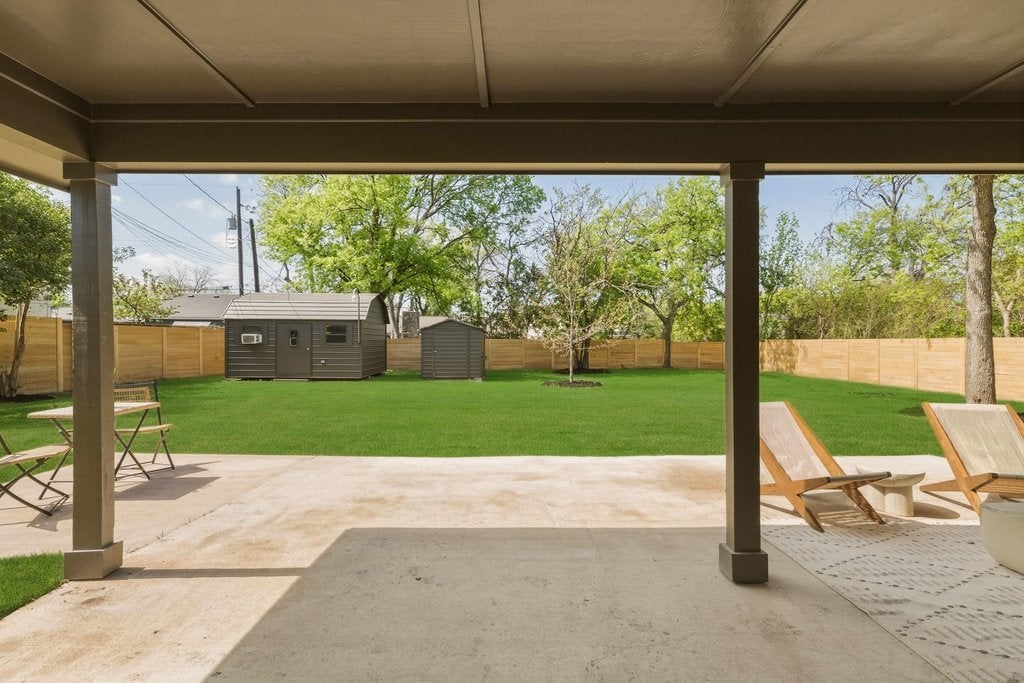 Gorgeous mid-century restoration in the Wooten neighborhood! :: Stunning kitchen boasting brand new oak cabinets, Cobalt quartz countertops w/ amazing cobalt waterfall island, Full appliance suite and custom secret door access to pantry + laundry room. :: Spacious primary bedroom w/amazing bathroom ensuite showcasing a beautiful walk-in shower. :: Split Floor plan w/ Three (3) full Bathrooms. :: New Oak Engineered wood floors throughout. :: Open & bright concept living with an abundance of natural lighting. :: Custom designer tiles and fixtures. :: Fantastic backyard with covered patio, new sod, fence and two sheds. :: Fully Permitted System upgrades include all new PVC plumbing system, new water lines, sod & irrigation, full rewire with Romex, new HVAC system, Black/White Vinyl Windows, tankless water heater, new 30 year onyx architectural roof & new wood fence. :: Minutes to Domain, Whole Foods, Arboretum and Alamo Drafthouse.