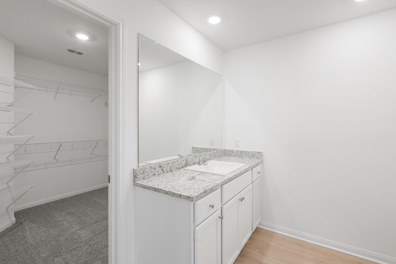 The single-story Medina plan includes four spacious bedrooms, two full baths, open-concept living area, chef-ready kitchen, and a luxurious master suite. The incredible layout paired with the luxury upgrades, make the Medina floor plan a great choice! The master retreat is designed for ultimate relaxation with a generous walk-in closet offering ample storage and effortless organization. The serene bedroom flows seamlessly into a spa-like bathroom, complete with sleek modern fixtures and elegant finishes. You will also enjoy energy-efficient Whirlpool® kitchen appliances, elegant wood cabinetry with crown molding, a Wi-Fi-enabled garage door opener, and a programmable thermostat—all included at no additional cost. These high-quality features not only enhance the home’s design and comfort but also add lasting value.