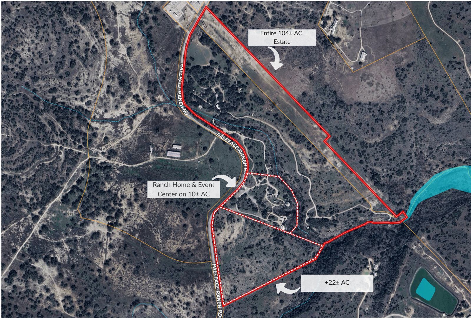 Located just 45 minutes from downtown Austin, 20 minutes from Hill Country Galleria/Bee Cave, and 30 minutes from Horseshoe Bay Resort and Marble Falls - home to a 6,000 ft airstrip - this property offers a private Hill Country setting with convenient access to Austin's vibrant amenities. *Multiple acreage options available to fit your unique vision. The gated approximately 22-acre property sits next to the prestigious Austin Golf Club and enjoys a prime location adjacent to Thomas Ranch - a thoughtfully planned high-end community featuring premium retailers, dining, cultural experiences, and commercial spaces, and Loraloma - an Areté Collective development celebrated for its world-class design, sustainability, and lifestyle-driven amenities. This exceptional area is also home to renowned vineyards, Lake Travis, the upcoming Canyon Ranch luxury spa resort, and Travis Club, Austin's Newest lake community. Located less than a mile from Highway 71, the property combines a secluded, natural feel with easy access to some of Central Texas's most exciting current and future destinations. The land is level, usable, buildable, and entirely out of the floodplain. Acreage options include: Ranch Home and Venue on approximately 30 acres, Ranch Home and Venue on approximately 10 acres, 22 acres with land only, or the entire 104-acre estate. See Agent for more details.