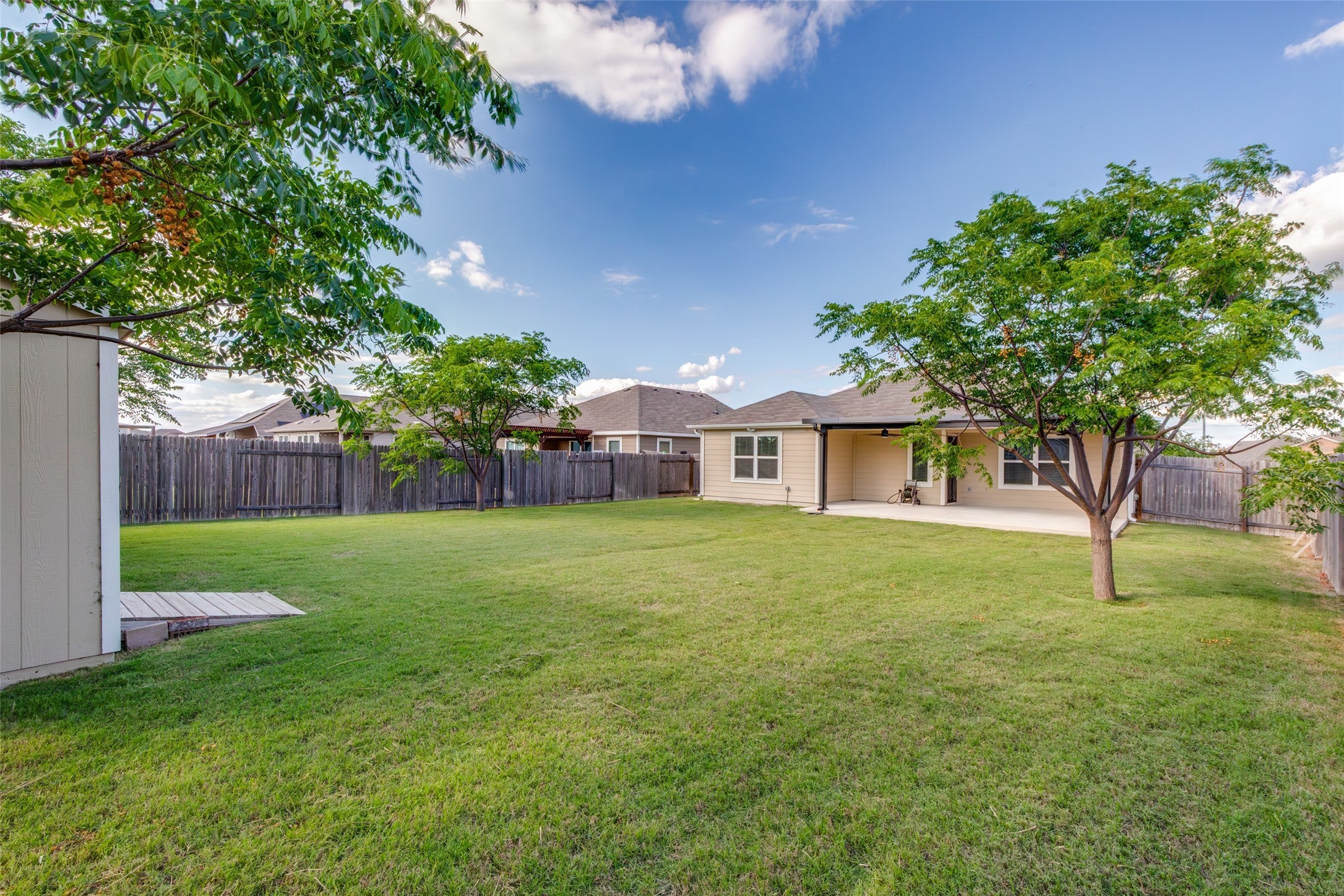 REFRIGERATOR AND WASHER/DRYER INCLUDED IN THE LEASE! Beautiful single-story Driskill floor plan in the heart of Hutto! This modern 3-bedroom, 2-bath home features an open layout with a family room, flex space, and dining area perfect for entertaining or everyday living. The kitchen boasts granite countertops, tile backsplash, and all new stainless steel appliances, flowing seamlessly into the spacious living areas filled with natural light. The primary suite offers a private retreat with a walk-in closet and ensuite bath. Enjoy outdoor living on the covered back patio overlooking a lush lawn with mature trees, a full sprinkler system, and a built-in shed for extra storage. Situated near top-rated Hutto ISD schools, convenient shopping and dining all around. Minutes to Kalahari Water Park Resort. This move-in ready home offers all the features today's renters are looking for and combines modern comfort and small-town charm.