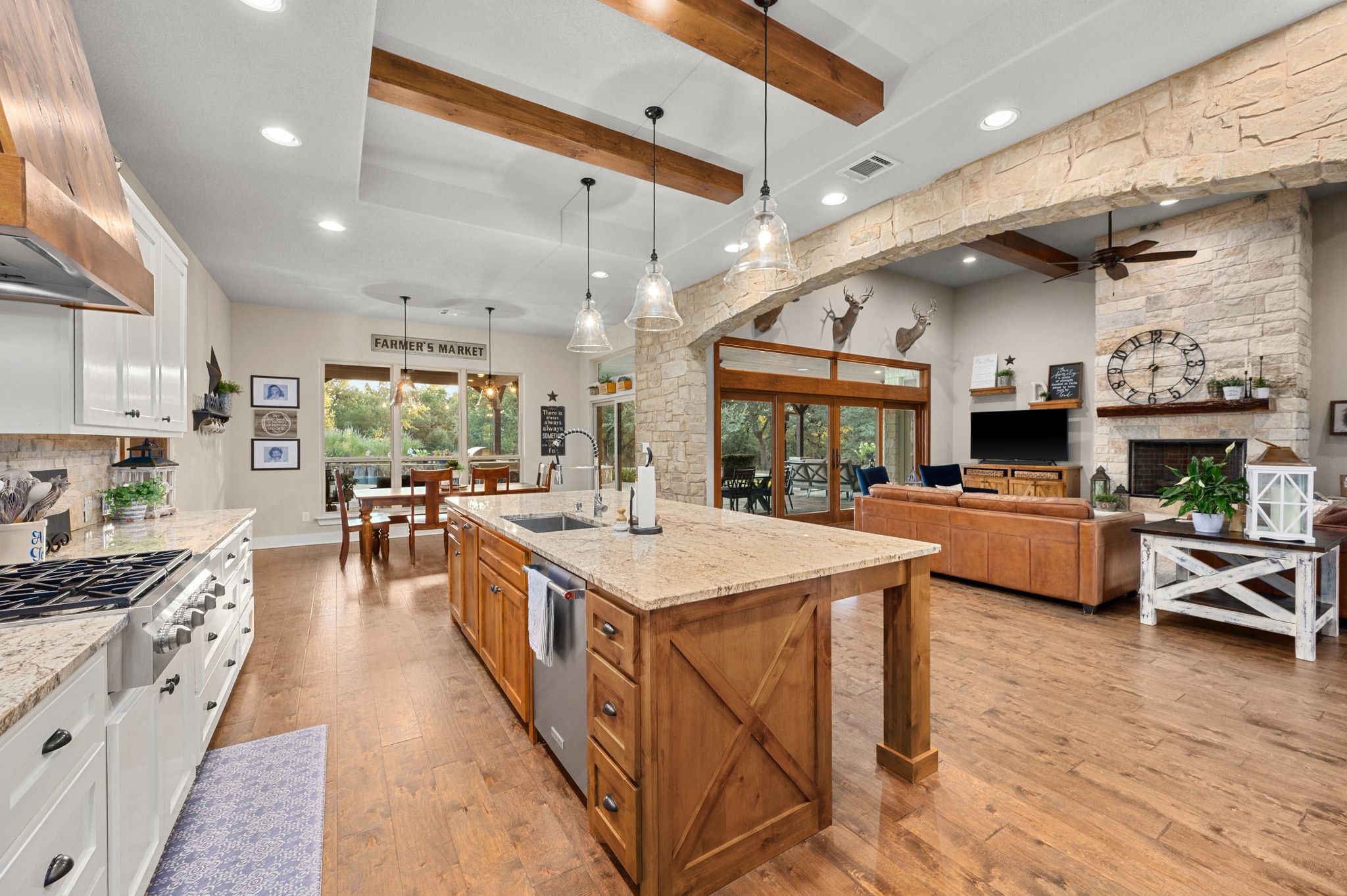- Family Room, Gas, Living Room, Outside, Bedroom, Primary Bedroom, Stone