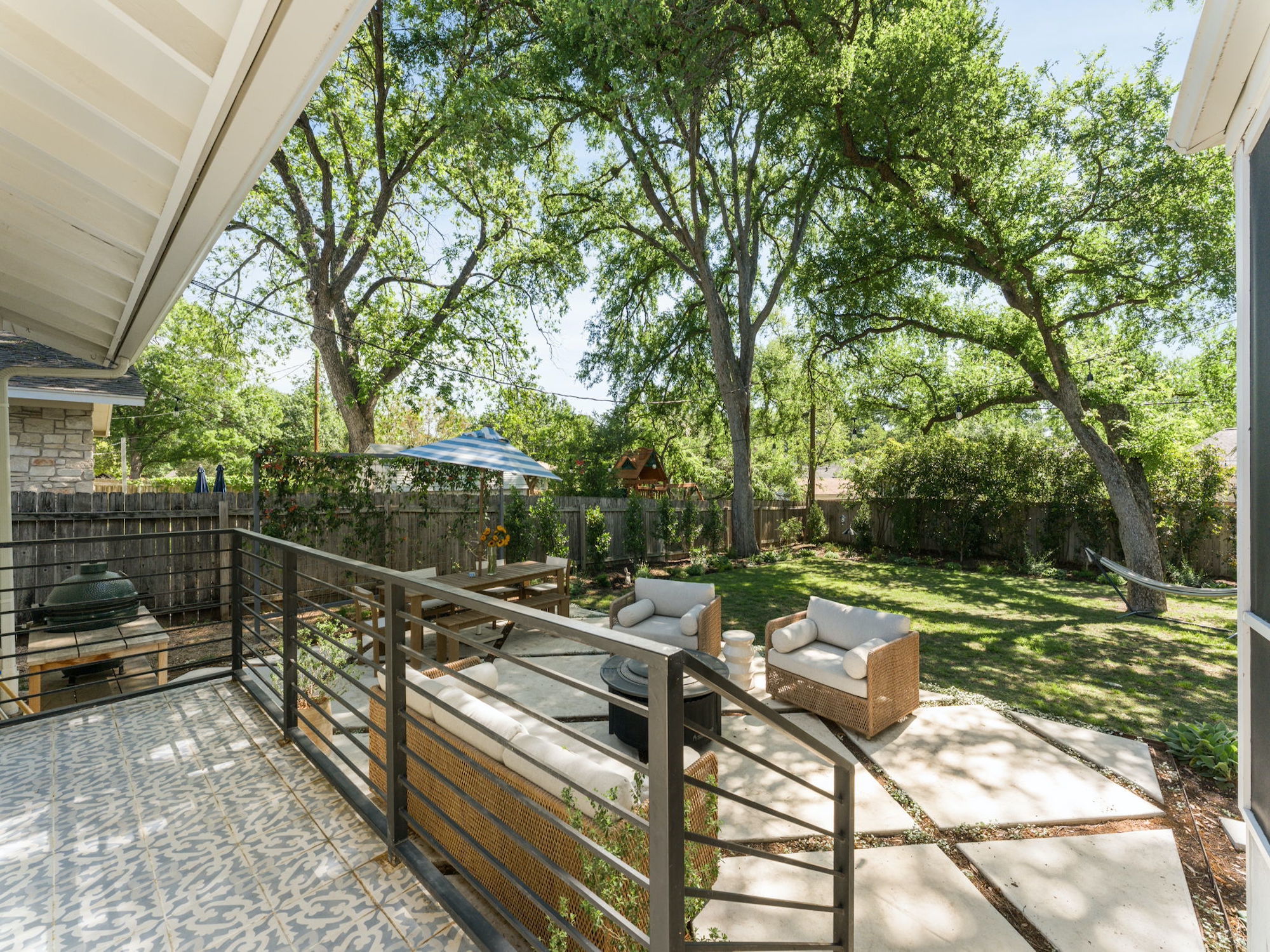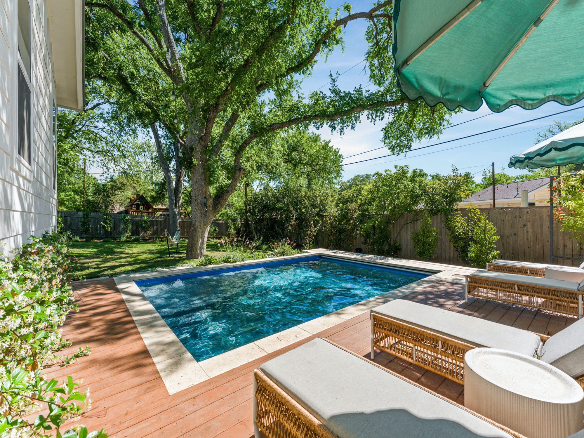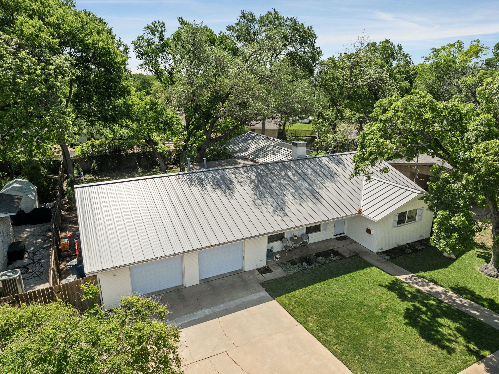 Set on a quiet, interior tree-lined street in the heart of Allandale, this charming 1960s home has been thoughtfully remodeled and expanded. A comprehensive 2022 renovation introduced a spacious new primary suite, wide-plank wood flooring throughout, and beautifully updated kitchen and living areas, where a lofted ceiling adds both height and character. Behind the scenes, significant system upgrades include a tankless water heater, new HVAC, and a standing seam metal roof (2025), offering peace of mind for years to come. Step outside to the most picturesque screened-in porch overlooking a backyard shaded by towering oak trees. The outdoor space features a pool with heating and cooling capabilities, an automatic cover for added safety, and beautifully refreshed landscaping with Zoysia Zorro turf, a paver patio, cedar pool deck, irrigation system, and new gutters (2023–2024) — creating a truly turnkey backyard retreat. The property also includes architectural plans for a future expansion above the garage, offering the opportunity to add a playroom and two additional bedrooms. Located within Austin ISD and just moments from neighborhood favorites like Chez Zee American Bistro, Russell’s Bakery & Coffee, Yamas Greek Kitchen + Bar, and the vibrant shops and dining along Burnet Road, this home offers the very best of Allandale living.