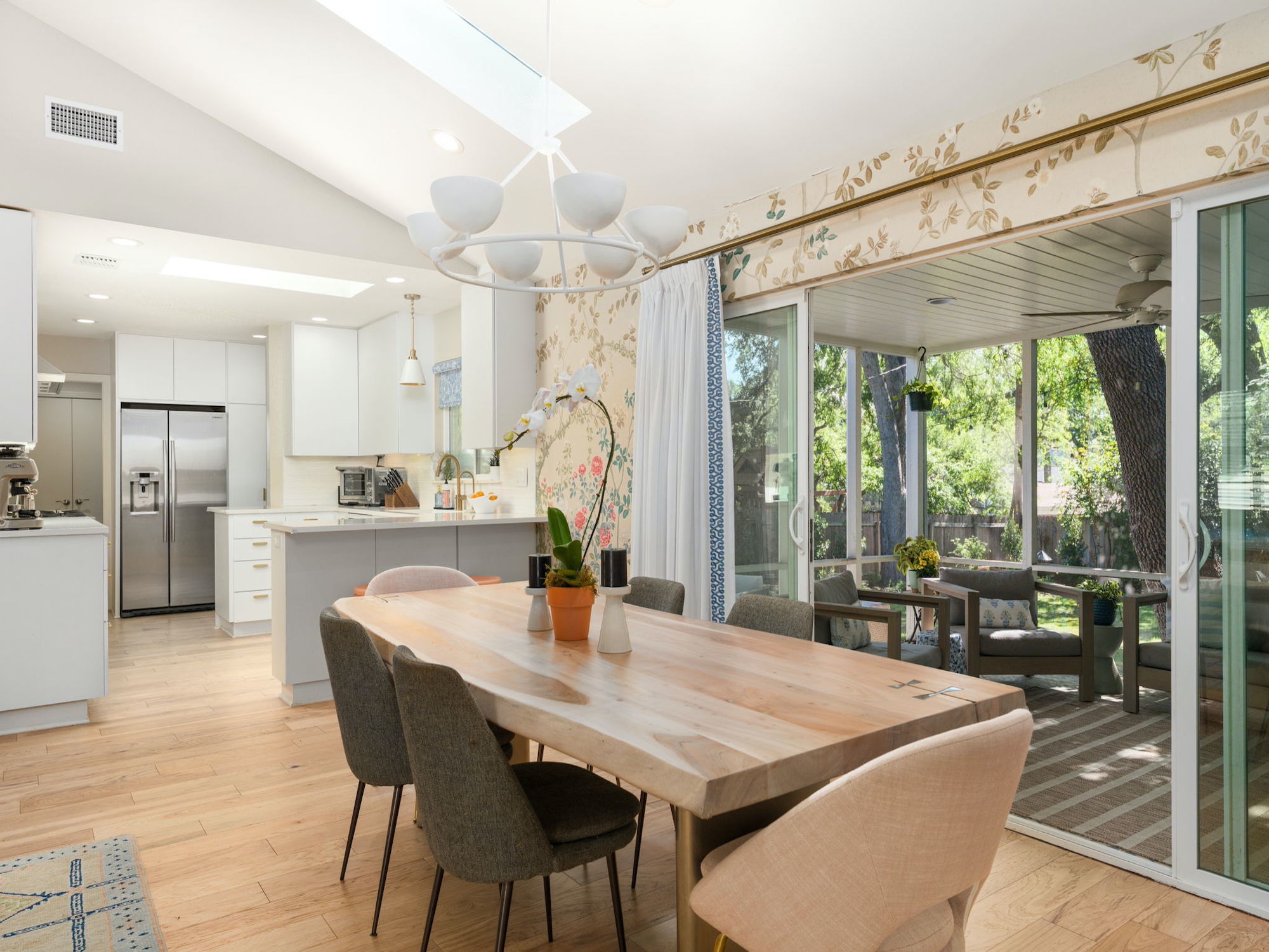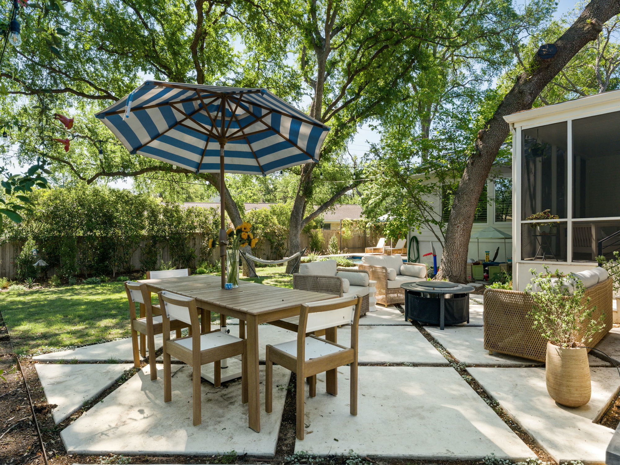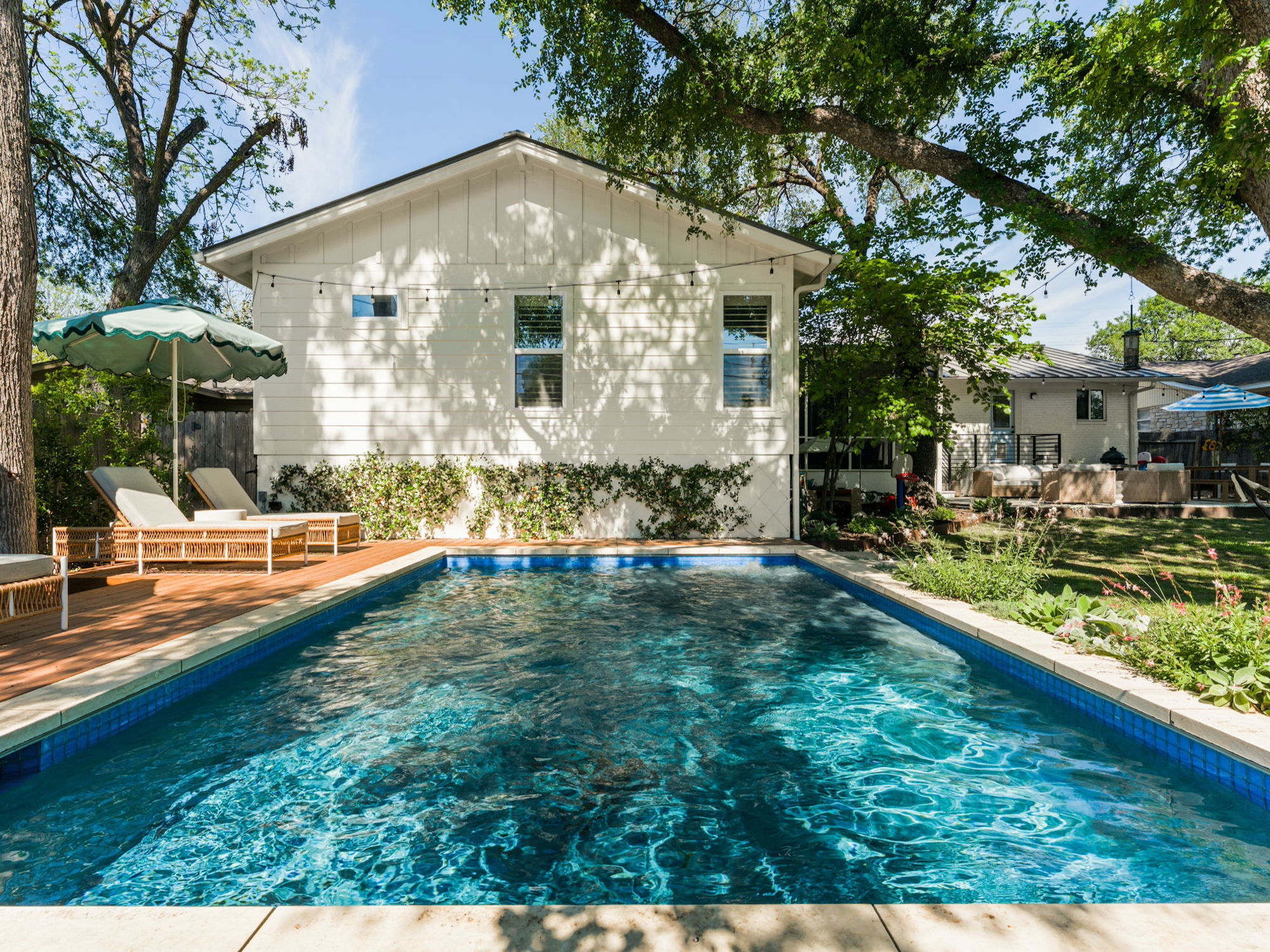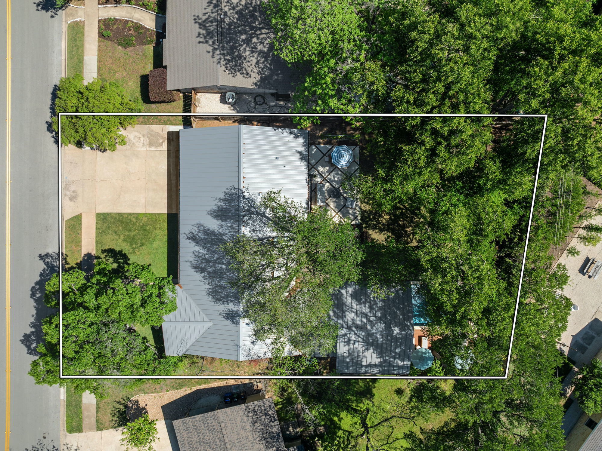 Set on a quiet, interior tree-lined street in the heart of Allandale, this charming 1960s home has been thoughtfully remodeled and expanded. A comprehensive 2022 renovation introduced a spacious new primary suite, wide-plank wood flooring throughout, and beautifully updated kitchen and living areas, where a lofted ceiling adds both height and character. Behind the scenes, significant system upgrades include a tankless water heater, new HVAC, and a standing seam metal roof (2025), offering peace of mind for years to come. Step outside to the most picturesque screened-in porch overlooking a backyard shaded by towering oak trees. The outdoor space features a pool with heating and cooling capabilities, an automatic cover for added safety, and beautifully refreshed landscaping with Zoysia Zorro turf, a paver patio, cedar pool deck, irrigation system, and new gutters (2023–2024) — creating a truly turnkey backyard retreat. The property also includes architectural plans for a future expansion above the garage, offering the opportunity to add a playroom and two additional bedrooms. Located within Austin ISD and just moments from neighborhood favorites like Chez Zee American Bistro, Russell’s Bakery & Coffee, Yamas Greek Kitchen + Bar, and the vibrant shops and dining along Burnet Road, this home offers the very best of Allandale living.