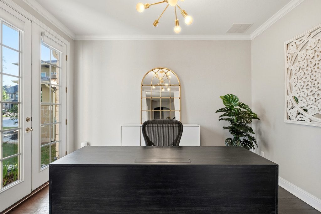 Experience unrivaled luxury within the secluded gates of Cap Rock at Crystal Falls. This sophisticated retreat offers a meticulously designed floor plan featuring a private study, a cinematic media room, and a versatile loft game area. The heart of the home is a gourmet chef’s kitchen boasting crisp white cabinetry, a contrasting charcoal island, and professional-grade stainless appliances. Even the two-and-a-half-car garage is a showpiece, featuring high-end epoxy flooring, custom storage, and dedicated space perfect for your golf cart or family bikes. Outside, the entertainer’s backyard is anchored by a shimmering pool and spa, a fully equipped kitchen, and a grand covered patio. The professionally landscaped grounds include a curated cactus garden and irrigated flower beds, offering rare, private access directly to the golf course. Conclude your evenings on the massive upper balcony, a premier vantage point for hosting guests against the backdrop of breathtaking Hill Country sunsets!