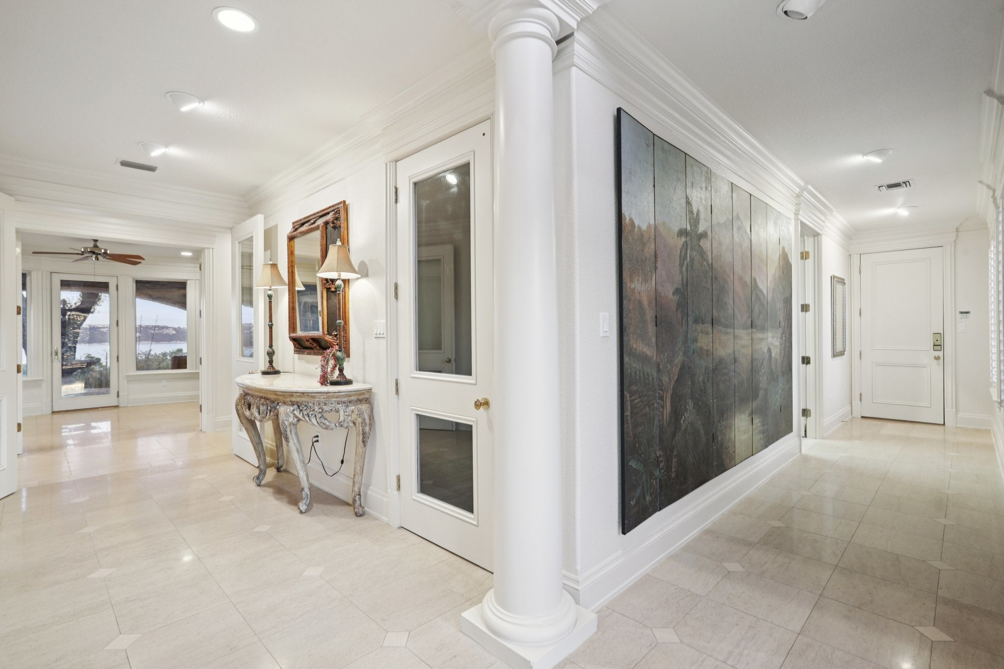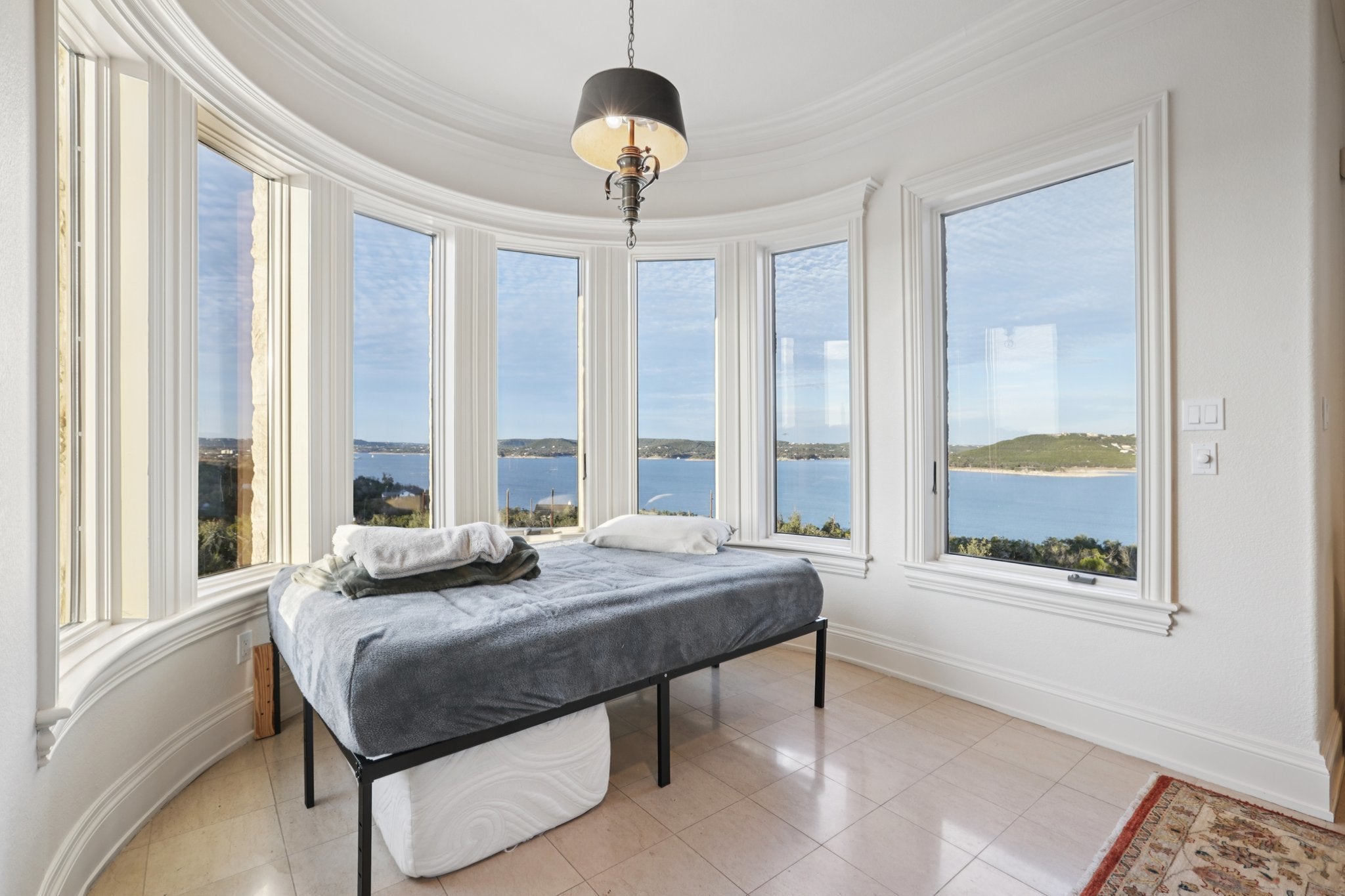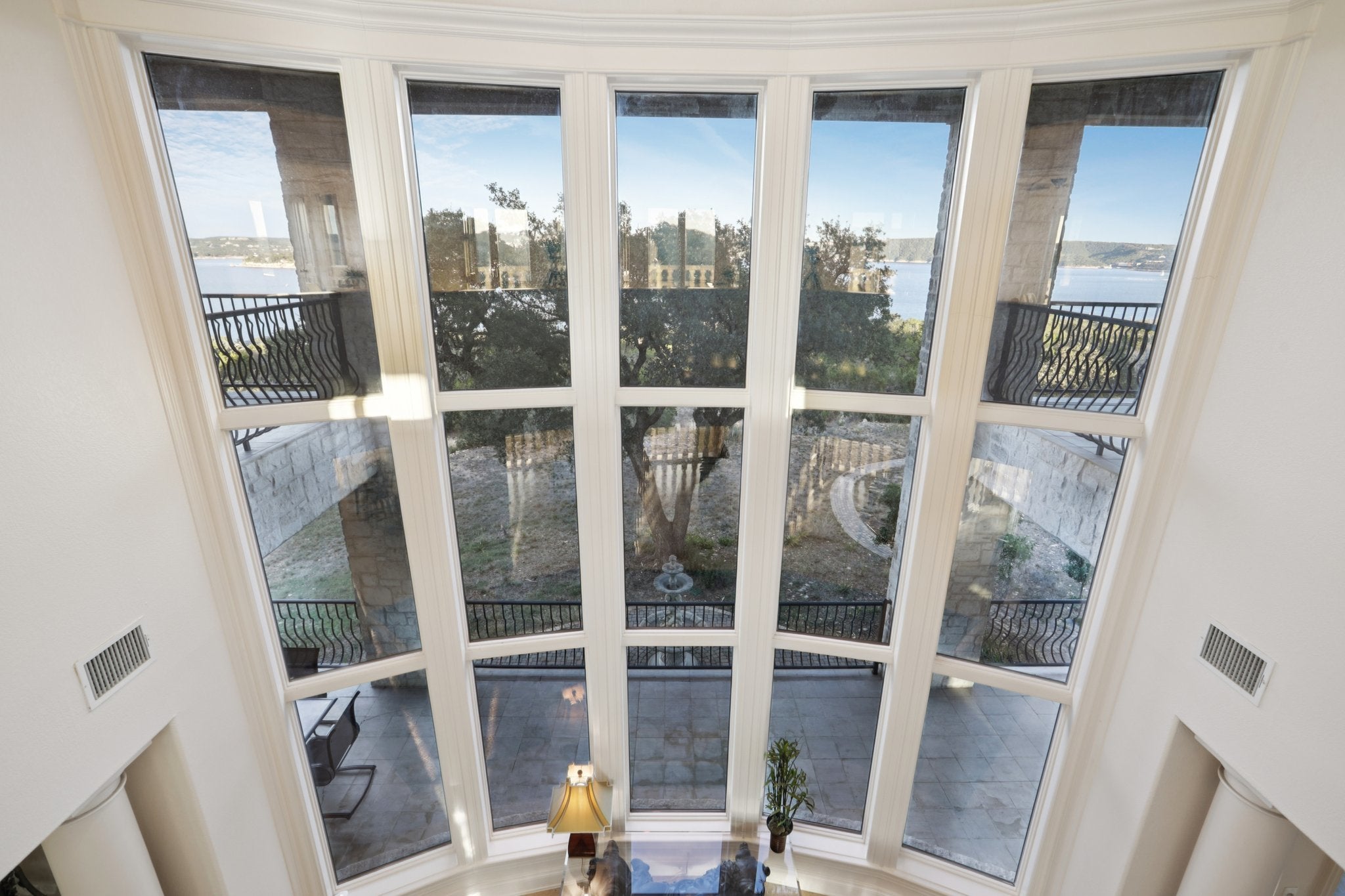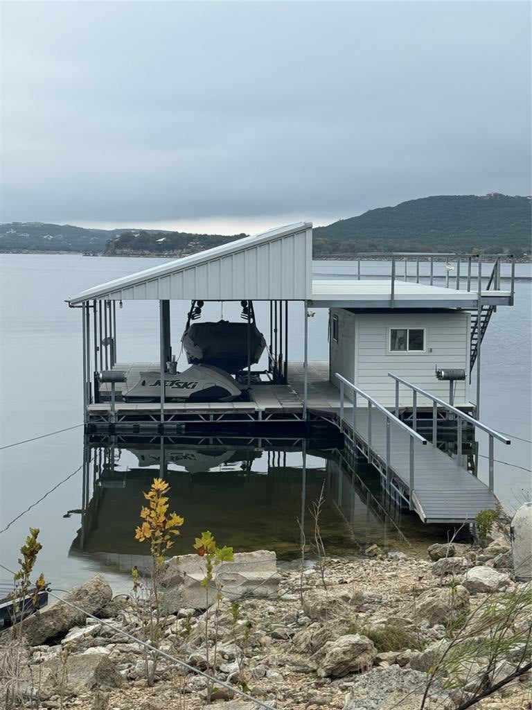 Stunning French Colonial style waterfront estate/compound. Fully gated private property sitting on a 6.1 acre hilltop with arguably the best lake view in all of lake south, panoramic views spanning from Jonestown to the main basin. 2 gated access for 6.1 acre hilltop parcel with direct access to additional 2.36 acre waterfront lot (lot not included in purchase price, but may be sold alongside subject property) running north towards water's edge and 2 story newly built boat dock with boat slip/lift, 2 jetski slips, enclosed lounge area, lower level lounge area, and upper level tanning deck.