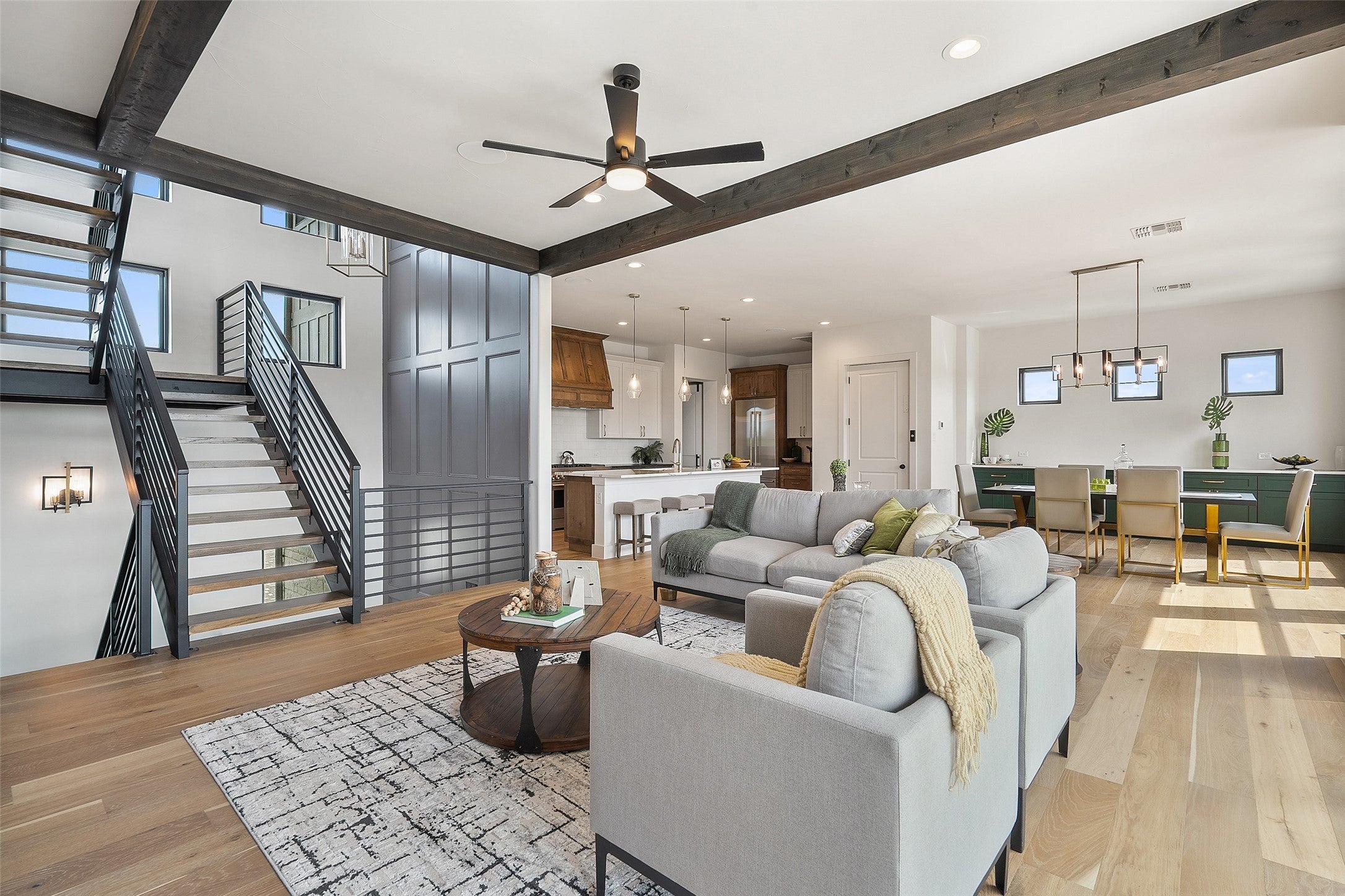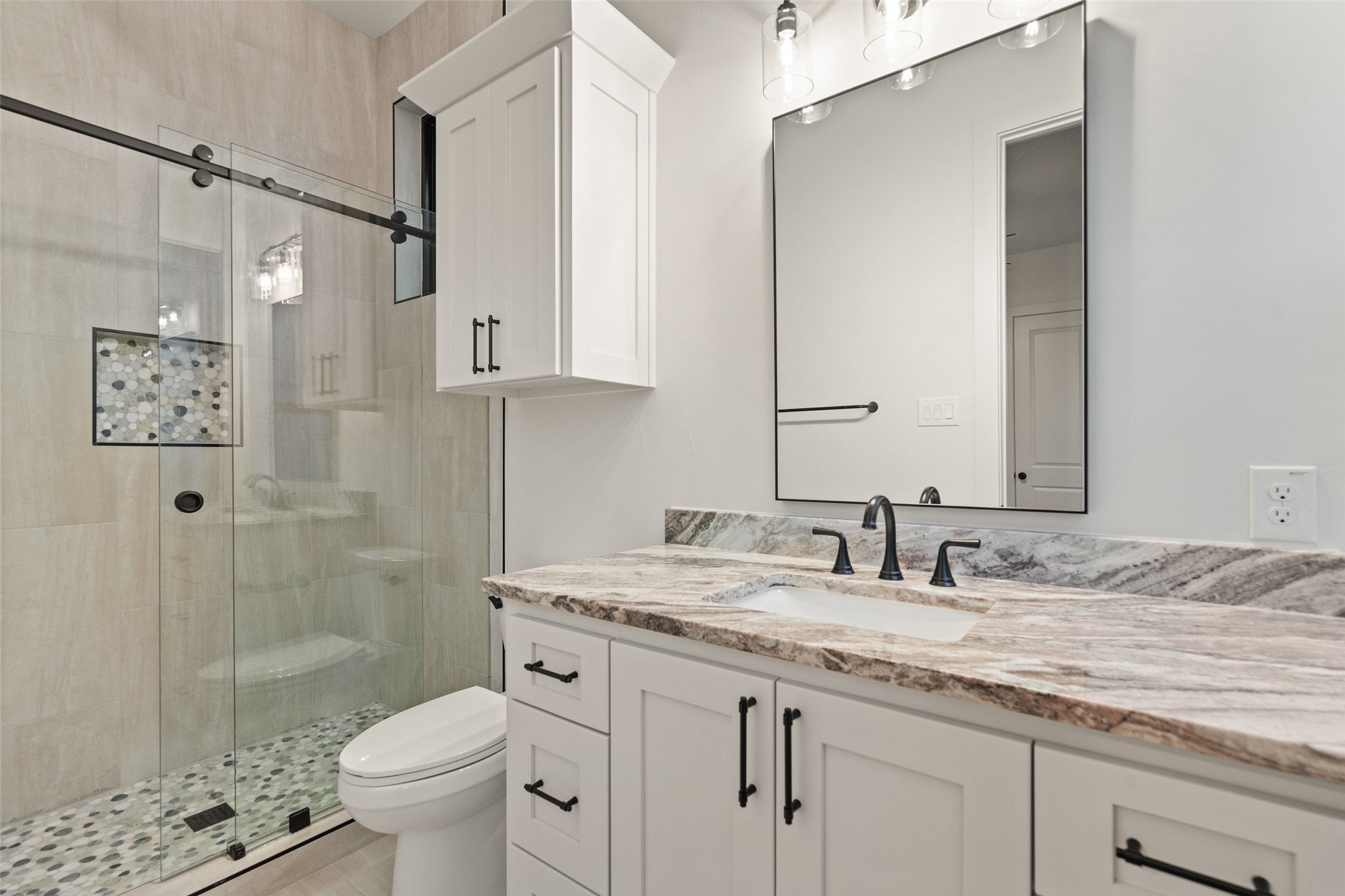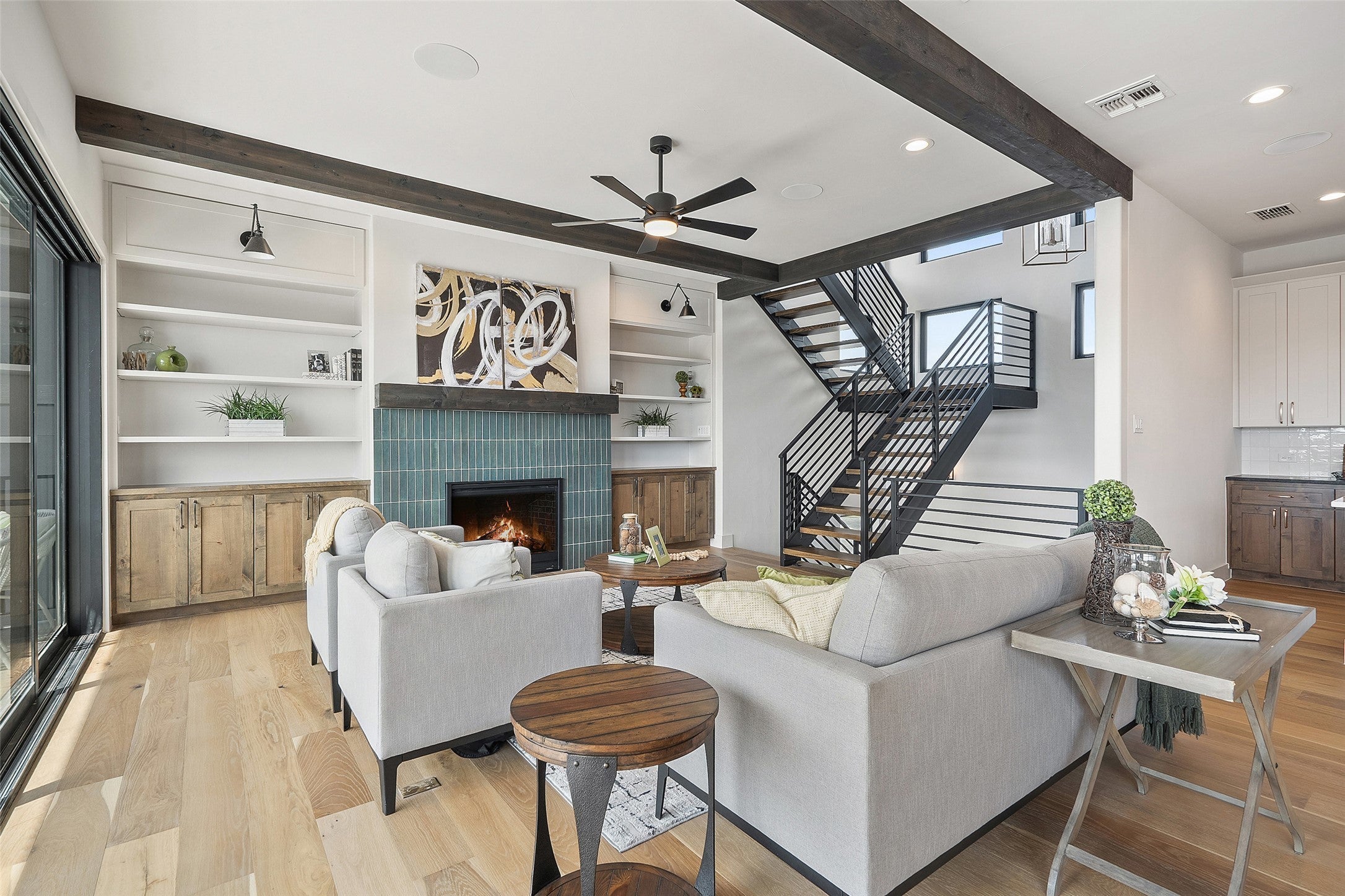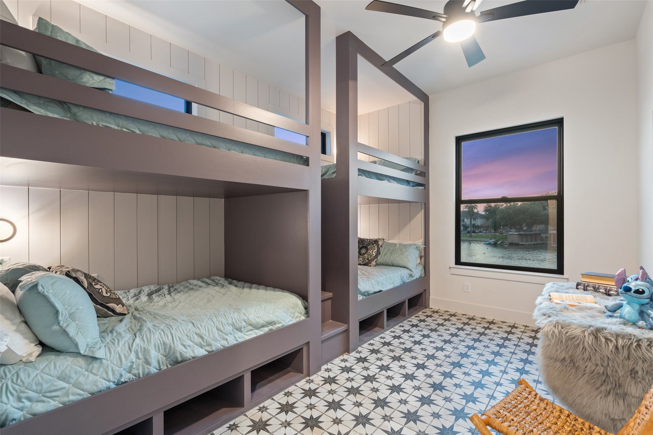 New construction on Lake LBJ by Keith Wing Custom Builders. This waterfront home pairs modern lake living with high-quality construction and a layout built for entertaining. The outdoor setup centers around the water. A spacious lakeside deck provides wide views of Lake LBJ and easy access down to the private boathouse with electric boat lift and dual jet ski slips. Just steps from the water, a heated pool and spa create a resort-style setting along the shoreline. Inside, the main living area is designed to keep the lake views front and center. A gas fireplace with custom built-ins, integrated sound system, and large windows overlooking the water create a comfortable space for gathering. The kitchen features Michael Edwards Signature custom cabinetry, marble countertops, JennAir appliances, and a large center island, combining high-end finishes with everyday function. Additional spaces add flexibility for guests and entertaining, including a bunk room with built-in beds and lake views and a secondary family room with balcony access that extends the living space outdoors. The top-level owner’s suite, accessible by residential elevator, offers a private retreat with French doors opening to elevated views across Lake LBJ. Located minutes from a public boat ramp and lakeside park, this property delivers new construction, premium finishes, and a fully equipped Lake LBJ waterfront lifestyle.