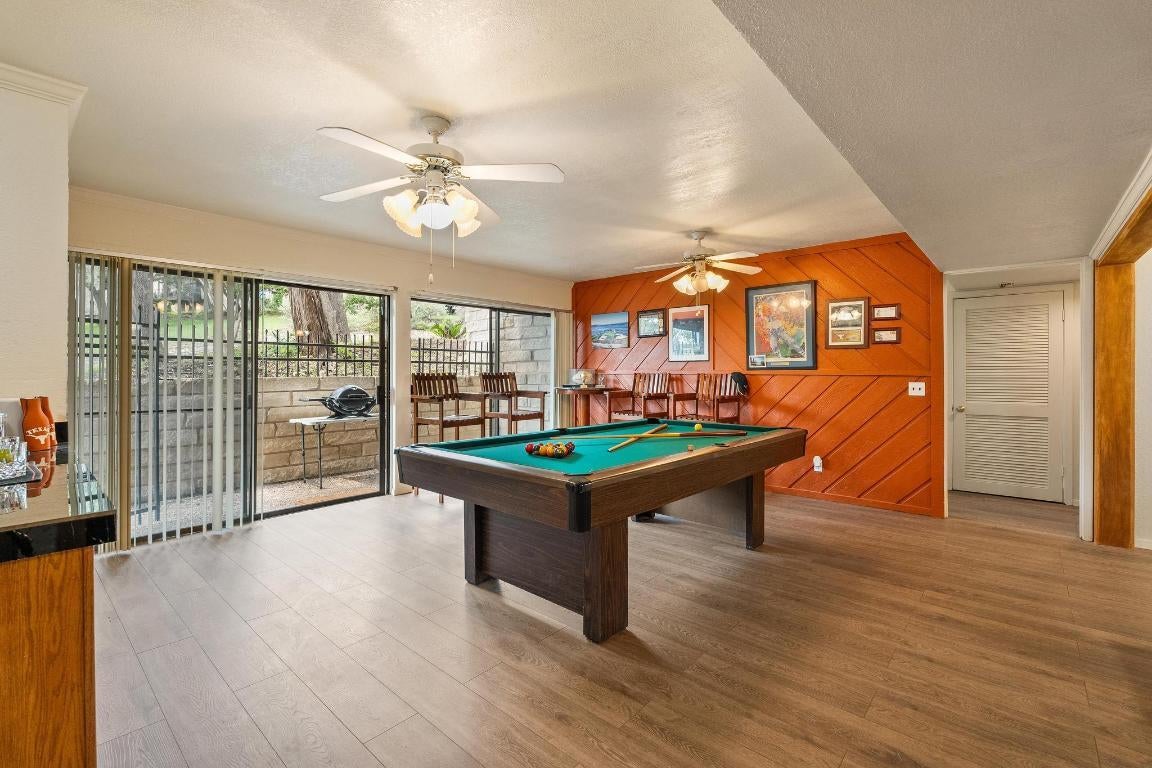 The Ultimate Cat Mountain "Lock-and-Leave" Perched atop one of Austin’s highest peaks, this Cat Mountain Villa is a classic in split-level design, offering the panoramic Hill Country vistas that define the 78731 lifestyle. Tailored for the modern professional or frequent traveler, this "lock-and-leave" residence prioritizes outdoor living without the maintenance of a traditional lawn. With four private balconies and a secluded side patio, the transition from your morning coffee to the sunset over the canyon is effortless. Inside, the villa adapts to your high-performance lifestyle: * The Entertainment Hub: The lower level is dedicated to hosting, featuring a full wet bar and a spacious lounge currently home to a pool table (conveyable upon request). * Architectural Grandeur: The main floor centers around a floor-to-ceiling fireplace that serves as a stunning focal point, separating the expansive living and dining areas while maintaining a bright, open flow. * The Chef’s Workspace: A kitchen designed for efficiency and style, complete with a butler’s pantry, built-in appliances, and abundant cabinetry. * Remote Work-Ready: Ascend to the upper level to find a dedicated office nook * Primary Sanctuary: The owner's suite is a true retreat, offering a spacious seating area, plantation shutters, and a spa-inspired ensuite with a free-standing soaking tub and direct access to a fenced-in patio. Upgraded for Peace of Mind Investment-grade updates ensure low-maintenance living, including a metal roof, a brand-new HVAC unit (2026), and a second unit replaced just a year ago. Community & Location Beyond your door, the Cat Mountain Villas HOA offers resort-style amenities including a clubhouse, pool, and tennis courts. You are minutes from top-rated schools like Doss Elementary and Anderson High, and just a short drive to the tech corridors of The Domain or the dining of Central Austin and yet only a 10 minute drive from Downtown or 5 minutes from Bull Creek trails.