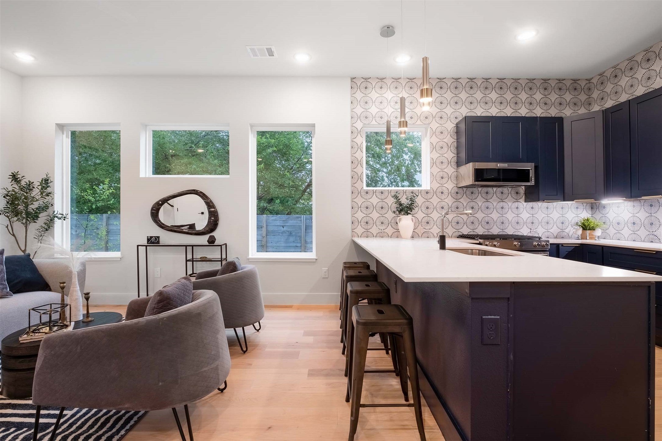 Experience the pinnacle of thoughtful design in this enchanting 1100-square-foot residence, a refreshing departure from the ordinary new-build homes. Meticulously planned with Ducote Design, this home effortlessly marries functionality with heartwarming aesthetics, featuring an abundance of windows that bathe each room in the warm embrace of natural light. Inside, the space is adorned with exquisite hardwood floors and captivating tilework, complemented by lighting fixtures that elevate the overall ambiance. The kitchen is a true masterpiece and is a visual delight with its captivating tile-clad walls. Furthermore, a one-of-a-kind powder room boasts a fanciful mural handcrafted by the talented local artist, Anne Ducote. Despite its modest square footage, you'll be pleasantly surprised to find that this residence lives larger than you might expect, complete with a covered patio, a delightful backyard retreat, and the added convenience of an attached garage. Upstairs, two bedrooms await, each with its own full bath, drenched in an abundance of natural light that adds to the home's inviting charm. Cool and contemporary tiles grace the bathrooms, completing this picture-perfect living space. This tree-covered neighborhood is a haven for friendly, welcoming residents who cherish their neighborhood. Just a short 10-minute drive from downtown, it offers the perfect blend of an easy-going residential environment and quick access to the vibrant heart of Austin.