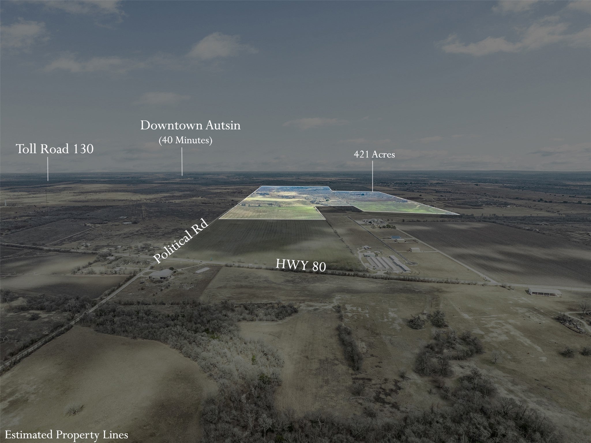 Large-scale development opportunity in Lockhart positioned just 1/2 mile from SH 130 with over 12,000 feet of frontage along Highway 80 and Political Road. Located within the Austin/San Antonio growth corridor and outside city limits, this prime Caldwell County site offers flexibility for residential, commercial, industrial, data center, or mixed-use development. The property is approximately 900 acres and is nearing full entitlement. Seller is willing to subdivide. Highlights include approved MUD, an approved wastewater treatment plant, and water service through Tri-Community Water CCN with confirmed initial connections and planned expansion capacity. A development agreement with Caldwell County is pending execution. The site is located within a designated Opportunity Zone and may present eligibility for Opportunity Zone investment structures. Based on location and job creation potential, the project may also be well positioned for EB-5 capital consideration, subject to buyer verification and program compliance. Improvements include a large primary residence, barn, cattle pens, and multiple ponds, allowing for interim agricultural use, investment hold flexibility, or phased development planning. Large, contiguous tracts of this scale are increasingly limited within the greater Austin market! Reach out for more information.