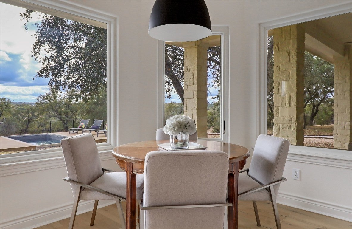Welcome to your private Hill Country retreat at 1100 Norwood Road in Dripping Springs. Thoughtfully updated and truly move-in ready, this beautifully refreshed single-level home offers the perfect blend of comfort, privacy, and versatility, set on an expansive 10.18-acre property in the heart of the Texas Hill Country. The main residence spans 2,734 square feet and features four bedrooms, three bathrooms, a dedicated office, and is designed with functionality and ease of living in mind. Recent updates include brand-new oak hardwood floors, fresh interior paint, a newly updated kitchen, and renovated bathrooms throughout. The open floor plan seamlessly connects the family and living rooms and is anchored by a spacious, renovated eat-in kitchen showcasing stylish new countertops, a modern backsplash, updated hardware, and generous pantry storage—ideal for both everyday living and entertaining. A cozy fireplace adds warmth and character to the main living area, while striking iron entry doors create a bold architectural statement. The primary suite serves as a true retreat, complete with two walk-in closets and a spa-like, newly renovated bathroom featuring a pedestal soaking tub and walk-in shower designed for relaxation and comfort. Outdoor living is where this property truly shines. Enjoy a private pool with newly built decking, perfect for entertaining, unwinding, or simply taking in the serene Hill Country surroundings. The expansive acreage offers endless opportunities for recreation, gardening, animals, or enjoying wide-open Texas views. A barn/workshop adds valuable flexibility for hobbies, storage, or creative pursuits. Adding to the property’s exceptional versatility are three modern 1-bed/1-bath container homes, on a separate septic system, ideal for guest accommodations, rental income, or multi-generational living. This rare offering combines privacy, thoughtful updates, and an exceptional Hill Country property with room to live, expand, and create.