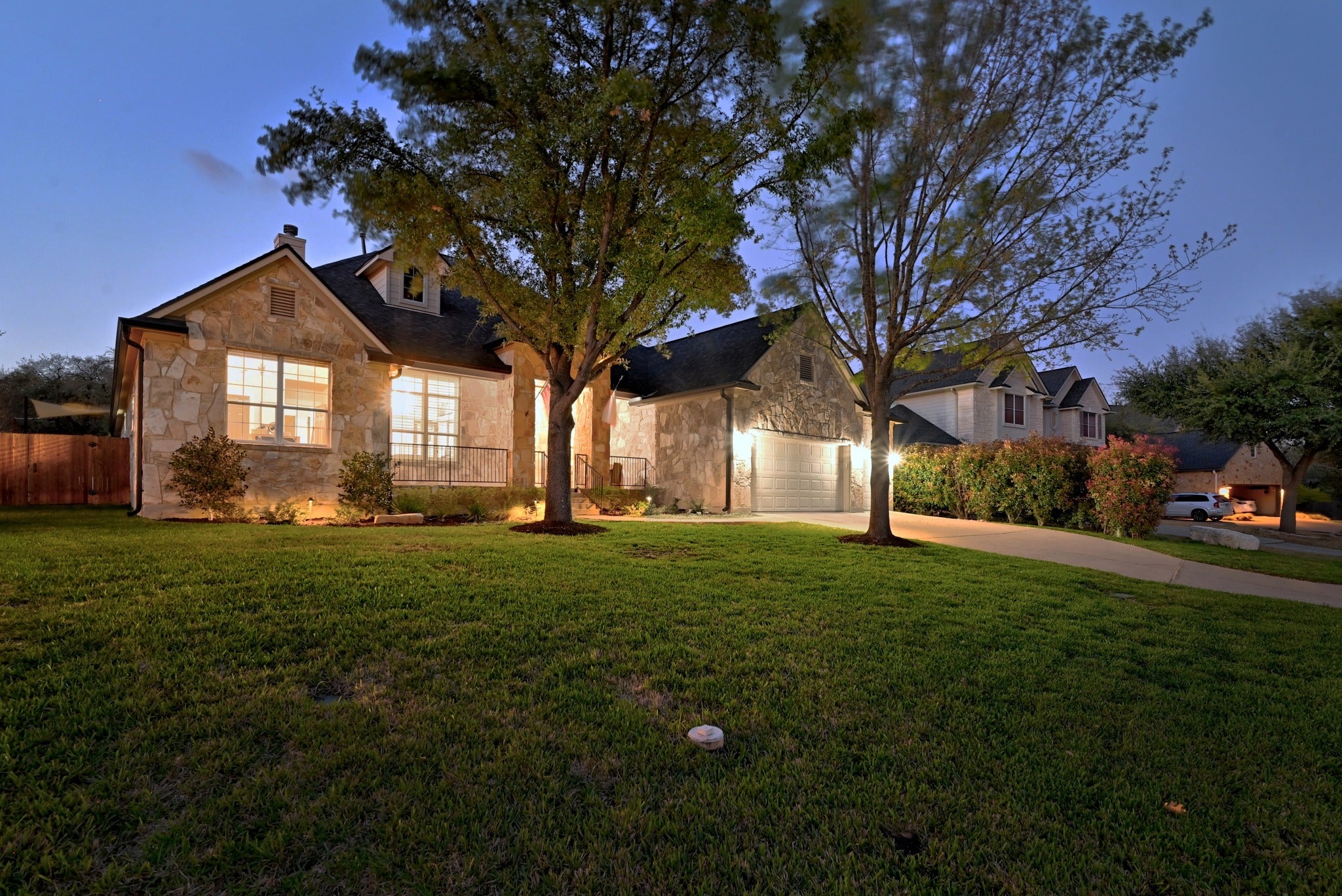 Welcome to 131 Eaton Lane, a stunning 1.5-story haven nestled in the highly sought-after Belterra neighborhood of Austin, Texas. This entertainer’s dream home seamlessly blends luxury, convenience, and outdoor living, all while offering the charm of hill country surroundings. Step inside to discover a layout that lives like a single-story residence, with all primary living spaces on the main floor for effortless daily flow. The home underwent a full interior renovation in 2021, featuring high-end finishes illuminated by over $25,000 in premium lighting fixtures that exude elegance and warmth. Upstairs, a spacious bonus room with a half bath provides the perfect flex space for a home theater, gym, or play area. The true showstopper is the backyard oasis, enhanced by a full exterior renovation in 2023 that includes all new landscaping in the front and back yards. This private retreat is fully equipped with artificial turf for low-maintenance perfection, a sport court featuring a pickleball court and basketball hoop, an outdoor kitchen for al fresco dining, a covered pergola, and a cozy fire pit—designed for unforgettable gatherings under the stars. Belterra’s family-friendly vibe shines with Rooster Springs Elementary School just a short 0.5-mile walk away, making school runs a breeze. Explore over 17 miles of scenic hike-and-bike trails winding through lush greenbelts, parks, and preserved open spaces right at your doorstep. Community amenities like pools, a fitness center, and playgrounds add to the “Life Wide Open” lifestyle. Don’t miss this rare opportunity to own a slice of Austin paradise—schedule your showing today!