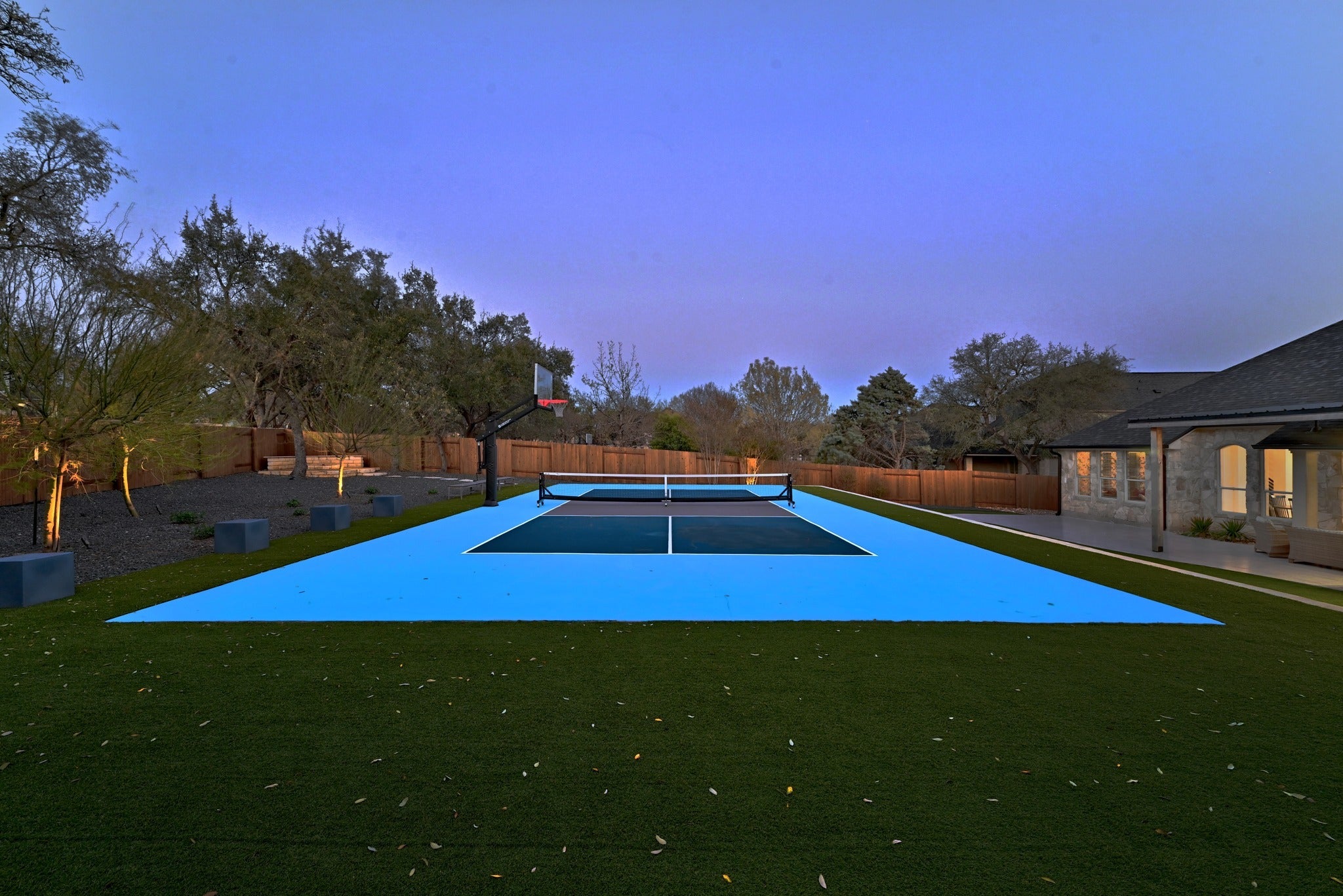 - Gas Grill, Lighting, Private Yard, Rain Gutters, Basketball Court, Outdoor Grill, Sport Court, Tennis Court(s)