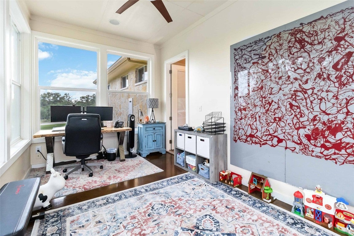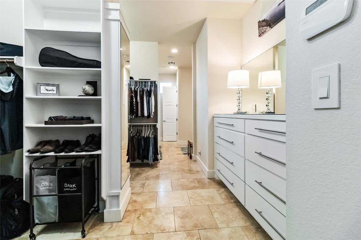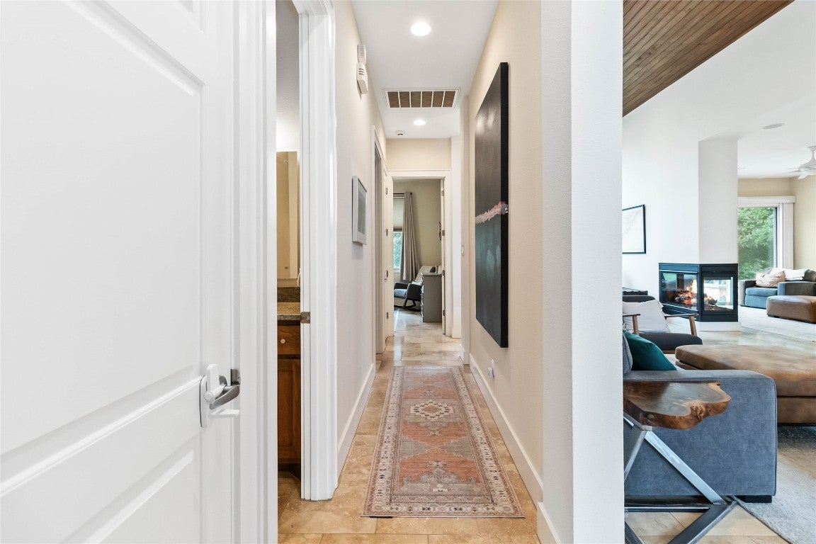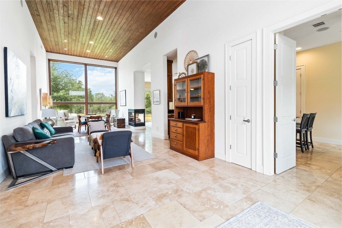 Live in one of Bastrop County’s most sought-after gated communities, The Colony! This beautifully designed 3-bedroom, 2-bath home offers privacy, space, and high-end comfort. Situated on a generous greenbelt lot, you'll enjoy serene views and a peaceful atmosphere. Inside, you'll find an open-concept layout with floor-to-ceiling windows, wood-lined vaulted ceilings, and travertine flooring throughout. The kitchen features solid wood shaker cabinets, granite countertops, built-in appliances, a gas cooktop, and both island and peninsula seating options, perfect for everyday living and entertaining. The primary suite includes a spacious bedroom, dual walk-in closets, and a spa-like bath with soaking tub, double vanity, and a large walk-in shower. Extras include: Oversized 3-car garage with workshop, sink, and storage Covered patio Washer/dryer and Fridge Access to community amenities (walking trails, pool, gym, and more) Smart home features and irrigation system