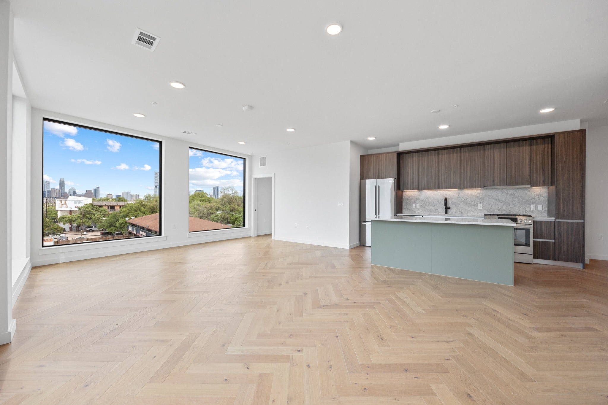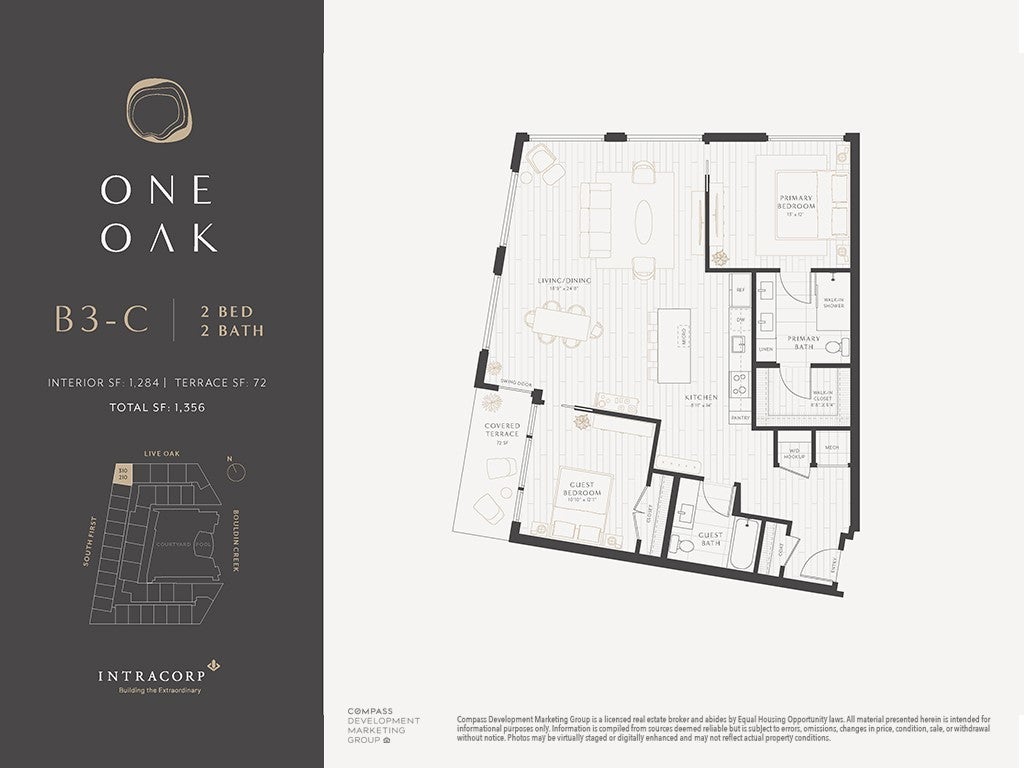 Nestled in the heart of Austin’s highly sought-after Bouldin Creek neighborhood, Residence 310 at One Oak presents a rare chance to own in one of the city’s most desirable luxury condominium communities. Fusing modern architecture with resort-style amenities, One Oak redefines urban living in one of Austin’s most vibrant areas. This beautifully appointed 2-bedroom, 2-bath home features a light-filled open-concept layout with expansive windows and high-end finishes throughout. The chef-inspired kitchen showcases custom Italkraft cabinetry, sleek stainless steel Bosch appliances, and a generous island perfect for meal prep and entertaining. The spacious living and dining areas open onto a covered private terrace that spans both bedrooms, offering striking views of the downtown skyline and seamless indoor-outdoor living. The primary suite serves as a serene retreat, complete with a luxurious full bath featuring a dual vanity, a glass-enclosed shower, and a walk-in closet. The second bedroom offers flexibility for guests, a home office, or additional living space. Styled with One Oak’s elegant Classic finish package, this residence is both move-in ready and timelessly designed. Residents enjoy access to top-tier amenities, including an infinity-edge pool with cabanas, an outdoor kitchen and smoker area, indoor and outdoor fitness spaces, multiple resident lounges, co-working areas, and a thoughtfully curated community experience. Just steps from the iconic South 1st and South Congress districts, Residence 310 at One Oak offers the perfect blend of energy, luxury, and location in the heart of Austin.