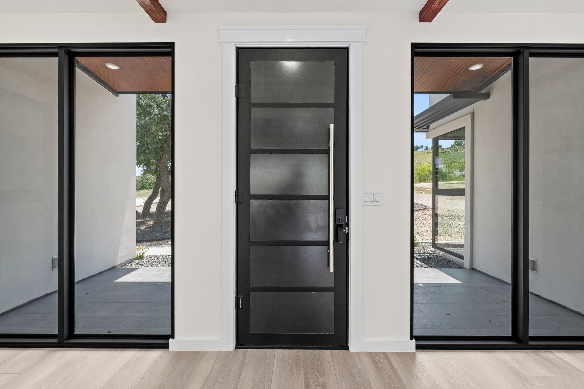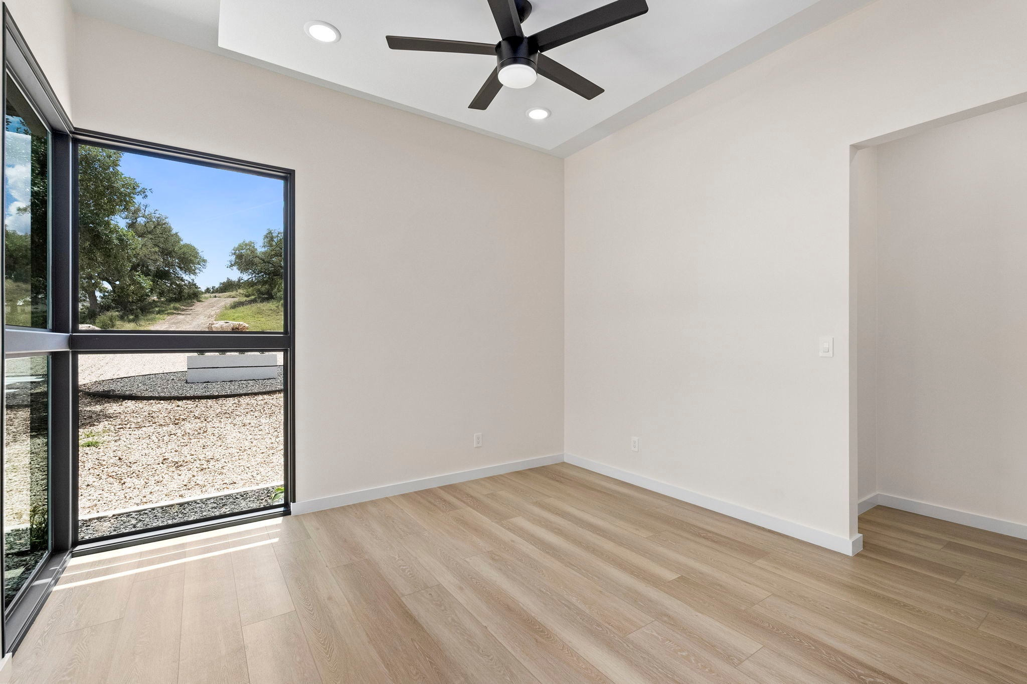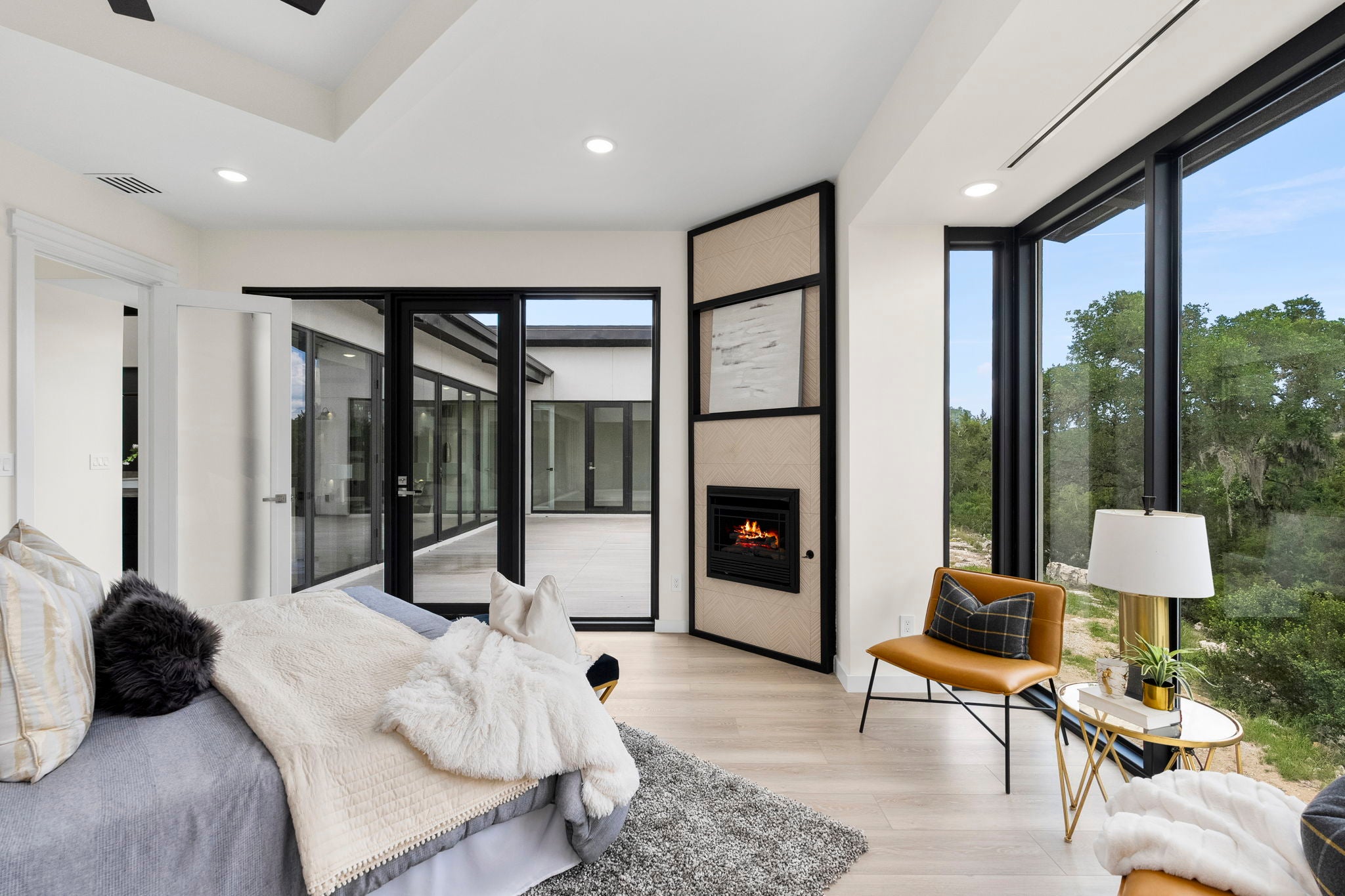 1% LENDER CONCESSIONS USING OUR PREFERRED LENDER** Modern Luxury in Spring Branch! Luxury and sophistication define this custom-built home by Canyon Custom Builders, perfectly positioned on a sprawling one-acre lot in Spring Branch. Thoughtfully designed for modern living, this residence features three bedrooms, four bathrooms, an office (or optional fourth bedroom), and a two-car garage with a striking full-view door. Crafted from steel and concrete, this Hill Country residence combines modern durability with timeless design-offering peace of mind and lasting value in a scenic setting. Step inside to a world of elegance, where an open layout flows effortlessly from one space to another. The gourmet kitchen showcases top-of-the-line premium appliances, Euro-style cabinetry, and stunning Taj Mahal quartzite countertops that extend to a sleek backsplash. A custom bar area adds a touch of refinement, making it perfect for entertaining. Natural light floods the living room through wall-to-wall windows, framing breathtaking views of the backyard. The gas fireplace adds warmth and ambiance, creating a welcoming space for gatherings. The primary suite is a true retreat, complete with its own fireplace, floor-to-ceiling windows, and a spa-like bathroom featuring dual vanities, a spacious shower with dual shower heads, and elegant finishes. Energy-efficient LED lighting, dual tankless water heaters, and smart home integration bring convenience and sustainability together. Outside, a spacious deck surrounded by xeriscape landscaping and mature trees offers a serene space for relaxation. This exceptional property in Spring Branch provides the perfect balance of luxury, privacy, and energy-efficient living.