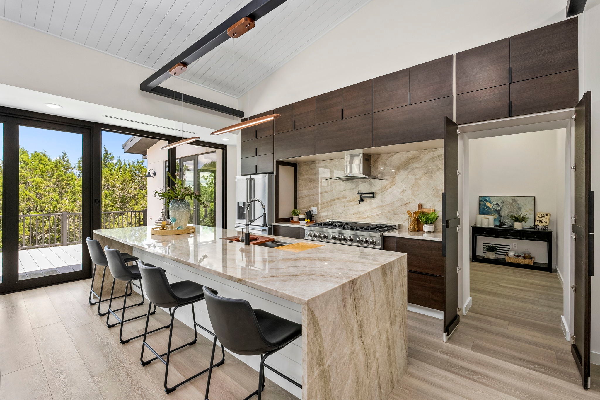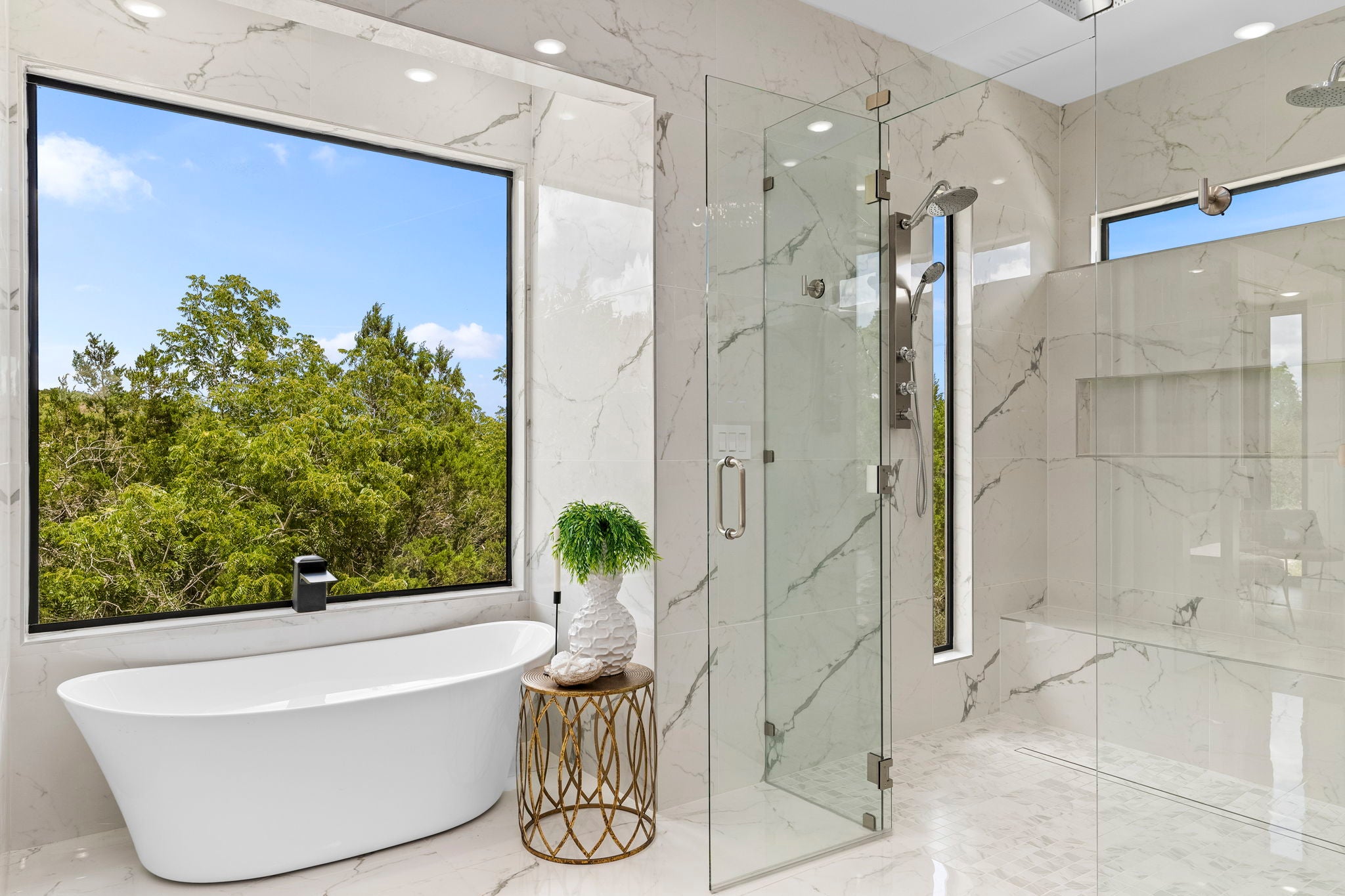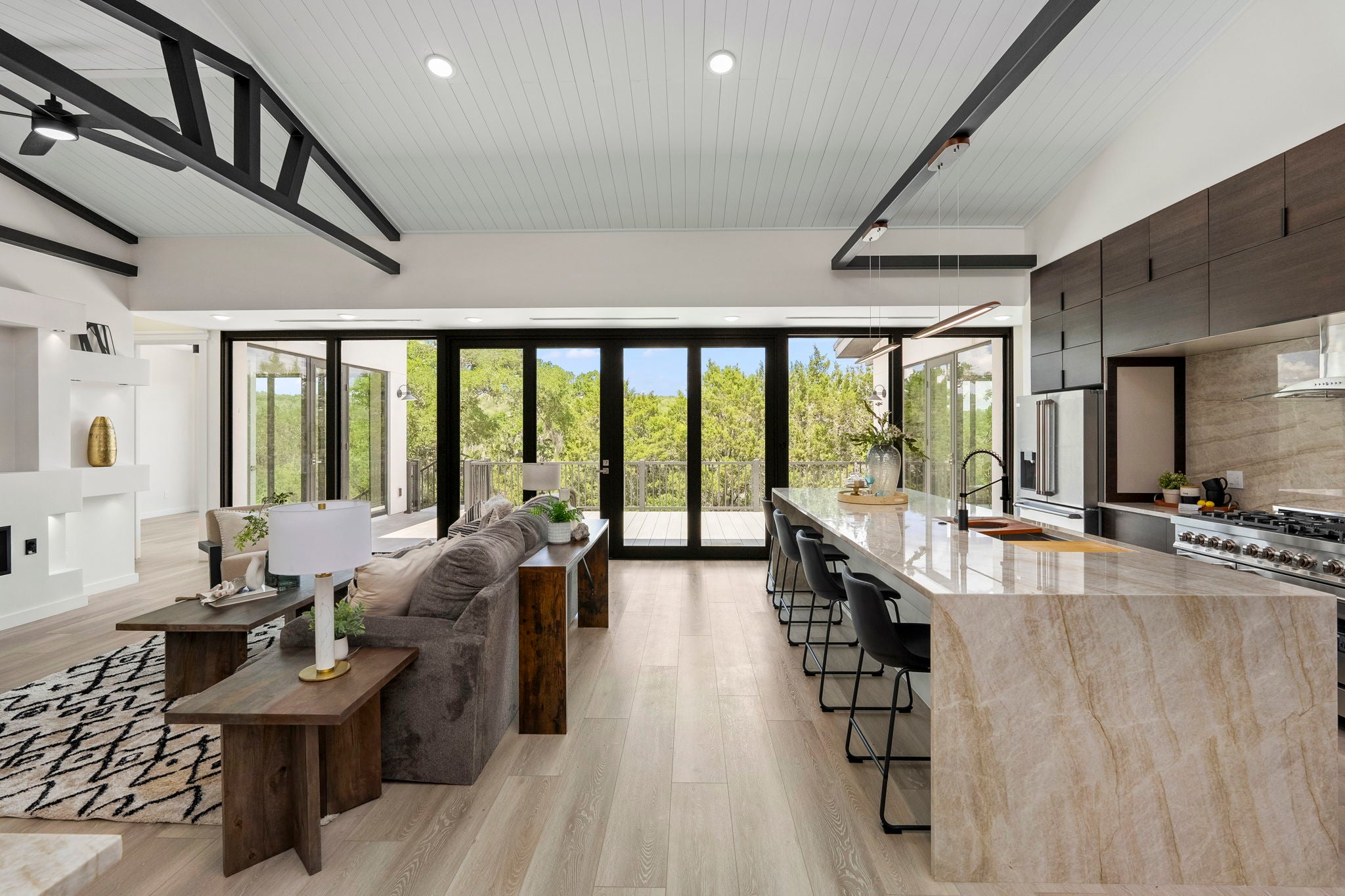 1% LENDER CONCESSIONS USING OUR PREFERRED LENDER** Modern Luxury in Spring Branch! Luxury and sophistication define this custom-built home by Canyon Custom Builders, perfectly positioned on a sprawling one-acre lot in Spring Branch. Thoughtfully designed for modern living, this residence features three bedrooms, four bathrooms, an office (or optional fourth bedroom), and a two-car garage with a striking full-view door. Crafted from steel and concrete, this Hill Country residence combines modern durability with timeless design-offering peace of mind and lasting value in a scenic setting. Step inside to a world of elegance, where an open layout flows effortlessly from one space to another. The gourmet kitchen showcases top-of-the-line premium appliances, Euro-style cabinetry, and stunning Taj Mahal quartzite countertops that extend to a sleek backsplash. A custom bar area adds a touch of refinement, making it perfect for entertaining. Natural light floods the living room through wall-to-wall windows, framing breathtaking views of the backyard. The gas fireplace adds warmth and ambiance, creating a welcoming space for gatherings. The primary suite is a true retreat, complete with its own fireplace, floor-to-ceiling windows, and a spa-like bathroom featuring dual vanities, a spacious shower with dual shower heads, and elegant finishes. Energy-efficient LED lighting, dual tankless water heaters, and smart home integration bring convenience and sustainability together. Outside, a spacious deck surrounded by xeriscape landscaping and mature trees offers a serene space for relaxation. This exceptional property in Spring Branch provides the perfect balance of luxury, privacy, and energy-efficient living.