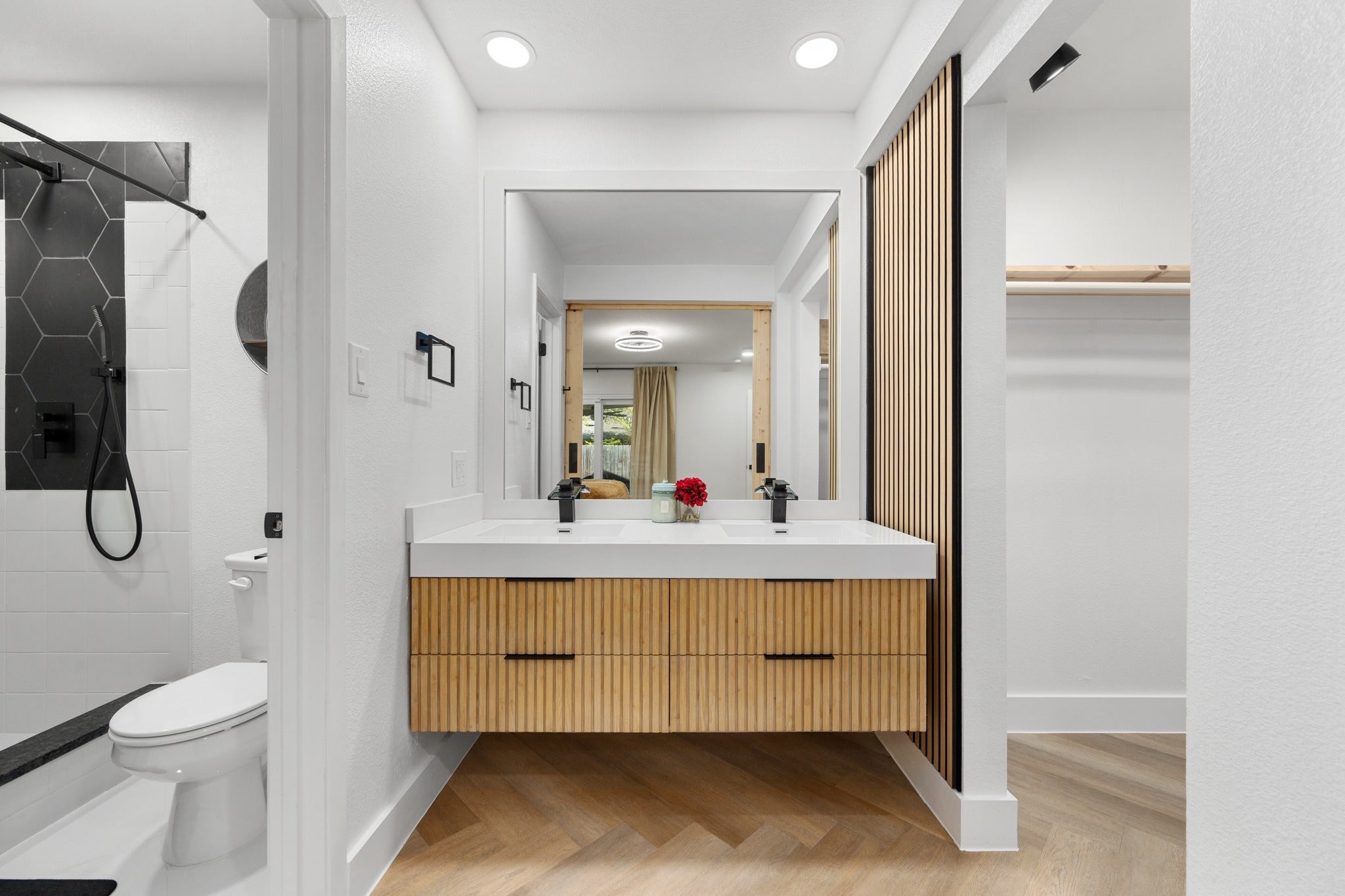 Beautiful move-in-ready single-story home MIL plan– 1,903 sq. ft. all under one roof! Highlights: • 12-ft vaulted ceilings in the living area with a vented fireplace (gas & wood burning) • Fully permitted remodel approved by the City of Austin – updates done professionally • Entertainer’s kitchen with in-home office nook • Abundant parking – room for 5+ vehicles in driveway/garage plus street parking • Healthy, mature shade trees front and back for beauty, privacy, and cooling • Covered front and back patios • Concrete slab ready for a backyard ADU • Premium surround sound system throughout the house • Smart home lighting package • Fully automated 9-zone Hunter sprinkler system including flower beds • Bryant HVAC system and recent weather head and electrical panel completed in 2025. • New roof in 2024 • EV car charger in garage • Professional lifetime epoxy flooring in garage • Brick exterior on all sides with some siding Location perks: Quiet, centrally located neighborhood close to restaurants, shopping, downtown Austin, The Domain, and less than 5 minutes to Q2 Stadium. Easy access to public transportation, including rail. Perfect combination of style, upgrades, and functionality – move in and enjoy!