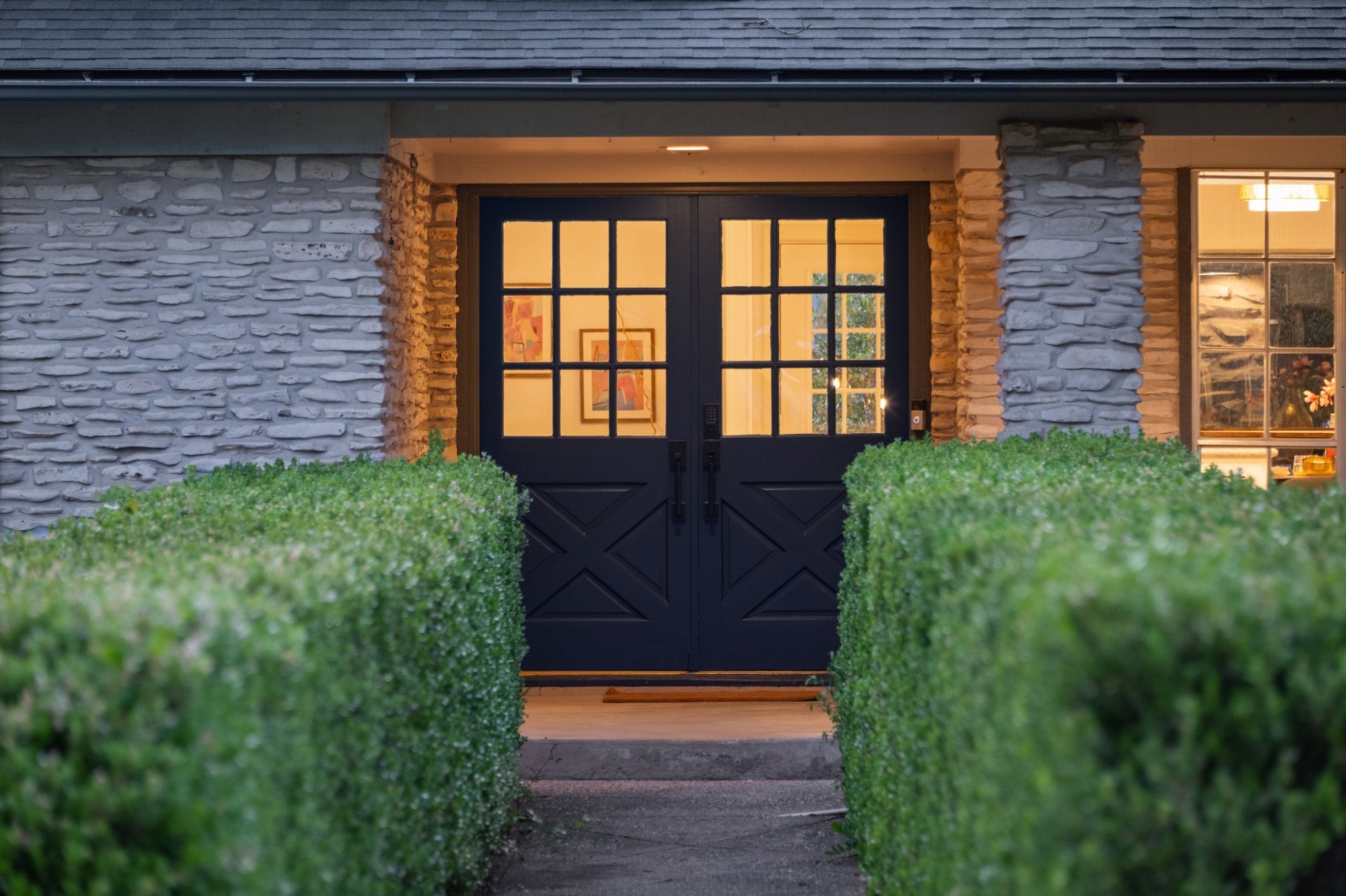 - Stone, Wood Siding