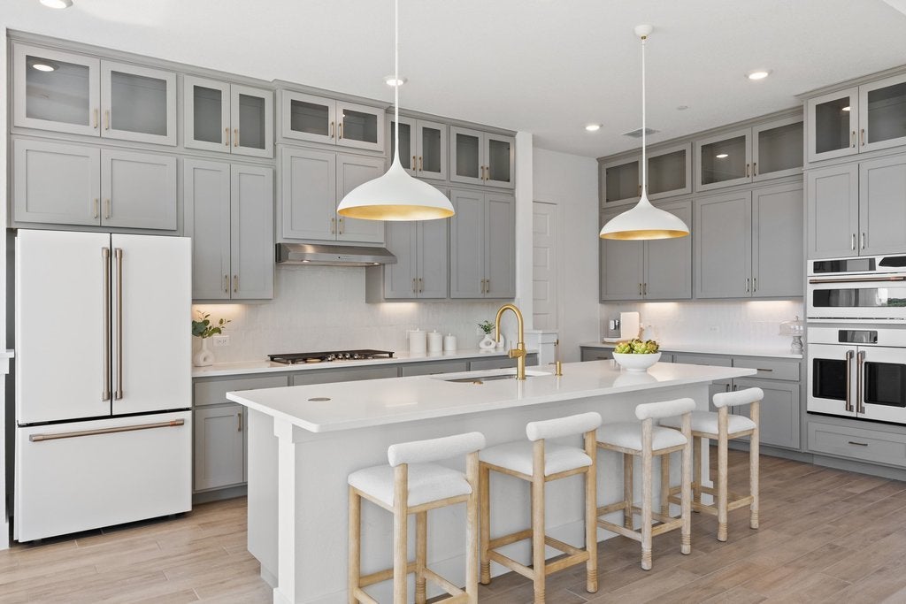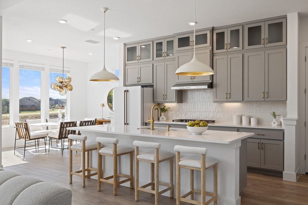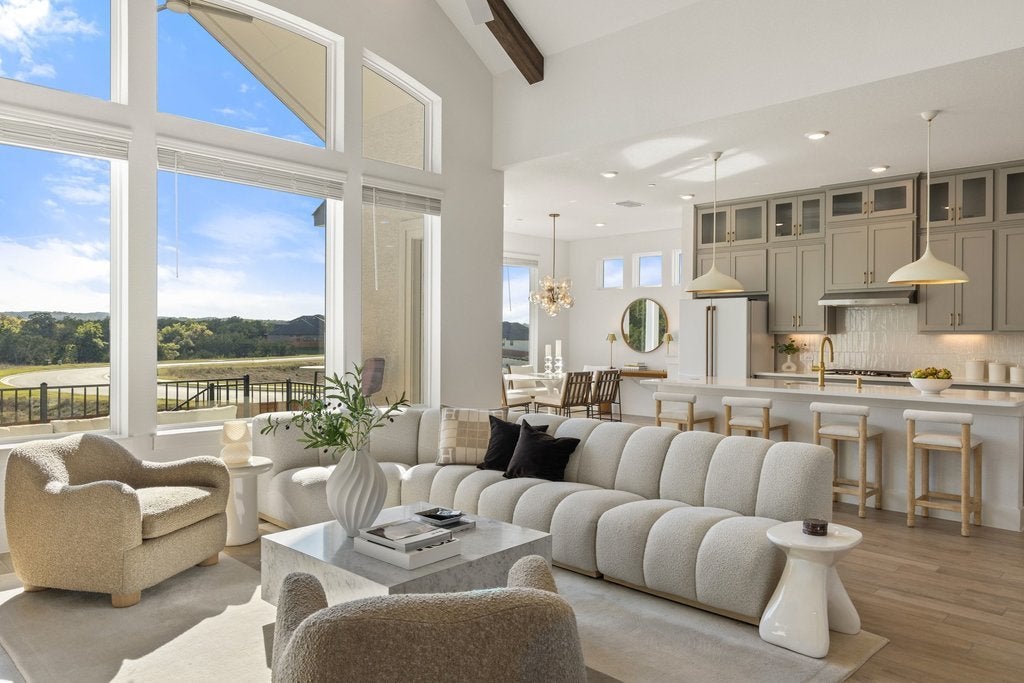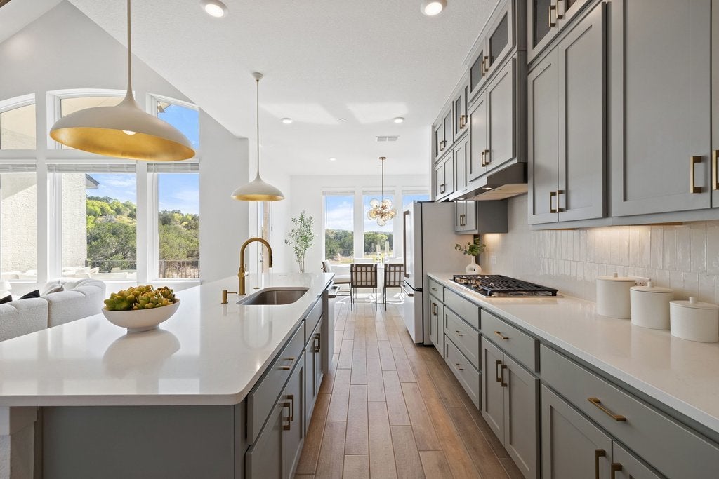 Nestled on a tranquil, low-traffic cul-de-sac in the amenity-rich Sweetwater community, this nearly new Chesmar home is a true sanctuary with breathtaking views from almost every window and walking distance to the pool. With no neighbors behind, in front, or to one side, this property offers both privacy and serenity. Spanning nearly 2,900 square feet, the thoughtfully designed layout includes 4 bedrooms, 3 full bathrooms, a spacious bonus room, a convenient office nook and a coveted 3-car garage. From the moment you step inside, the abundance of natural light and stunning views through the rear windows will draw you in. The chef’s kitchen is nothing short of spectacular, featuring a recently updated matte white CAFÉ Professional Series appliance package, including a convection French-door oven, microwave, dishwasher and a French-door refrigerator. With cabinetry that extends to the ceiling, an oversized walk-in pantry, generous counter space and a large center island perfect for hosting gatherings, this kitchen is as functional as it is beautiful. The private primary suite, tucked at the rear of the home, boasts serene views and a spa-like bathroom complete with dual vanities, a freestanding tub, a frameless glass shower and a spacious walk-in closet. A guest suite conveniently located on the main level provides comfort for visitors. Upstairs, hardwood floors flow throughout the oversized flex room, offering endless possibilities for use. A built-in tech desk makes for an ideal home office or study nook, while two secondary bedrooms share a well appointed bathroom. The corner location creates both a spacious back and side yard. This home is brimming with thoughtful upgrades, including designer lighting and paint, updated faucets, fixtures and door hardware. The Sweetwater community features two resort style pools, a neighborhood only gym, pickleball, basketball and sand volleyball courts, a putting green, dog park and miles of hiking and biking trails.
