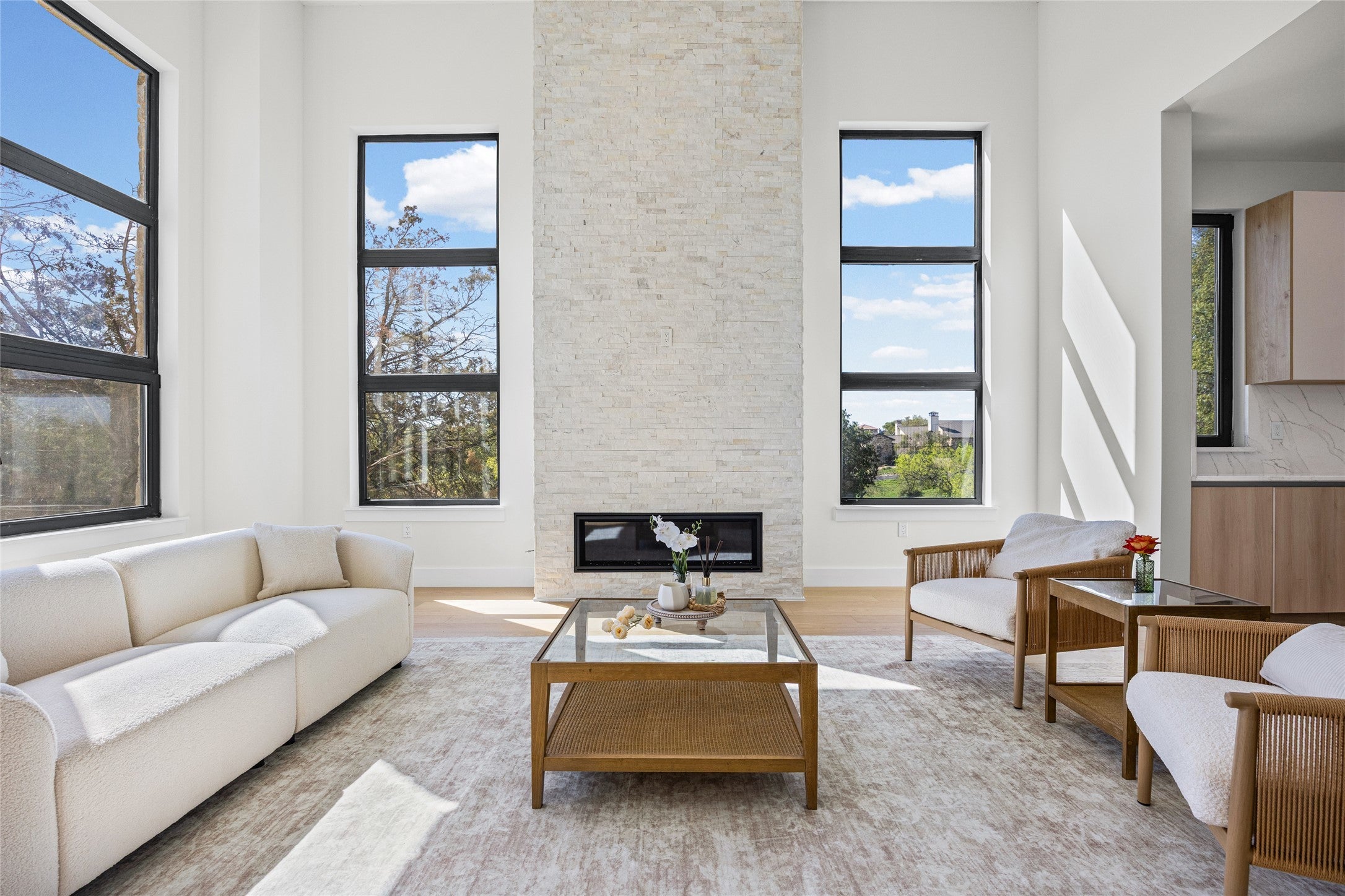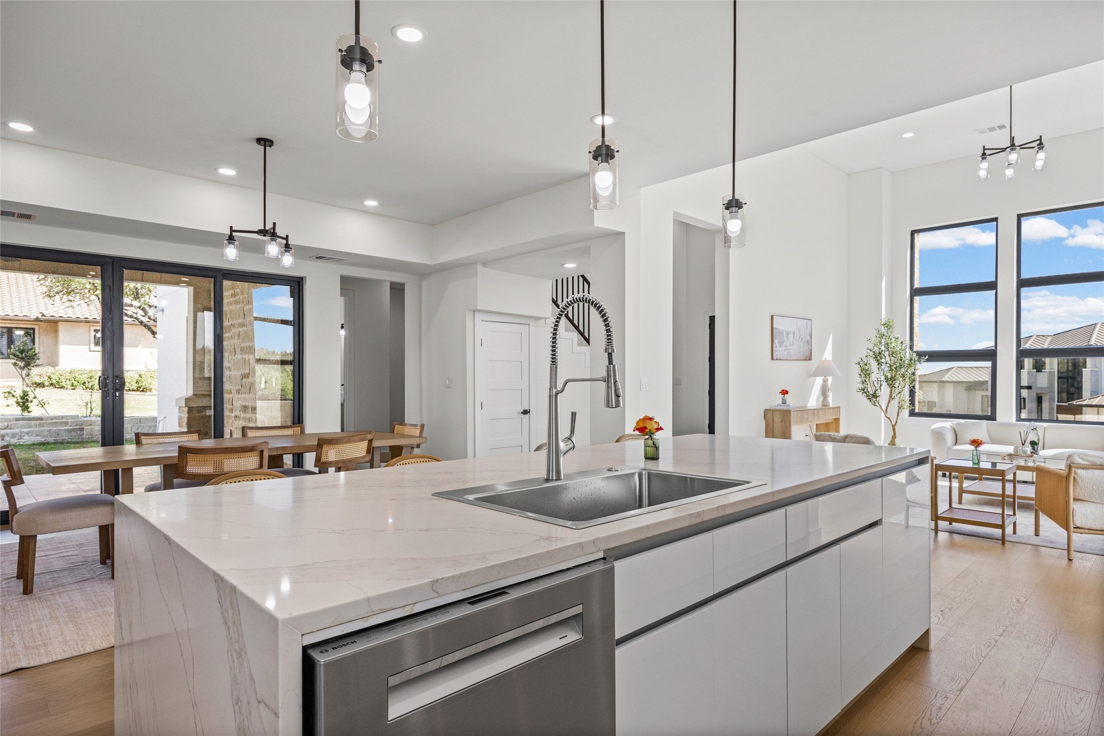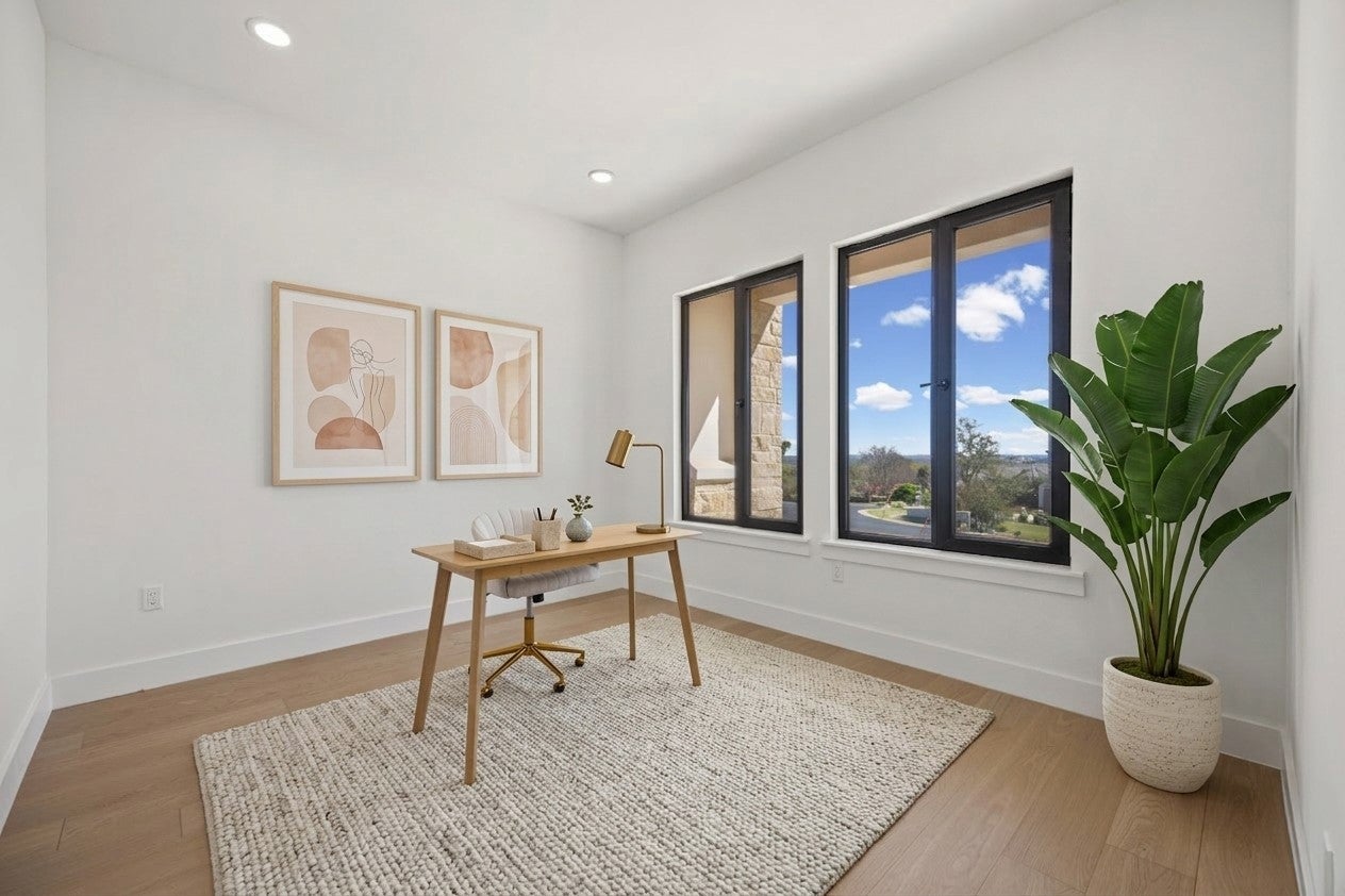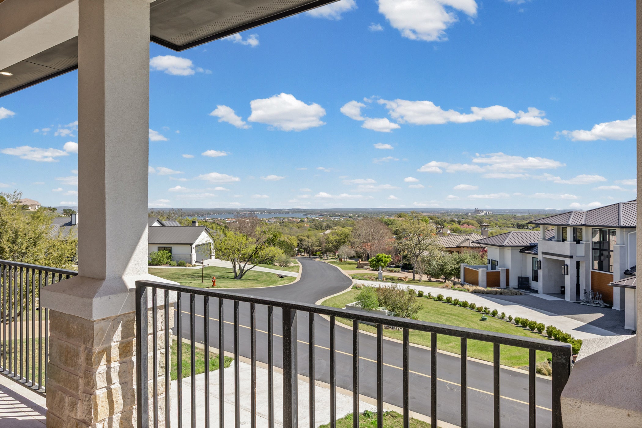 Experience refined living in this stunning newly constructed residence offering more than 3,400 square feet of meticulously crafted space. Perfectly positioned in a desirable location, the home captures beautiful lake views from the front and includes a spacious three-car tandem garage. Inside, expansive windows fill the home with natural light, showcasing elegant hardwood floors that flow throughout the main living areas. The open-concept design creates an inviting atmosphere centered around a warm, sophisticated fireplace. The gourmet kitchen is designed for both style and functionality, featuring premium Bosch appliances, sleek custom cabinetry, and an oversized walk-in pantry with built-in shelving. The main-level primary suite offers a peaceful private retreat, complete with direct access to an extended covered patio ideal for relaxing or entertaining. The spa-inspired ensuite bath features a freestanding soaking tub, a large walk-in shower, and a thoughtfully designed custom walk-in closet. Upstairs, three generously sized guest suites each offer their own private ensuite bathrooms and custom closets, ensuring comfort and privacy for family or visitors. A versatile second living area opens to a balcony where sweeping lake views create the perfect setting to unwind. Additional highlights include a dedicated home office, an elegant powder bath for guests, and high-end finishes throughout the home. With its scenic lake views, exceptional craftsmanship, and luxurious amenities, this remarkable property delivers an elevated living experience. Schedule your private showing today to experience this extraordinary home firsthand.