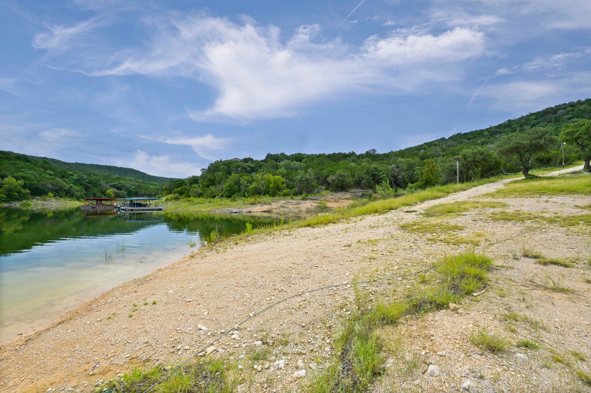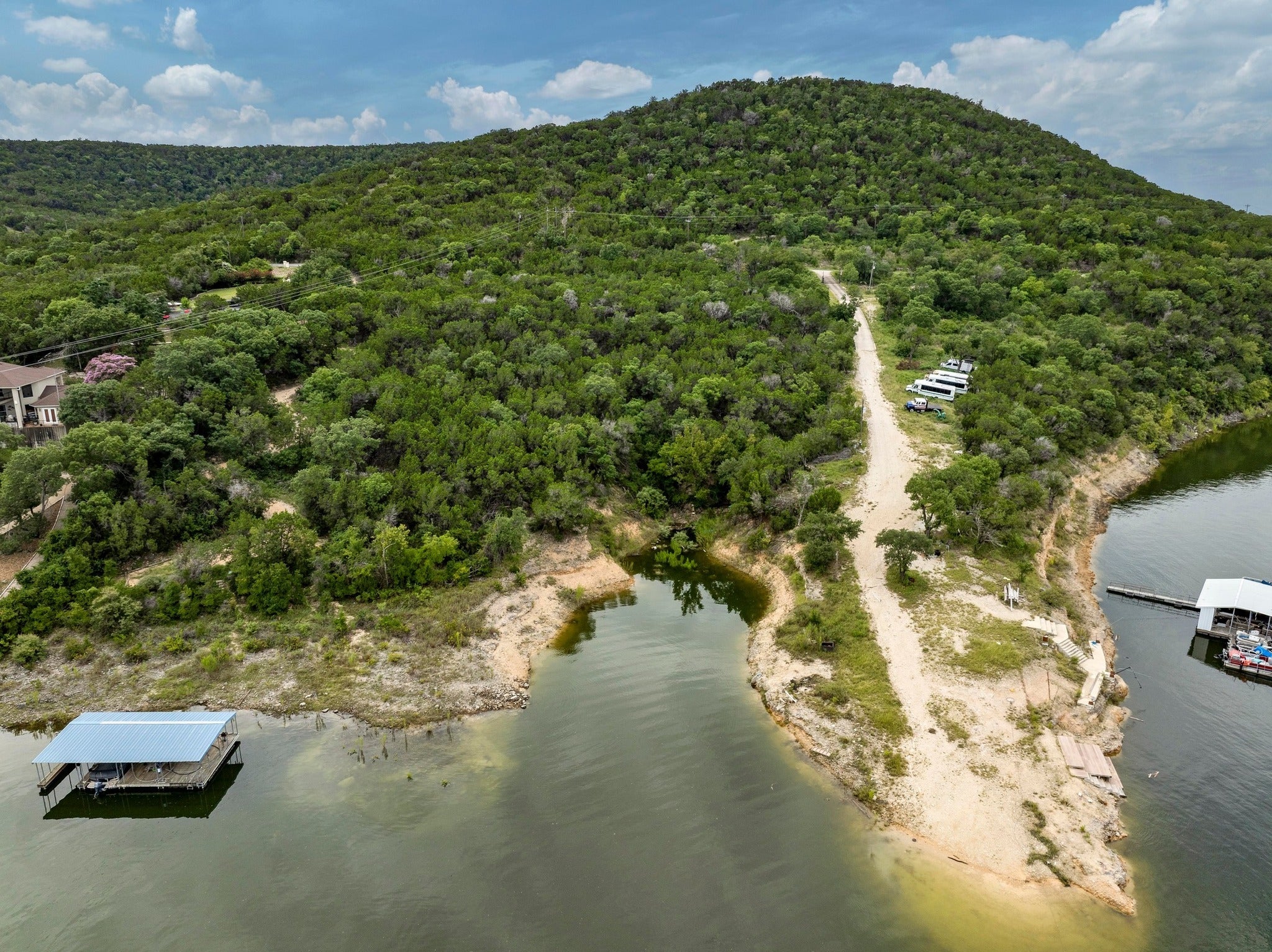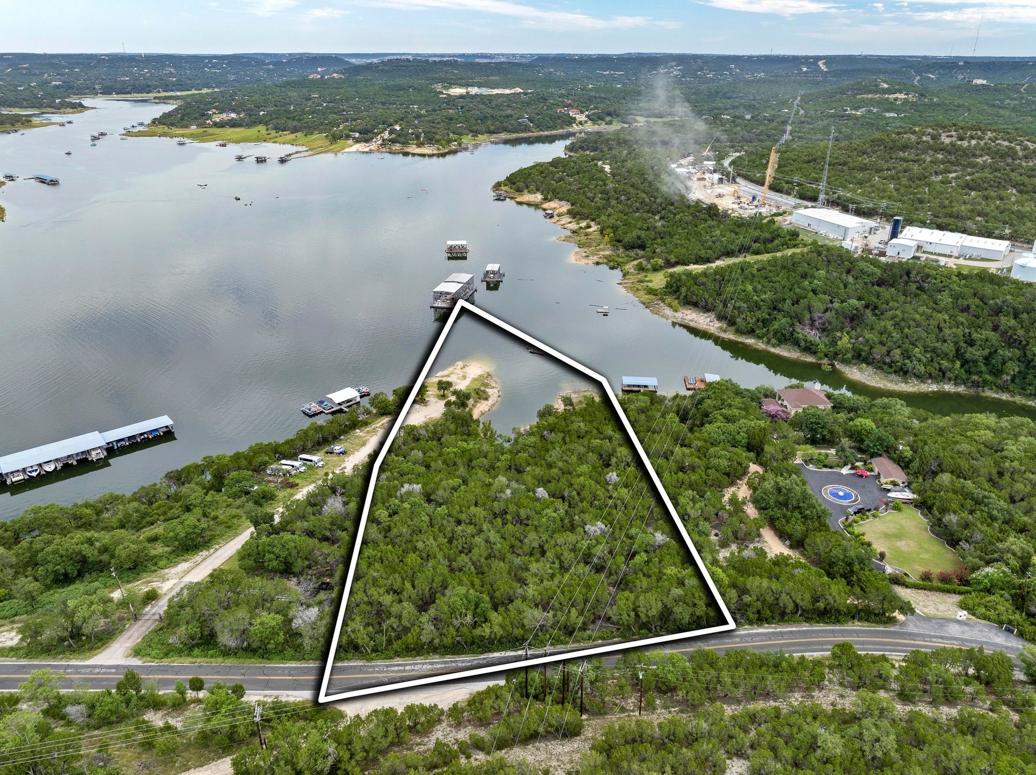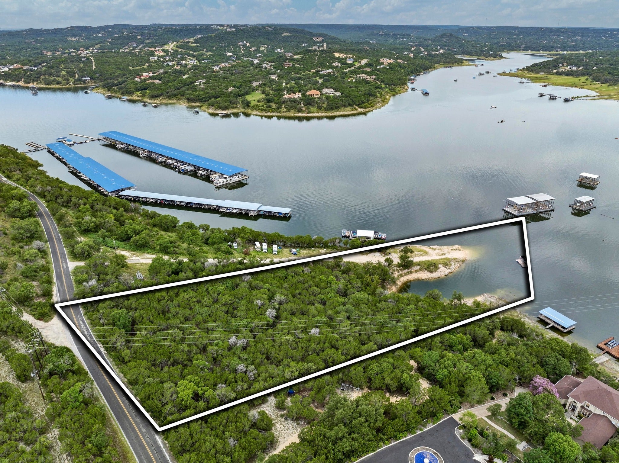 Located a close 25 miles from downtown Austin, 9006 Lime Creek Road offers a rare 5.5-acre waterfront opportunity on the tranquil shores of Lake Travis in Volente. This property still had water at its shores during the most recent drought cycle. But now, with newly elevated water levels, this expansive property presents an even more perfect canvas to design and build a custom lakefront home and private boat dock. Feeding to award winning Vandergrift High, and offering close proximity to Sandy Creek Yacht Club, Twin Creeks Country Club, and a short drive to grocery and retail. Mature trees dot the landscape, providing natural shade and a picturesque setting to create a peaceful retreat or recreational getaway overlooking views of the expansive lake front. Tucked into one of Lake Travis’ serene coves, the property blends privacy, potential, and natural beauty for those looking to craft something truly special on the water.